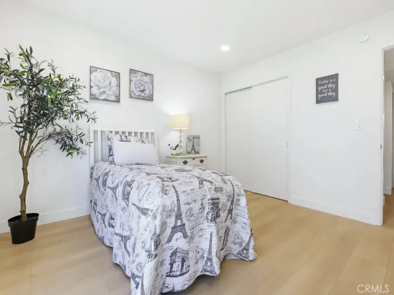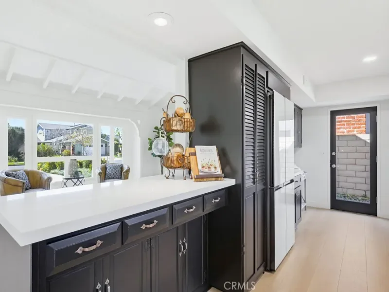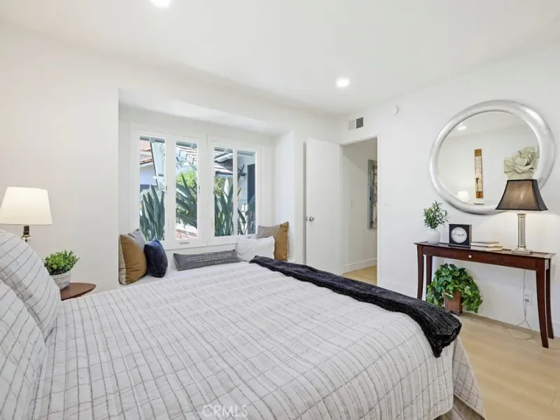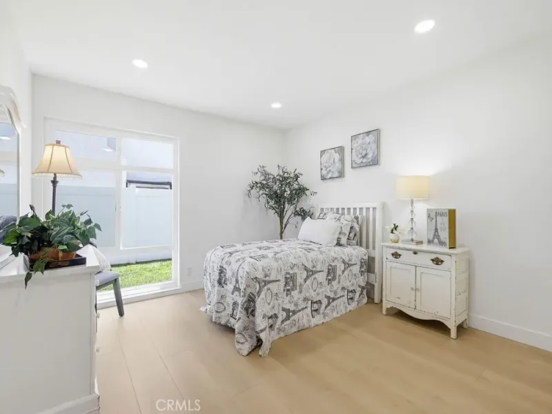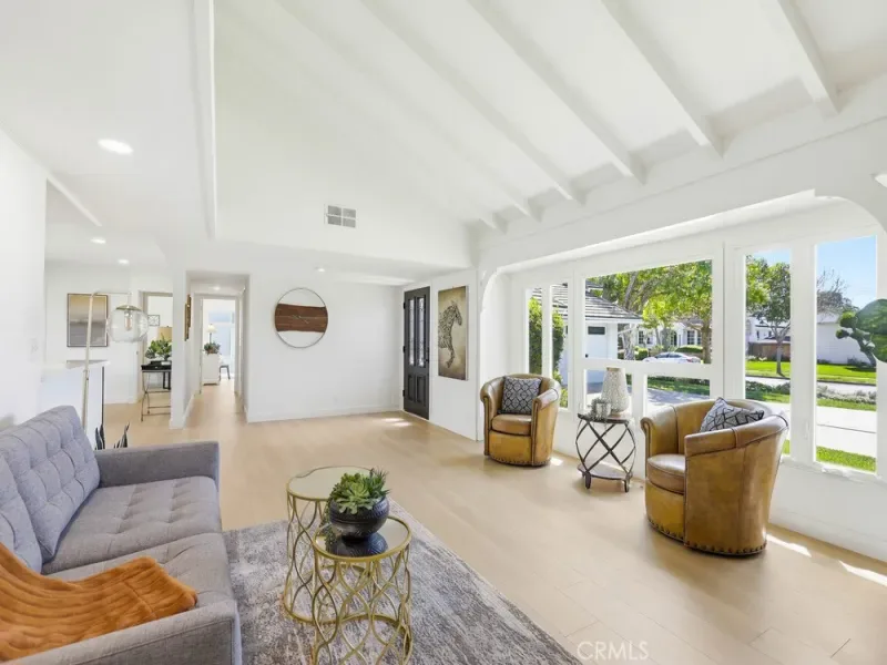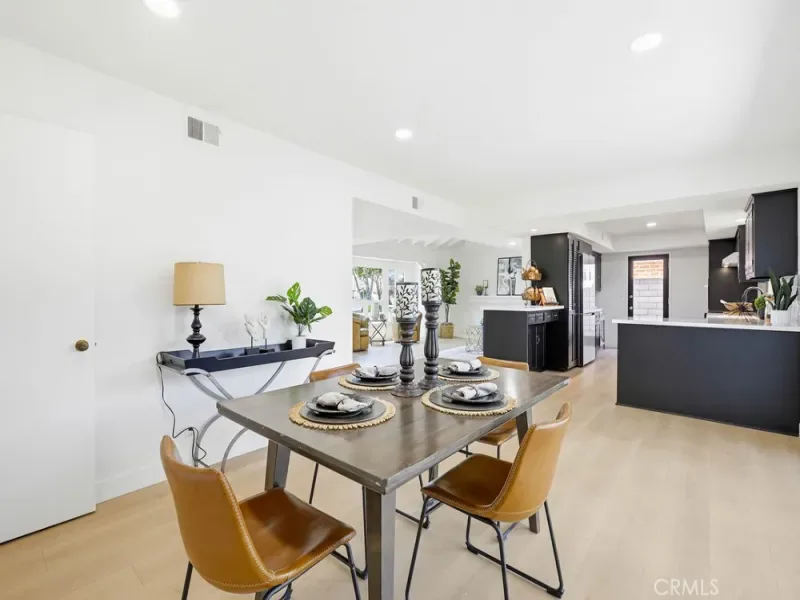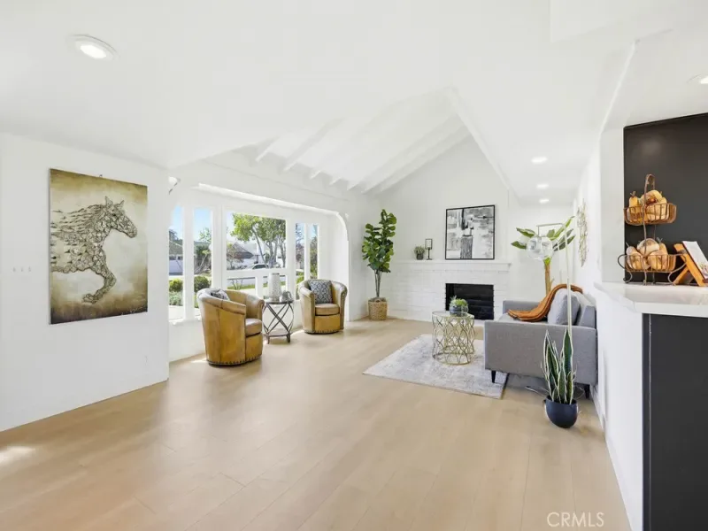Your search is over. Welcome to the highly sought-after Rossmoor Tract of Homes in Los Alamitos. Drive through the tree-lined streets and arrive at your Dream home on Saint Albans Drive. This Plymouth model has been upgraded with an intention to detail and on-trend appointments. A spacious and curved driveway, along with a new concrete tile roof and dual-paneled Milgard windows, starts your tour. Enter into a light and bright living room with luxury vinyl flooring, smooth ceilings, recessed lighting, and a cozy wood-burning fireplace. The kitchen is sleek with black cabinetry, white quartz countertops, featuring Italian Calacatta marble/tile backsplash for a pop of elegance. Designer white glass appliances, electric stove with oven, electric wall oven, refrigerator, and dishwasher, perfect for family gatherings and entertaining. Adjacent to the kitchen, the optional 4th bedroom serves as a dining room with views of the backyard, brick patio, and tree-shaded landscaping. The primary bedroom, with its charming built-in window seat, has an ensuite 3/4 bath upgraded with new luxury vinyl flooring, vanity, and glass/black fixtures. Two spacious secondary bedrooms and a fully upgraded hallway bathroom with a tub and shower combination complete this family home. Tastefully landscaped with mature plants and an automatic watering system for ease of maintenance. Top school district and local dining make this the location for young families to make a lifetime of memories.