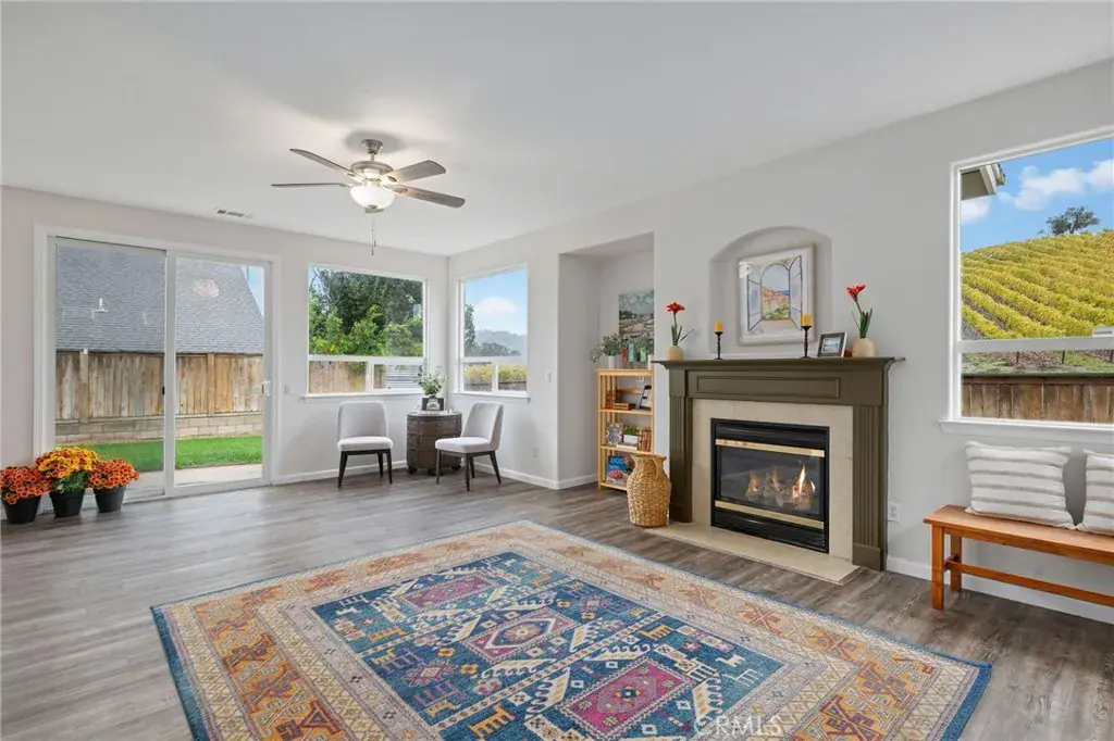 Enjoy stunning views from this beautifully updated 4BD/3BA Los Alamos home, offering the perfect blend of space, comfort, and wine country living. Fresh interior and exterior paint and new carpet in all bedrooms create a clean, move-in-ready feel. The gourmet kitchen features granite countertops, generous cabinetry, and an open layout flowing into a bright great room with cathedral ceilings, a cozy fireplace, and vineyard views. The flexible floor plan includes a convenient downstairs bedroom and bath, ideal for guests or multi-generational living. The private upstairs primary suite offers a sitting or office area, fireplace, walk-in closet, and a luxurious en-suite bath with a soaking tub and walk-in shower.