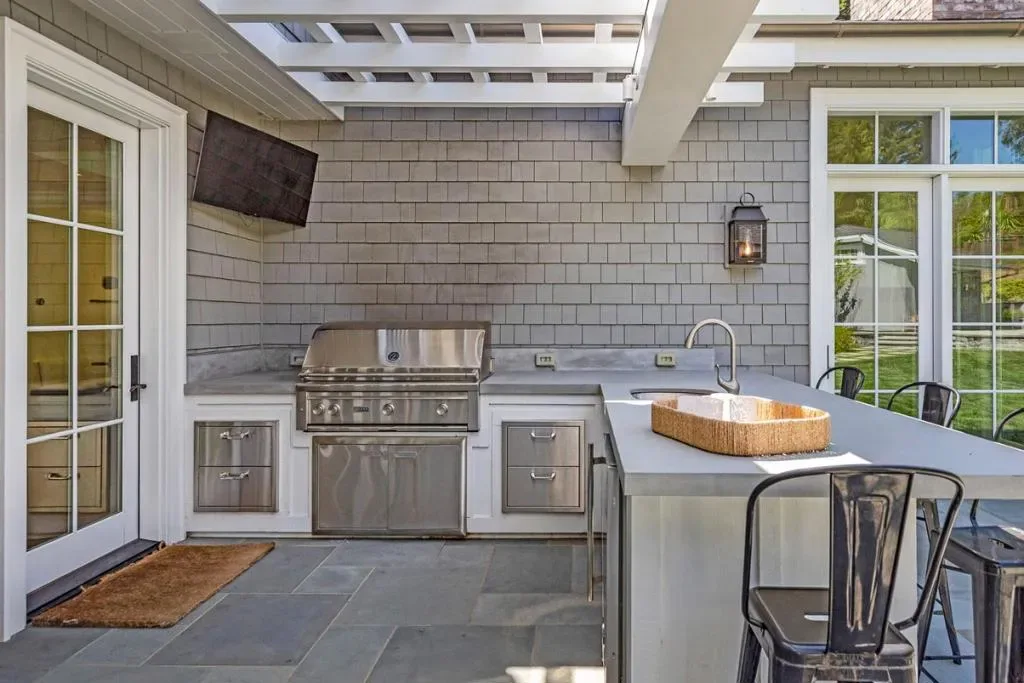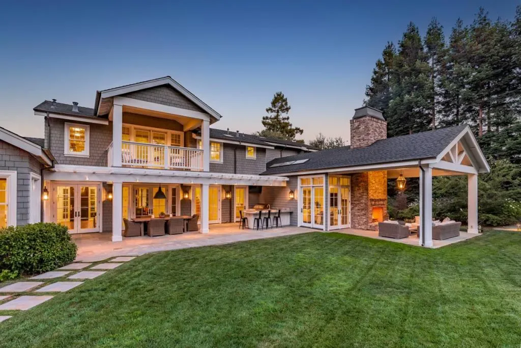 Hamptons-style elegance defines this refined estate custom built just 9 years ago in a premier location one-half mile from the Village. Distinguished interiors showcase hardwood floors, crisp white millwork, and elegant finishes of stone, tile, and brick. Built by MJK Homes, Architecture by Duxbury Architects, Interiors by Kriste Michelini Interiors. The home features sophisticated formal rooms, a library with office, and a stunning kitchen and open family room. There are 5 bedrooms, 5 full baths, and 2 half-baths, including a main-level suite ideal for guests and a luxurious upstairs primary suite. French doors open to a Connecticut bluestone terrace with outdoor kitchen, dining and fireplace patios, and a resort-like yard with vast lawn, pool, and spa. A pool house with kitchenette and full bath offers flexible use or potential as an ADU. With modern comforts and integrated technology, this East Coast inspired retreat offers the ultimate in quiet sophistication on approximately 1 acre and with access to excellent Los Altos schools.