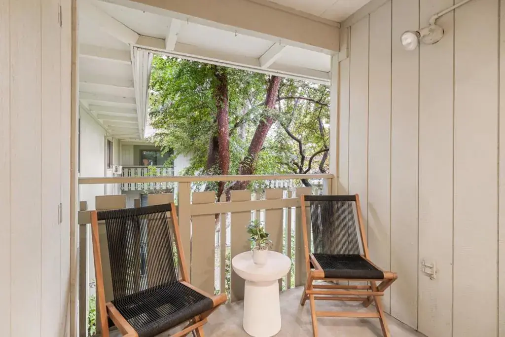 Nestled in the beautifully maintained Mercedes Court community, and on a cul de sac, this light-filled 2-bed, 2-bath condo (Unit 24) offers fresh interior paint, a newly updated primary bath, & an effortless indoor-outdoor lifestyle. The open living & dining space is anchored by a cozy fireplace & flows out to a private balcony ideal for morning coffee or evening wind-downs. The updated kitchen features Quartz countertops & connects seamlessly to a dining area. The spacious primary suite includes its own private balcony, walk-in closet, & an updated ensuite. A generous second bedroom & an updated hall bath complete the thoughtfully layout. Additional highlights include an in-unit laundry closet, storage, & access to the sparkling community pool. Enjoy a prime location just minutes to downtown Los Altos, where boutique shopping, charming cafess, & local favorites like ASA & Red Berry Coffee create a vibrant dining scene. Nearby outdoor destinations including Alta Mesa Memorial Park, Terman Park, & Pearson-Arastradero Preserve offer peaceful escapes close to home. Convenient to San Antonio Center, top-rated Los Altos schools, & HW 82 for easy Peninsula commuting. Plus, a nearby trailhead on Mercedes provides access to paths perfect for a daily dose of nature.