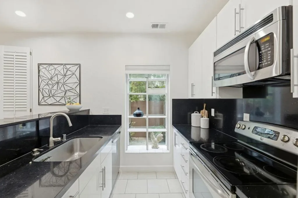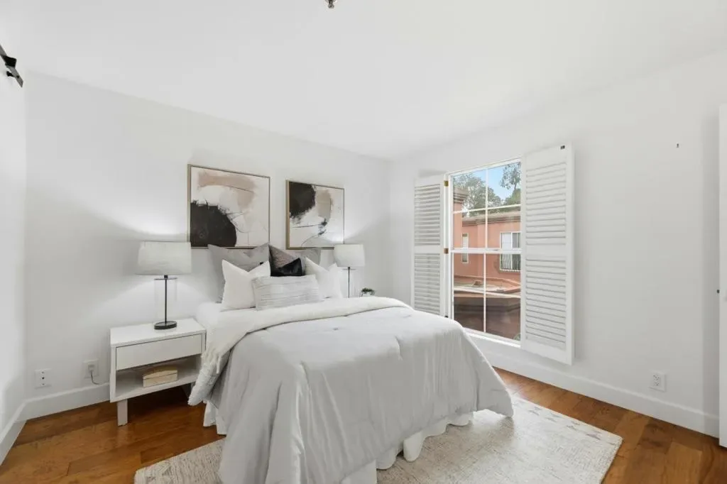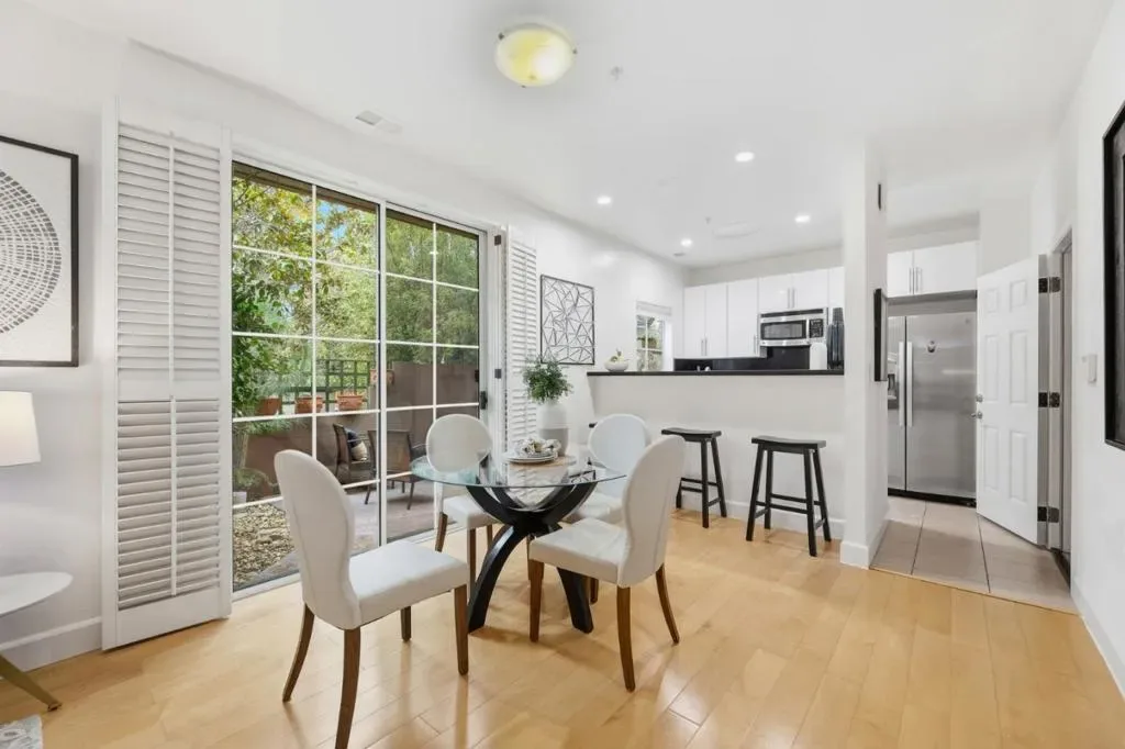 Experience refined Mediterranean-style living just steps from vibrant downtown Los Altos. This elegant end-unit offers a rare blend of privacy, abundant natural light, an attached garage with a private driveway, a gourmet chef’s kitchen with a new refrigerator and dishwasher. The sun-filled living room, highlighted by soaring ceilings, opens through sliding glass doors to a secluded private patio ideal for seamless indoor-outdoor entertaining. Upstairs, a spacious landing provides flexible space perfect for a home office. Two generously sized en-suite bedrooms offer exceptional comfort, including a serene primary suite with sliding glass doors that open to a large private balcony, an inviting retreat for morning coffee or evening relaxation. Within walking distance to dining, cafés, groceries, and boutique shopping in charming downtown Los Altos, and close proximity to Stanford University, the Stanford Shopping Center, and downtown Palo Alto, making this home a truly rare find.