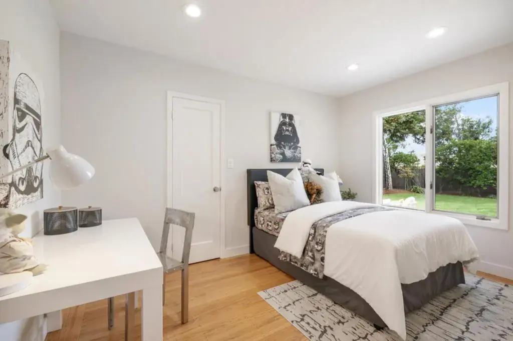 This beautifully updated 3-bedroom, 2-bathroom home in a prime North Los Altos location is move-in ready! The bright, open floor plan showcases clean, contemporary finishes including fresh paint, trim, and gorgeous hardwood floors throughout. The kitchen has been renovated with an open layout and a generous center island, creating an ideal modern gathering space. Both bathrooms are newly updated, and recessed lighting adds a polished touch. The luxurious master suite is a true retreat, offering abundant space, a large walk-in closet, and a spacious bathroom all with peaceful backyard views. Comfort is ensured with central heating and air-conditioning, and the finished garage features a new door, drywall, and an epoxy floor. Enjoy unbeatable convenience with easy access to top schools and the vibrant downtown Los Altos. Schools: Almond Elementary, Egan, Los Altos High — and close to Bullis Charter campus!