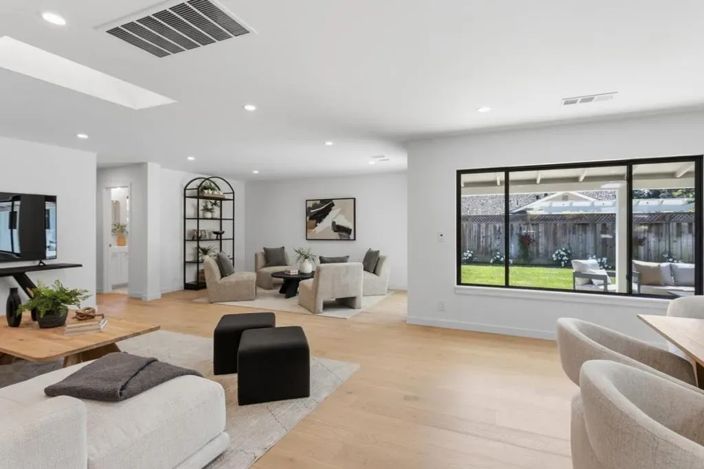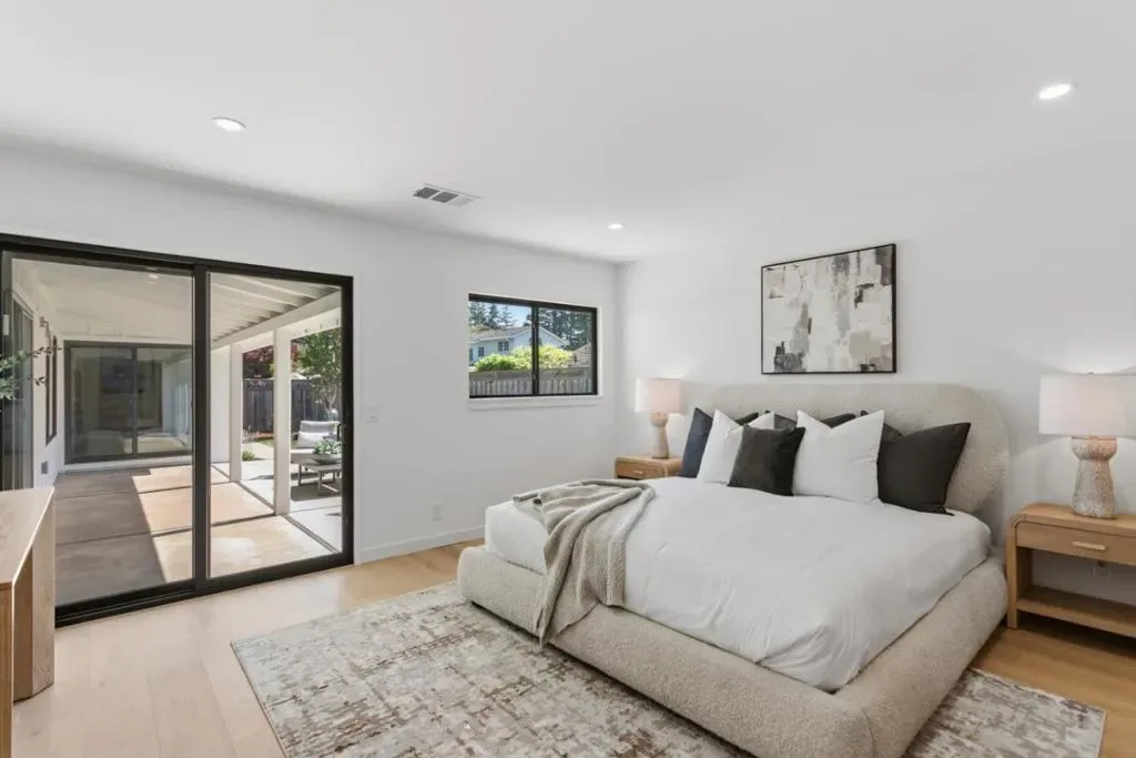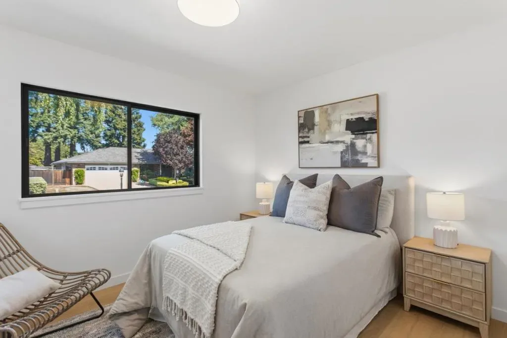 Nestled in the highly coveted North Los Altos Dos Palos neighborhood, this masterfully reimagined home represents a rare level of sophistication & modern utility. Moving far beyond a standard renovation, the property underwent an exhaustive, top-to-bottom overhaul, featuring a complete reframing of the common areas to create a breathtaking open-concept great room. The interior is defined by wide-plank European white oak flooring, smooth wall texturing, & a chefs kitchen anchored by a central island & premium Taj Mahal quartzite countertops with full-height backsplashes. Professional-grade appliances include a 48 dual-oven gas range, built-in refrigeration, & wine cooler. The reconfiguration added a third full bathroom & a separate laundry/mudroom, with all baths featuring marble counters & bidet toilets. Behind the walls, the infrastructure is essentially new, boasting 100% new water & waste lines, a new 200-amp main panel, a 50-amp EV charger, & a comprehensive HVAC system with all-new ducting. The exterior showcases Hardie board & batten siding, Marvin windows, & a finished garage with an over-sized glass door. Enjoy unobstructed views thanks to underground utilities & a fully landscaped backyard featuring a new irrigation system & dedicated gas line for your future firepit
