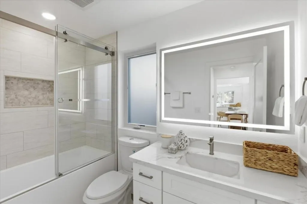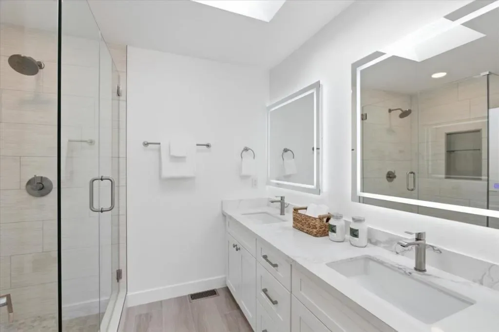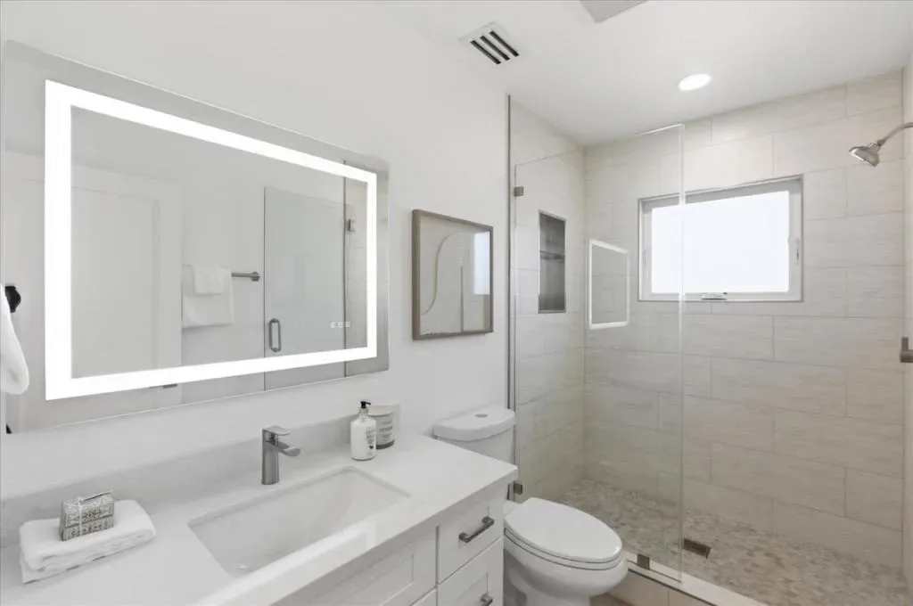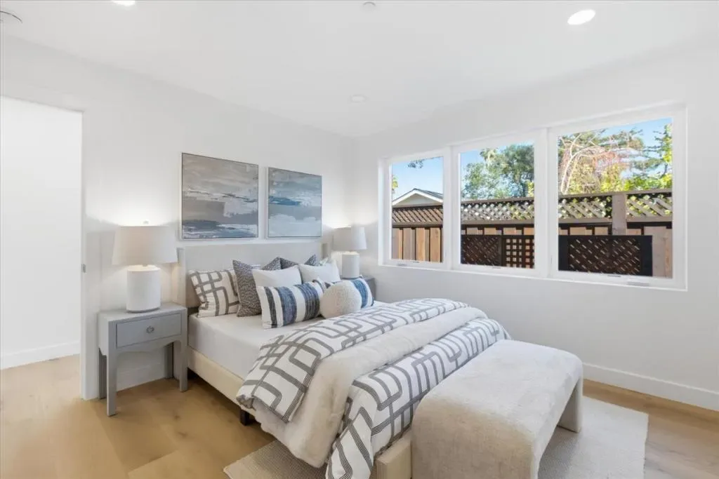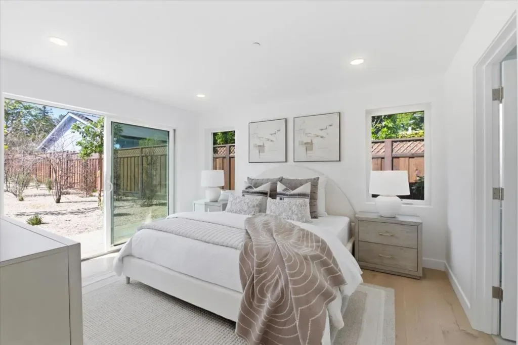 Keeping it clean and simple in this remodeled 4 bedroom, 3 bath single story home, offering endless possibilities plus a separate brand new 2 bedroom, 2 bath ADU, all nestled on a generous 14,552 sq. ft. lot near downtown Los Altos. The inviting open concept floor plan flows seamlessly to an oversized, private backyard featuring multiple patios & a dedicated play area, ideal for entertaining or everyday enjoyment. A separate family room boasts a vaulted beam ceiling & natural lighting throughout. Guest accommodations are generously sized and include a junior en-suite. The primary bedroom suite offers a walk-in closet, a spa-like bath with dual vanities, & sliding glass doors that open directly to the expansive backyard. The spacious & new ADU is equally impressive, featuring a large living room with vaulted ceilings & glass doors that open to a private patio & shared backyard. It includes a large primary suite with a walk-in closet, a sizable guest bedroom, and an additional bonus den/office, perfect for flexible living for guests, or rental income. The primary home was taken down to the framing & studs, with new electrical, plumbing, walls, insulation, floors, kitchen, bathrooms, roof, windows, doors, central heating & air conditioning. The total square footage includes the ADU.