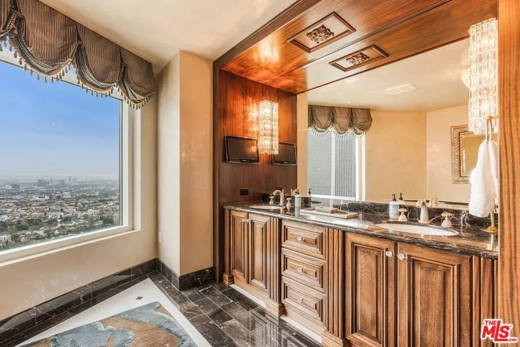 The Century is one of Los Angeles’ premiere full-service, guard-gated, high rise buildings with unparalleled panoramic views of Century City, LACC golf course, Beverly Hills, Sunset Strip, Hollywood, and Downtown Los Angeles! This custom-designed 3-bedroom, 4-bath masterpiece features a gracious formal marble entry, hand-crafted doors, bronze fixtures, open-concept living-kitchen-dining Grand Room, spectacular high-volume ceilings, magnificent wood-paneled built-ins, flexspace for formal and informal entertaining, stunning views from every angle, convenient breakfast/lunch wine bar seating, kitchen island seating, high-end appliances, plenty of counter space for gourmet cooking, and comfortable patio-terrace for indoor-outdoor living. Unit 27C is located at the top of The Century “C” stack with extra-high ceilings that enhance wide angle vistas throughout the entire unit – truly a one-of-a-kind experience with floor-to-ceiling views that capture bold visuals and iconic landmarks stretching across dozens of miles — all at once! This experience is so astonishing, even a dedicated world-class Chef may be tempted to extend cocktail hour to relish the unforgettable kaleidoscopic mosaic. The Primary Suite’s open-concept renovation (South Wing) includes high-volume ceilings, architectural appointments, and picturesque cityscape views via multiple vantage points, plus an outdoor balcony-terrace to engage early morning sunrises and scintillating city lights. The meticulously-designed Primary boasts walk-in closets, customized built-ins, over-size shower, large-scale bath, dual sinks, separate commode. The North Wing’s large-scale hallway leads to the guest powder room, two ensuite bedrooms with LACC golf course and prime Century City views, laundry/storage room, service entrance, service elevator. The Century’s luxury-lifestyle amenities are legendary: 24-hour guard-gated security, valet, front-desk service, onsite engineer, resort-style pool, state-of-the-art fitness center, yoga and Pilates studios, dining and entertaining spaces, library, meeting room, children’s playroom, luxurious spa, screening room, wine cellar, storage, even a dog run! The extraordinary (nearly 4-acre) campus is superbly designed by renowned landscape artist Pamela Burton showcasing exquisitely manicured lawns, mature trees, drought-tolerant foliage, exotic flowerings, central reflecting pool, comfortable seating nooks with barbecue access and outdoor fireplaces. All this, minutes to Century City Mall, Beverly Hills, Rodeo Drive, with close proximity to Cedars-Sinai and UCLA Medical Centers. The Century’s resort-style lifestyle is incomparable for its security, privacy, and convenience – truly second to none!