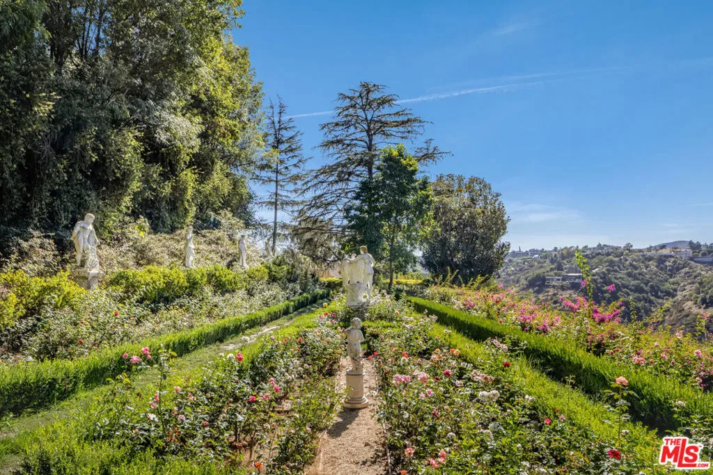 Perched in the storied hills of Bel Air and spanning more than 13 rarefied acres, this legacy property ranks among the most extraordinary offerings in all of Los Angeles. Commanding panoramic views that sweep across city skylines and into the quiet majesty of surrounding canyons, the estate unfolds as a private compound of exceptional scale and serenity. Manicured gardens and mature landscapes frame the Mediterranean-style main residence, while a 3,869 square foot guest house, set at a discreet distance, creates a true sense of separation and privacy. At the center of the grounds lies a lush oasis featuring a resort-like pool bordered by tropical flora, cascading waterfall, and pathways that meander through verdant lawns and curated plantings, an environment more evocative of a private botanical garden than a city estate. Whether held as a generational compound, a private retreat, or reimagined as one of the greatest development opportunities in the country, this is a once-in-a-lifetime canvas in one of the world’s most coveted enclaves. Listing includes additional APNs: 4370-021-038, 4370-021-037, 4370-019-044.