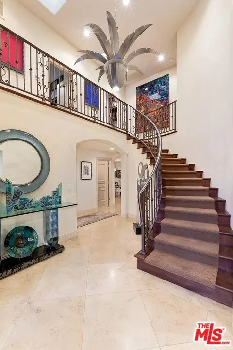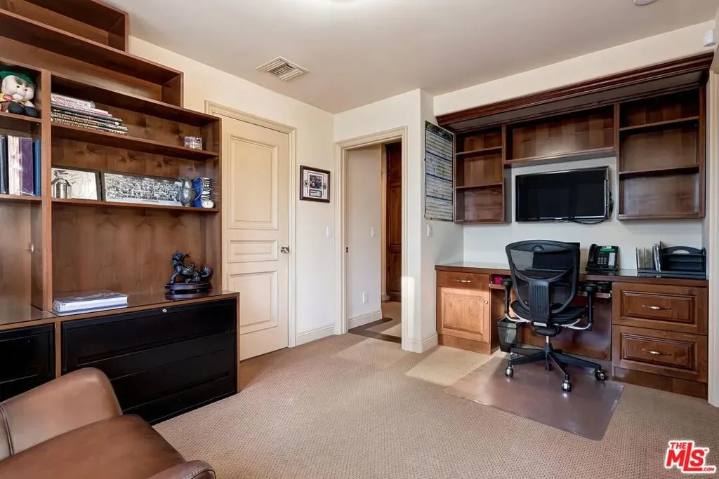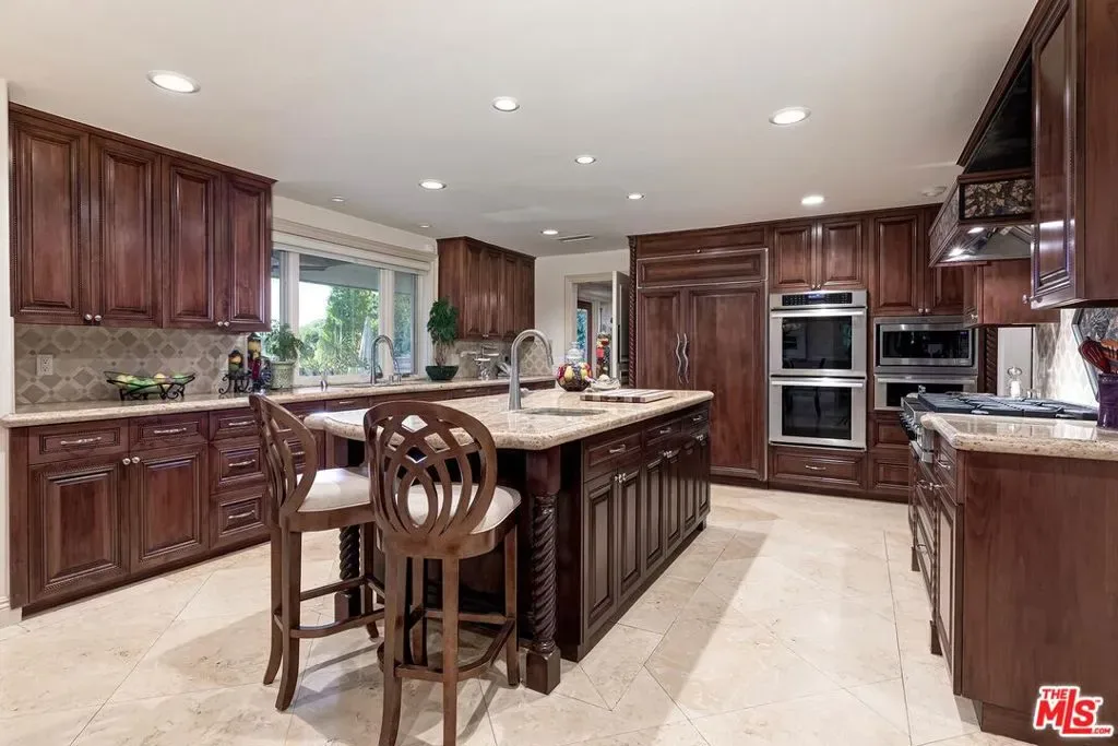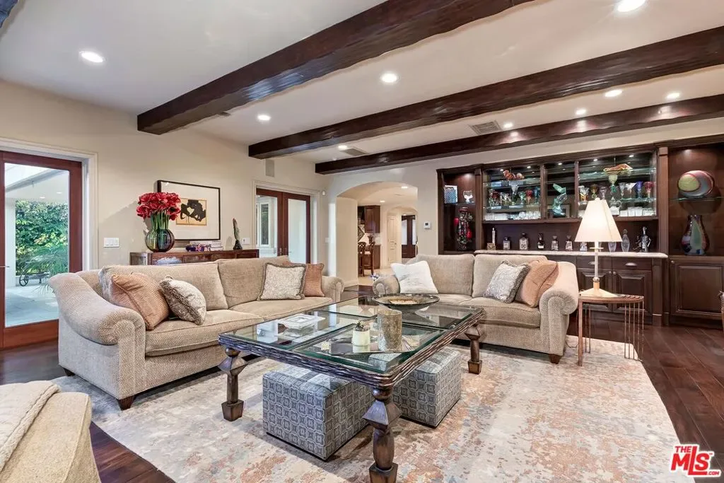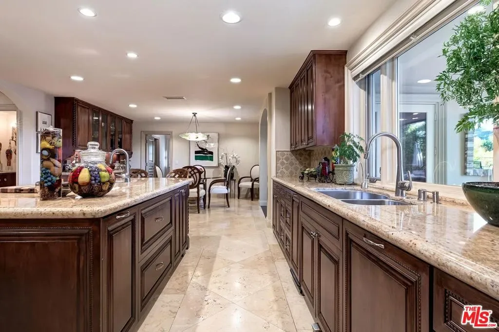 Elegant and sophisticated 4 bedroom custom home in prime Bel Air Ridge. Enter through a romantic courtyard to a 2-story foyer featuring limestone floors and a sweeping staircase. The living room contains one of 4 fireplaces and opens to the dining room with access to the stunning yard. Gourmet kitchen with center island seating, top-of-the-line appliances and a large breakfast area that opens to a beamed family/screening room with fireplace creating an entertainers dream. Lovely den or office with its own fireplace. Upstairs is the sumptuous primary suite with sitting room or office and another beautiful fireplace. Wonderful bathroom with steam shower and enormous closet. There are 3 additional bedrooms, balcony and another custom closet fit for royalty! Magnificent backyard with lush landscaping perfect for alfresco dining, bbq and built-in bar. Gorgeous spa and waterfall that cascades into a tranquil water feature. The private yard overlooks serene mountain views. 3-car garage. Perfectly located close to the Beverly Glen Centre and minutes to shopping on Rodeo Drive. Located in the prestigious Roscomare Elementary School district and close to many elite private schools. This home has the use of a world-class fitness center, tennis and pickle ball courts, 2 pools along with a park. Beautiful living in the heart of the city!