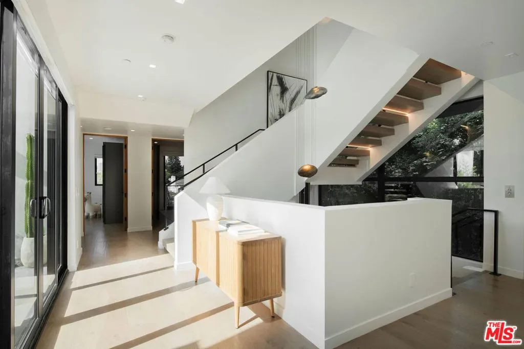 Discover the elegance of this recently-built architectural contemporary, with bright, sunlit interiors, and versatile indoor and outdoor spaces ideal for entertaining. Step into a welcoming foyer, adjacent to a guest suite and powder room, where high ceilings and hardwood floors meet expansive walls of windows. This flows into a spacious great room, highlighted by an open kitchen equipped with premium Miele appliances. Disappearing glass doors connect seamlessly to a private backyard featuring a pool and spa. The upper level, with multiple balconies, includes a generous primary suite with a large walk-in closet and luxurious en-suite bathroom, along with two additional well-appointed bedrooms, each with its own private bath. The lower level offers a light-filled basement with a family room, home theater, wine room, laundry area, storage space, and two more bedrooms with bathroomsperfect for family or guests. The home also boasts a convenient elevator for easy access. Atop it all is an expansive roof deck, complete with an outdoor kitchen and fireplace, offering stunning 360-degree views of Century City, the Wilshire Corridor, and Santa Monica. This gated property includes a two-car garage and is situated in a desirable neighborhood with close proximity to Cheviot Hills Park, Rancho Park Golf Course, and the Century City shopping mall.