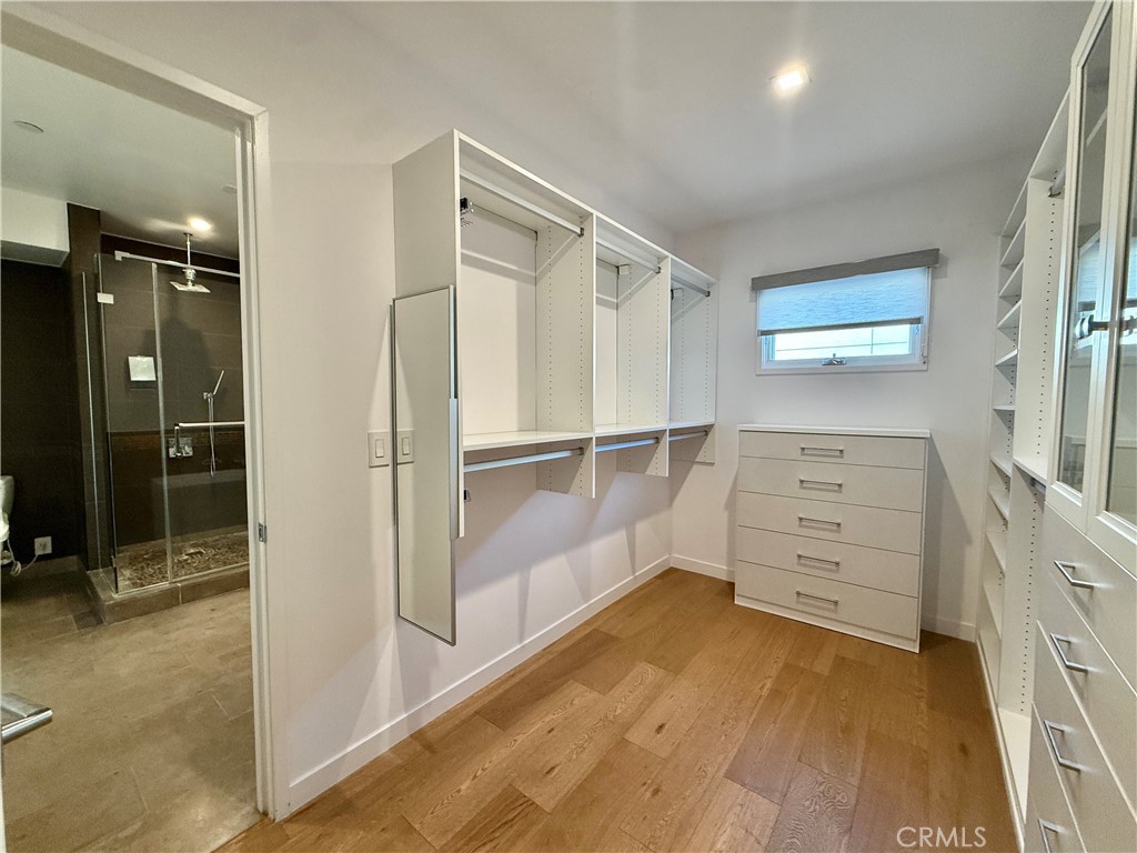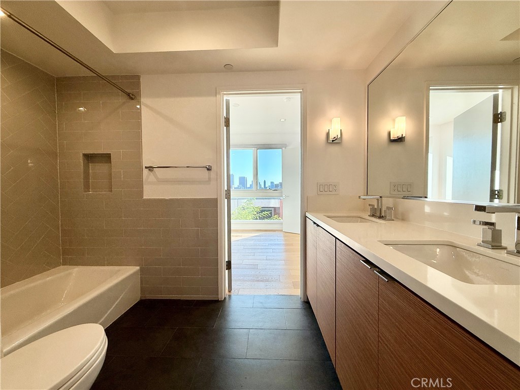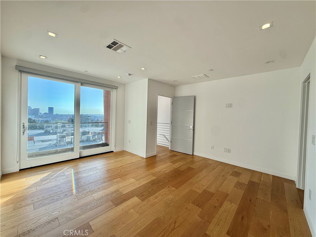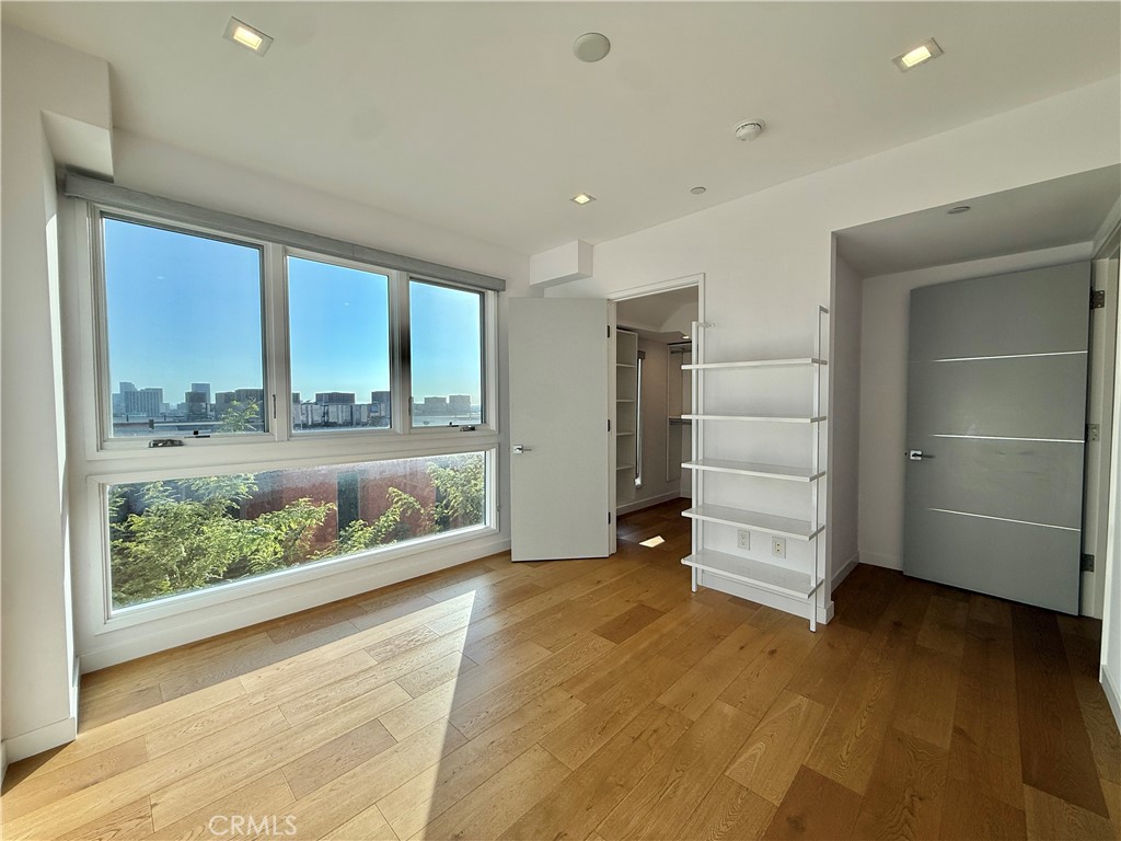 The residence includes a 2-car tandem garage with private Tesla EV charger, generous guest parking, and full-size in-unit laundry. Smart home upgrades include 2 Nest Wi-Fi thermostats, Ring camera setup (subscription required), and built-in speakers. The chef’s kitchen is equipped with GE Café refrigerator, Bosch range & dishwasher, and LG microwave. All bedrooms feature custom walk-in closets by California Closets, with the primary suite boasting a private balcony showcasing panoramic DTLA views.
