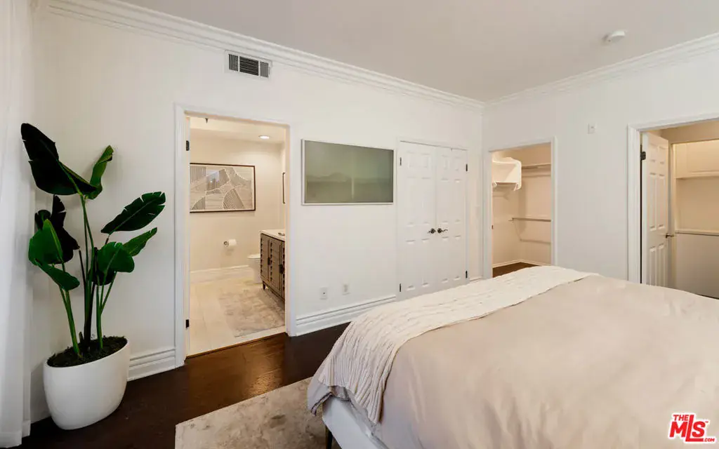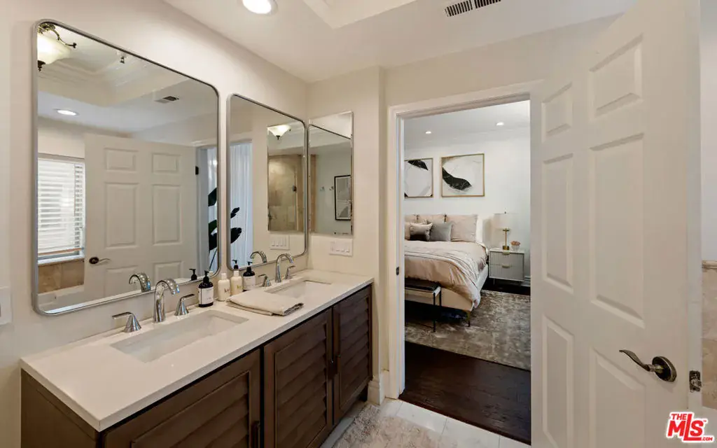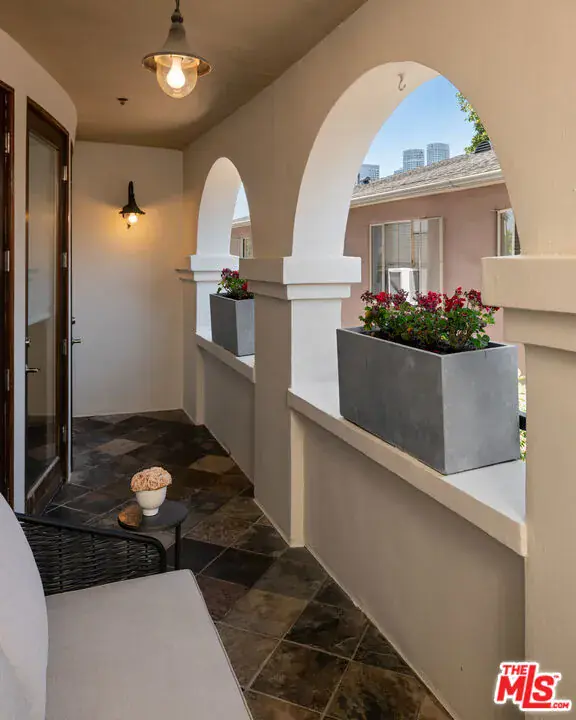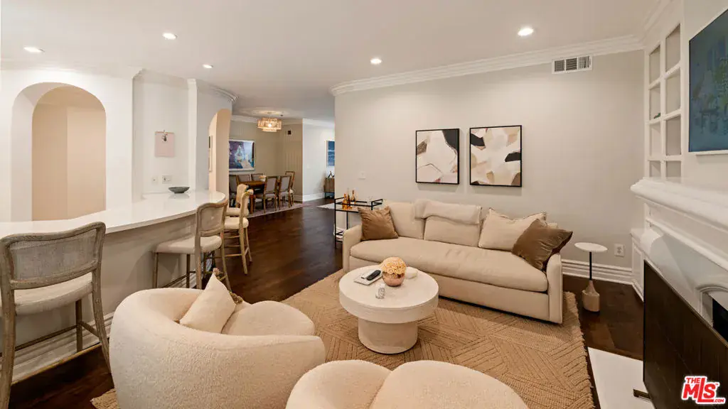 This beautifully appointed 2-bedroom, 2-bath, 1,569 sq. ft. condo sits on a quiet, tree-lined street in one of West LA’s most coveted neighborhoods. Recently remodeled, it blends the comfort of a 5-star hotel with the convenience of being just moments from Westwood Village and Century City.Set within a secure, newer-construction Mediterranean building, residents are welcomed through an elegant open-air courtyard with a charming fountainan immediate glimpse of the lifestyle within. Inside, a formal foyer opens to a spacious kitchen, family room, and living area designed for both everyday comfort and effortless entertaining.Two bedrooms are thoughtfully placed on opposite ends of the home, including a primary suite with abundant closet space, a spa-like bath with soaking tub, and direct access to the expansive covered patio. Every main room flows outdoors, creating a seamless indoor-outdoor experience perfect for morning coffee or evening gatherings.Rich hardwood floors, crown moldings, graceful arches, and beautifully restored tilework are enhanced by tall ceilings, natural light, and luxurious finishes. Residents enjoy a well-managed, secure community with gated underground parking (two tandem spaces plus guest parking).Whether savoring quiet mornings on your patio or stepping out to LA’s premier shopping, dining, and cultural destinations, this home offers a lifestyle where every day feels elevated.Additional note: A new premium elevator was installed on 11/6/2025, enhancing convenience and value within this Mediterranean-inspired community.