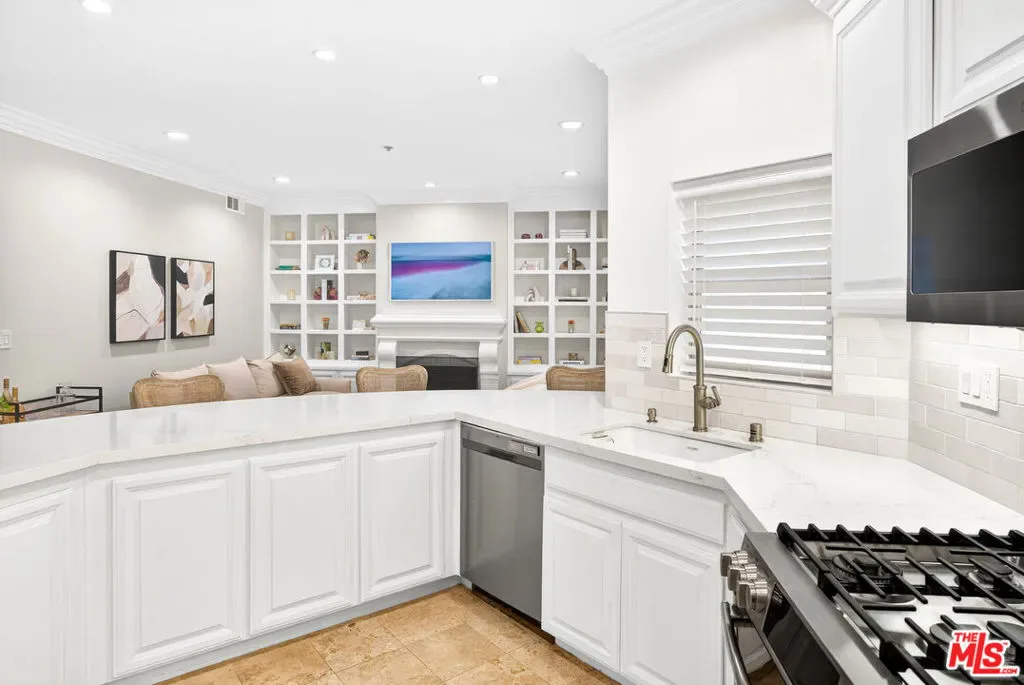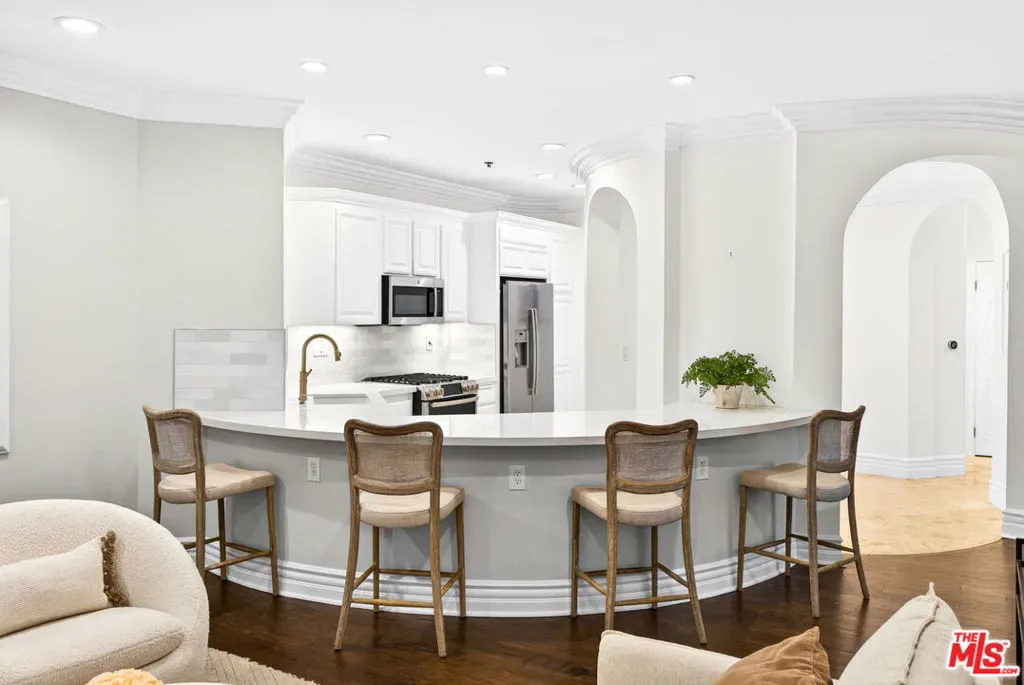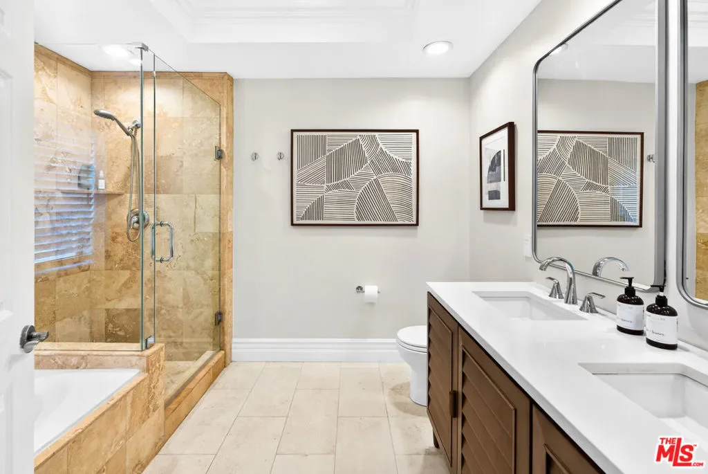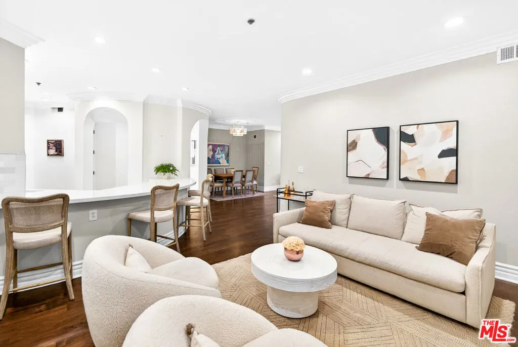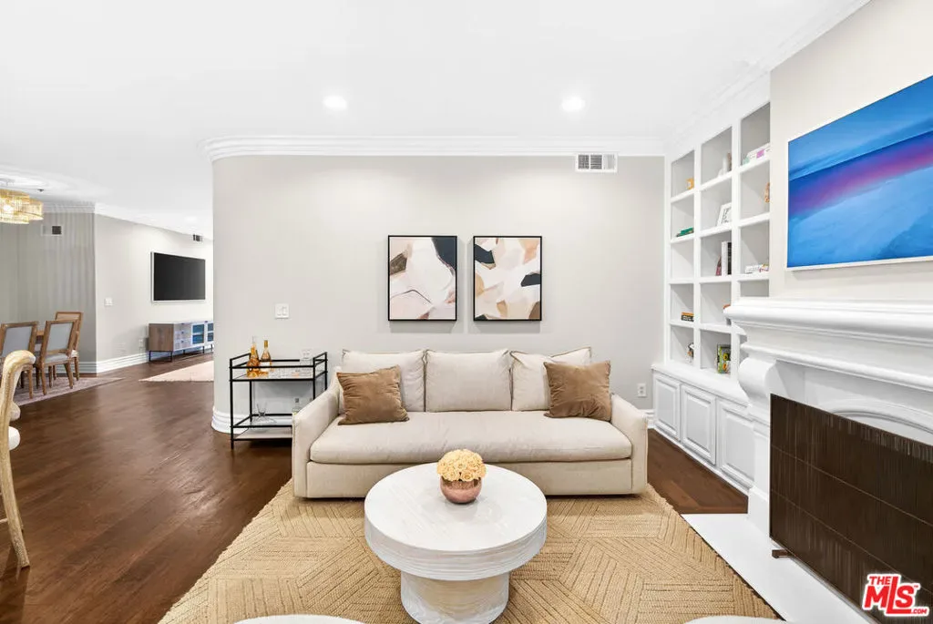 Located on a quiet, tree-lined street between Westwood and Century City, this beautifully updated 2-bedroom, 2-bath residence offers approximately 1,569 sq. ft. of light-filled living in a Mediterranean-style building. A secure entry leads through a charming open-air courtyard with a fountain, setting a welcoming tone before entering the residence. Inside, a thoughtful floor plan unfolds with a foyer, an open kitchen with an adjacent family room, and a spacious living area designed for both relaxed daily living and easy entertaining. The bedrooms are positioned on opposite sides of the residence, providing privacy and separation. The primary suite features a walk-in closet space, a tub, and direct access to a large, covered balcony. Multiple rooms open to the balcony, creating a seamless indoor-outdoor flow and extending the living space for morning coffee, dining, or evening gatherings. Architectural details include wood floors, crown moldings, graceful arches, tilework, and tall ceilings. Additional amenities include gated underground parking with two tandem spaces and guest parking. Ideally located just moments from Westwood Village, Century City, UCLA, and many of the Westside’s most popular dining and shopping destinations.