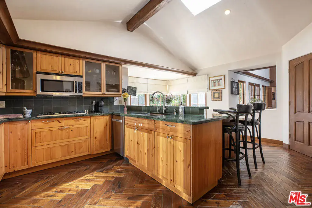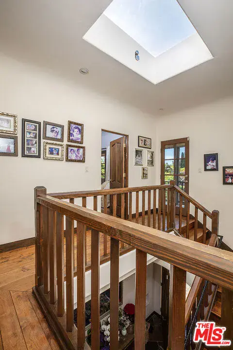 Nestled in the prestigious Comstock Hills neighborhood, this magnificent Spanish-style Westwood estate thoughtfully reimagined by an architect-owner in 2009 offers the rare combination of timeless architecture, generous space, and an unbeatable Westside location. Spanning 4,600 square feet on a lush 9,737 SF lot, this entertainer’s dream home unfolds across two beautifully appointed levels. The grand living room anchors the main floor as French doors spill out onto front and side patios, seamlessly blending indoor and outdoor living. A dramatic dining room with soaring beamed ceilings and French doors to the garden sets the stage for memorable dinner parties, while the chef’s kitchen features granite countertops, double ovens, and a sun-drenched breakfast nook with a skylight with views of Century City. A warm library/office with garden views provides a quiet retreat, while the expansive family room with its beamed ceiling, tile floors, and private entrance offers ideal flexibility for a media room, playroom, or home gym. Two bedrooms and baths and an expansive guest or maid’s suite with its own private patio complete the downstairs. Upstairs, the serene primary suite opens to a sweeping balcony and features a spa-like bath with Jacuzzi tub, skylit shower, his-and-hers vanities, and generous walk-in closets. Also upstairs are a secondary en-suite bedroom, a spacious adjacent bedroom, and a bonus room perfect as a nursery or home office, all with tree-top vistas. The generous yard offers plenty of space for barbecues, gardening, play, or simply soaking in the California sun. A 2-car attached garage provides secure parking and easy access. All appliances included, including refrigerator, washer, dryer, dishwasher, microwave, and range/oven. Central AC/heat keeps things comfortable year-round. Located on a tranquil residential street, just minutes to Century City, Beverly Hills, UCLA, Westwood Village, and the 405 freeway. Zoned for highly-regarded Fairburn Avenue Elementary. This upscale enclave delivers walkability, a quiet residential setting, and Westside living at its finest–ideal for professionals, families, or those seeking a rare full-size home in the heart of the city.