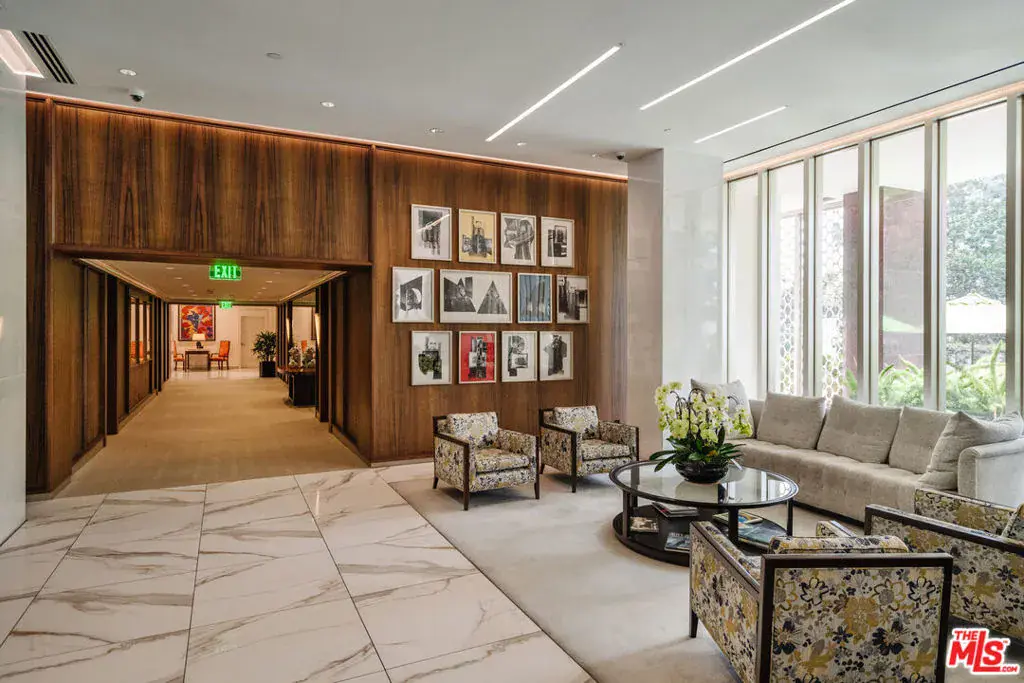 Introducing the finest residence set within the prestigious Wilshire Terrace enclave. Experience opulent high-rise living within all 2,100+ SqFt of this designer-done home showcasing unparalleled panoramic views from the mountains and golf course to the ocean and city skyline. Guests are welcomed into this crown jewel unit by an abundance of natural light, courtesy of the two expansive terraces, and pristine hardwood floors carried throughout the thoughtfully curated floor plan. Meticulously crafted built-ins line the walls of the paneled library accompanied by a cozy fireplace with sight lines to the dining room and den, ideal for entertaining. Exuding an ambiance of refined sophistication, the formal dining room expertly captures breathtaking jetliner views. The chef’s kitchen boasts gourmet appliances, stainless steel countertops and a considerable island in addition to the breakfast nook. The palatial primary suite offers lavish walk-in closets and a luxurious ensuite. The Wilshire Terrace spoils its residents with renowned amenities including valet services, a large pool and spa, well-equipped gym, hair salon, dedicated on-site manager, and a dog park in one of the most highly coveted locations.