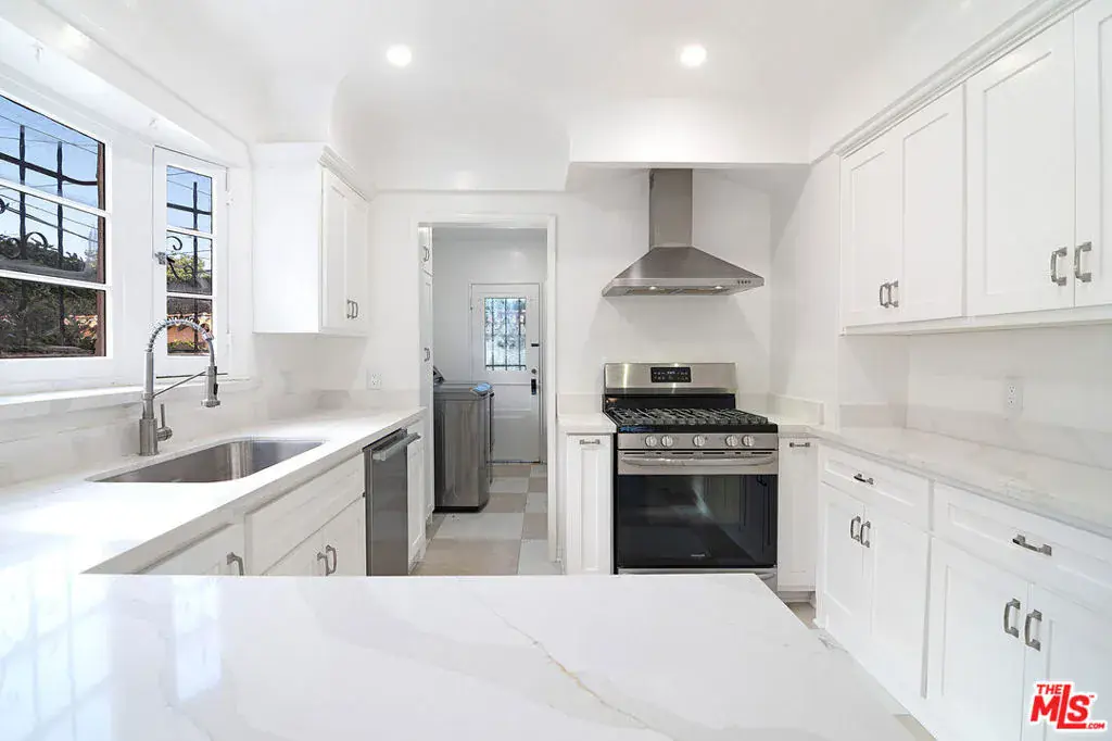 Discover the perfect blend of historic charm and modern luxury in this exceptionally spacious lower unit available for lease, boasting over 2,000 square feet with 3 bedrooms and 2 bathrooms. Step into the grand, step-down living room featuring ornate crown moldings, a stately fireplace with elegant matching trim, and serene views overlooking the beautiful tree-lined historic Alfred Street. Entertain in style in the bright and inviting formal dining room, adorned with layers of exquisite period moldings. The heart of the home is the brand-new remodeled kitchen, complete with gleaming bright floors, sleek quartz countertops, and stainless steel appliances. Adjacent is a charming separate breakfast room with an open buffet peninsula and beautiful moldings, ideal for casual meals. Relax in the original 1930s Art Deco-inspired master bathroom, showcasing classic deco tile, a separate shower, and soaking tub, while a remodeled black-and-white accented three-quarter bathroom is conveniently attached to the secondary bedroom. Convenience abounds with a dedicated laundry room equipped with side-by-side washer and dryer. Outside, enjoy ample hardscape and lush yard space, plus a private 2-car garage. Nestled on one of the premier blocks in the coveted Carthay Circle HPOZ, this home offers unparalleled access to the vibrant Miracle Mile museums (including LACMA and the Academy Museum), Beverly Hills shopping, The Grove, and an array of acclaimed dining optionsa rare opportunity to lease a piece of Los Angeles history in one of its most desirable and walkable central neighborhoods!