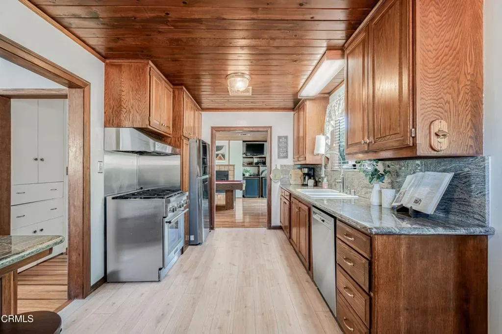 Welcome to this amazing home in the desirable Sunland area, offering a wonderful combination of space, comfort, and charm. Situated on a generous 22,325 sq ft lot with 2,332 sq ft of living space, this property provides plenty of room to live, entertain, and enjoy.As you arrive, you are welcomed by a spacious driveway and a beautifully maintained front yard that create a warm first impression. Inside, the living room features elegant wooden floors and a stunning brick fireplace, making it a cozy and inviting space.The dining area is bright and comfortable, with a nice window and a ceiling fan. The kitchen offers a classic design with laminate flooring, stainless steel appliances, a professional stove with gas oven, a double sink, and a small but functional breakfast bar. Beautiful dark wood cabinets add warmth, and there is direct access to both the laundry room and the backyard.The laundry room includes a washer, dryer, and additional storage space. Next to the kitchen is a spacious game room featuring a second fireplace, a bar, and sliding doors that lead out to the terrace, making it perfect for entertaining. There is also a full bathroom with a tub conveniently located between the kitchen and the game room.The primary bedroom is a comfortable retreat with wooden floors, a walk-in closet, and a well-designed bathroom with both a tub and a separate shower. Two additional large bedrooms share a full bathroom, each with its own private entrance.The terrace features a wooden deck and overlooks the expansive backyard, offering a great space to relax or gather. A covered section provides shade for the jacuzzi, making it enjoyable throughout the day.The property also includes a four car garage with plenty of storage space, as well as a separate shed for additional storage.This home offers space, functionality, and character, making it a great opportunity in Sunland.