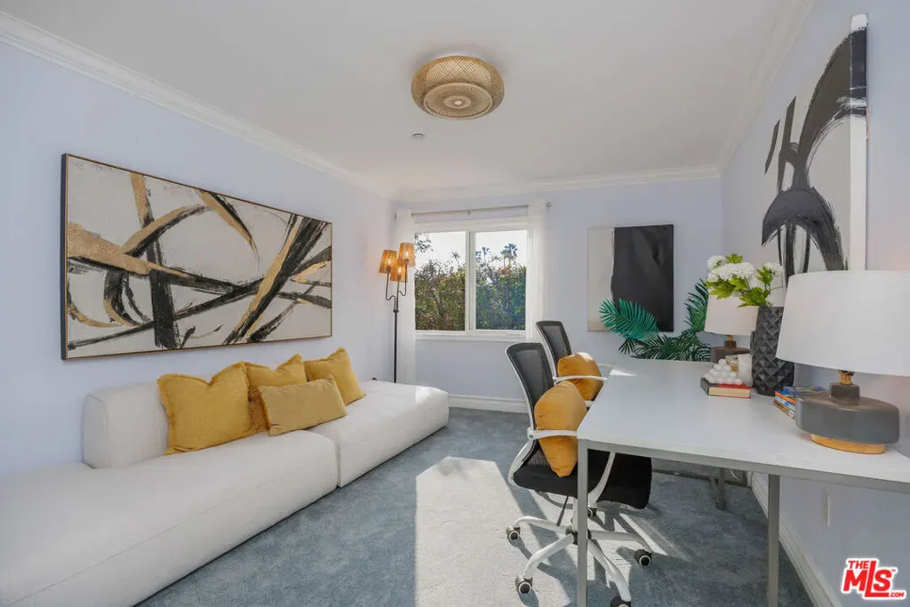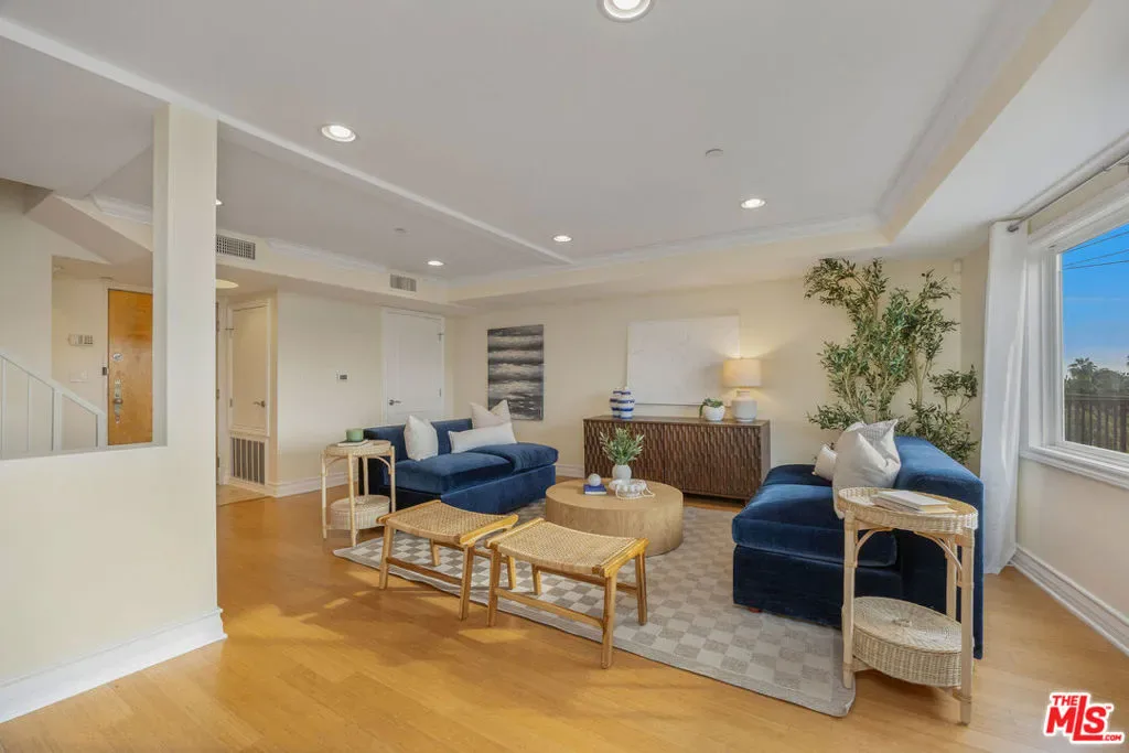 Perched on the top floor of a newer 2004 building on a quiet Westwood street, this rare corner two-story penthouse offers over 2,000 square feet of refined, house-like living. This three bedroom, two and a half bath residence is filled with beautiful natural light and refreshing breezes while capturing sweeping panoramic views, spectacular sunsets, and offering access to a private rooftop deck. Thoughtfully designed for both comfortable daily living and elegant entertaining, the main level highlights the spacious open floor plan that seamlessly connects the living room, den, balcony, dining area, and chef’s kitchen. The kitchen features a breakfast bar and top-brand appliances, including a Viking Professional range and dishwasher, creating a perfect space for cooking and gathering. The lower level features a spacious primary suite with its own private entrance, generous closet space, and a well-appointed bathroom. Two additional generously-sized bedrooms, a second full bathroom, and convenient side-by-side laundry complete the home’s comfortable and thoughtfully designed living spaces. This exceptional penthouse offers a peaceful retreat from the pace of city life while remaining moments from UCLA, Century City Mall, Beverly Hills, Los Angeles Country Club, Rancho Park Golf Course, premier shopping, and some of the Westside’s most popular dining destinations.