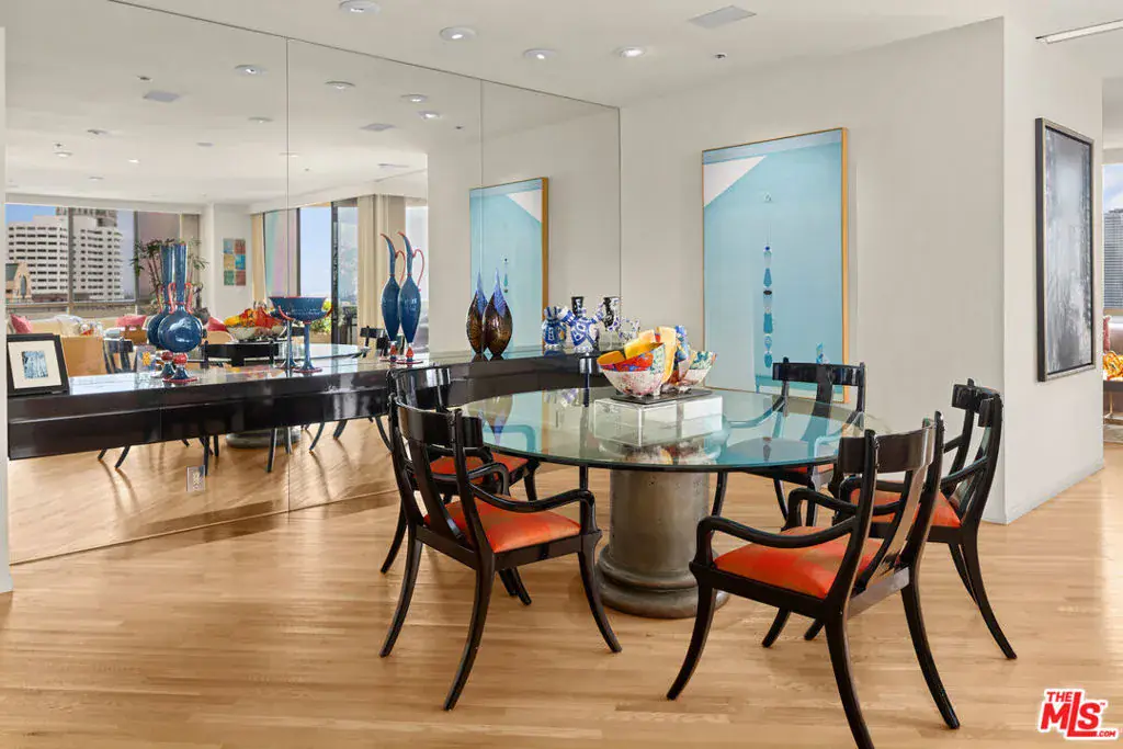 Incredible Panoramic Views | Coveted Southwest “05 Stack” | The Mirabella, Wilshire Corridor Positioned in the highly sought-after southwest”05stack,” this designer residence at the prestigious Mirabella offers an unparalleled combination of light, scale, and dramatic views. Set on the quiet side of Wilshire, the “05 stack” extends further out than any other part of the building, creating unobstructed views in every room that extend from Downtown LA to the ocean. A double-door entry welcomes you into an expansive, light-filled floor plan featuring 9-foot ceilings, hardwood floors, a stone fireplace, and walls of glass that seamlessly connect to a spacious view terrace. The open living room flows effortlessly into the dining area, which includes a wet bar that is perfect for entertaining. An elegant powder room adds to the home’s sophistication. The second bedroom suite (currently configured as a media room) also opens to the terrace, while the primary suite occupies the opposite wing, offering exceptional privacy. The primary retreat is generously scaled with an enormous remodeled bath, a walk in closet, plus additional closets, custom built-ins, and its own private view balcony. The gourmet kitchen showcases stainless steel appliances ,hardwood floors, a breakfast area with view balcony, a center island with breakfast counter, black granite countertops, and a laundry closet for added convenience. Residents of the Mirabella enjoy the very best in full-service luxury living: 24-hour concierge, doorman, and valet, Fitness center, swimming pool, spa, and sauna, conference/party room, 2 side-by-side parking spaces plus additional storage, secure entry off Wilshire. Perfectly situated in the heart of the Wilshire Corridor, this residence is minutes from Beverly Hills, Century City, Westwood Village, UCLA, Cedars-Sinai, and some of Los Angeles’ finest dining and shopping