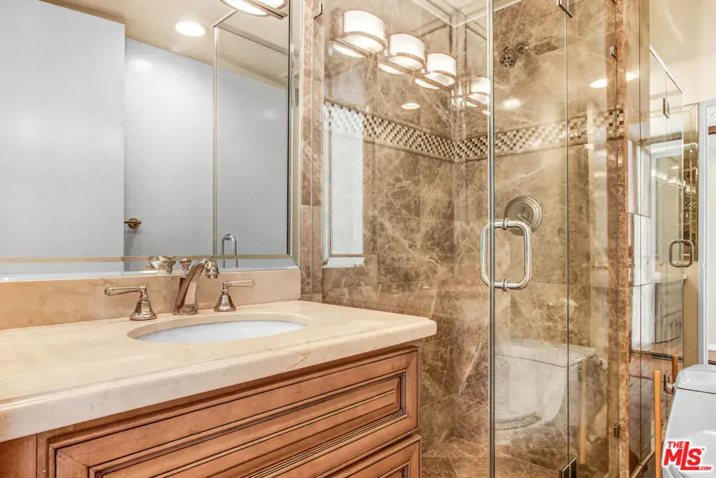 Superb & chic New York style 2-Bed. /2-Bth corner unit condo with spectacular views in the prestigious Wilshire Holmby, a full-service high-rise on Wilshire Corridor. Formal entry hallway, spacious & sun-filled living & dining area, remodeled kitchen with custom cabinetry, granite counter tops & stainless- Steel appliances, great primary suite with generous closet space, plantation shutters, hardwood floors & sensational city & mountain views! Building offers 24-hours valet & security along with great amenities including pool, gym, & recreational room.