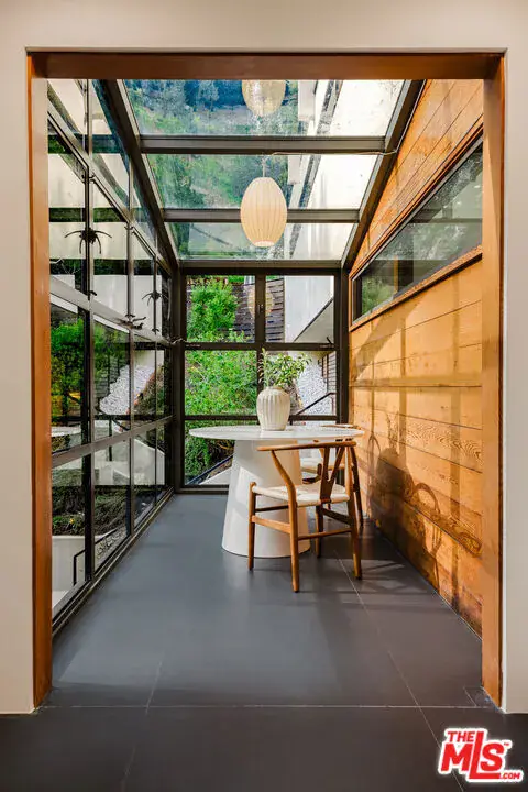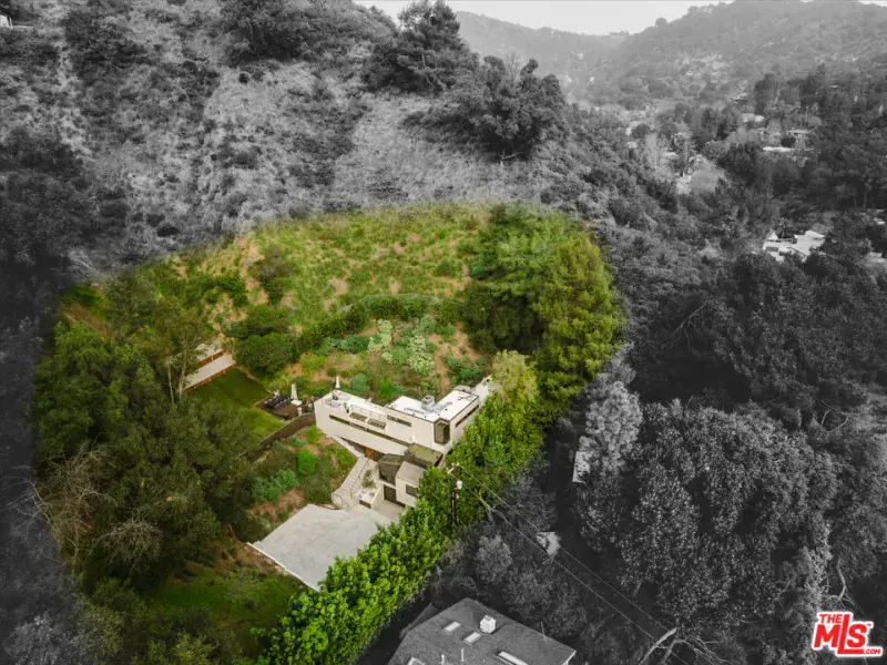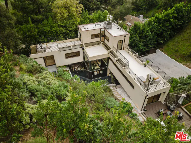 Tucked at the end of a quiet cul-de-sac in a secluded Bel Air canyon, this reimagined, architecturally designed modern residence offers exceptional privacy, while remaining just five minutes from Sunset Boulevard, a few minutes from the Beverly Hills Golden Triangle, and approximately ten minutes from UCLA. Enjoy effortless access to Hotel Bel-Air, Rodeo Drive, and the premier shopping and dining corridors of Beverly Hills and Bel Air, plus Westfield Century City, with quick access to the 405 Freeway for convenient connectivity across the Westside and beyond. Originally designed by local architect John Kilbane in the tradition of John Lautner, this one of a kind residence sits on approximately 1.5 acres and spans across approximately 3,000 square feet. The home features three bedrooms and three-and-a-half bathrooms across three levels. The residence has undergone a comprehensive exterior transformation and is finished in new beige stucco, thoughtfully reimagined with materials selected for the Bel Air hillside environment. Inside, walls of glass define the main living spaces, complemented by new and refinished wood flooring, updated electrical systems, and a comprehensive LED lighting upgrade. A Lutron-based lighting system with programmable scenes is paired with automated blinds and smart home security. The kitchen is outfitted with premium appliances, including a Sub-Zero bottom-freezer refrigerator with a new compressor, Gaggenau range, as well as Miele ovens and dishwasher. Situated between the living and dining rooms lies a premium dual-zone wine refrigerator. Living and dining areas extend into multiple sunrooms and outdoor terraces, with two exterior balconies enhancing indoor-outdoor living across levels. The primary suite offers a spa-style ensuite bathroom and a private balcony overlooking the canyon. A sculptural spiral staircase leads to the third level, a true retreat with its own bedroom, steam shower, and refreshed mini kitchen, well suited for a home office, studio, gym, or guest suite. Bathrooms have been refreshed with updated sinks, faucets, shower heads, exhaust fans and new grout throughout. The grounds are designed for enjoyment and ease of ownership, featuring expansive flat outdoor areas, multiple seating and entertaining zones with upgraded fencing. Above the main flat backyard space lies wooden steps leading up above to another flat grass area which allows for additional entertainment space, a dog run, walking trail, and even further possibilities for an additional structure. This vantage point from above allows for even greater mountain views and offers a world of possibilities while keeping total privacy. Conceived as a living landscape by UK arborist Josh Marcuson, the gardens feature curated native plantings, fruit trees, and a butterfly and bee garden with extensive mallow plantings selected to support Monarch butterflies creating a rare and meaningful nature connection. A professionally installed irrigation system supports water-efficient landscaping throughout the property, while outdoor lighting across the front, back and side yards and parking lot adds both ambiance and safety. Additional features include gated entry with smart access, a backup generator, two single-car garages, and six guest parking spaces. The offering includes four additional parcels, five total, providing long-term flexibility and value. The property’s size and configuration offer flexibility for future exploration and potential building, subject to buyer due diligence and approvals.