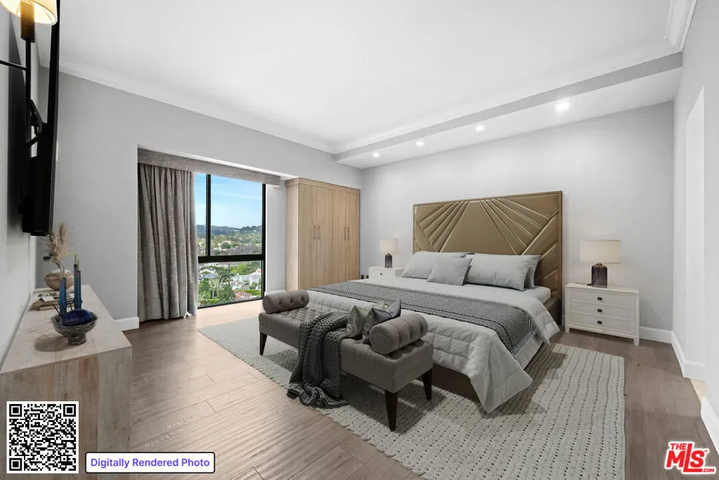 Pleased to present our newest listing at The Grand, a prestigious full-service building offering valet service, a pool, gym, and a recreation room with kitchen. This generous rear-facing unit features two bedrooms and two bathrooms, tastefully redesigned with wood floors and stunning views throughout. The bright, all-white kitchen is outfitted with high-quality appliances and clean, timeless finishes. The spacious primary suite boasts gorgeous views, a beautifully remodeled bath with dual sinks and a double rain shower. The secondary bathroom features a raised soaking tub. The second bedroom opens to a large private balcony, perfect for relaxing or entertaining. Additional highlights include side-by-side parking. This is a rarely available, ideally positioned back unit in one of the most sought-after buildings along the prestigious Wilshire Corridor. Don’t miss this exceptional opportunity.