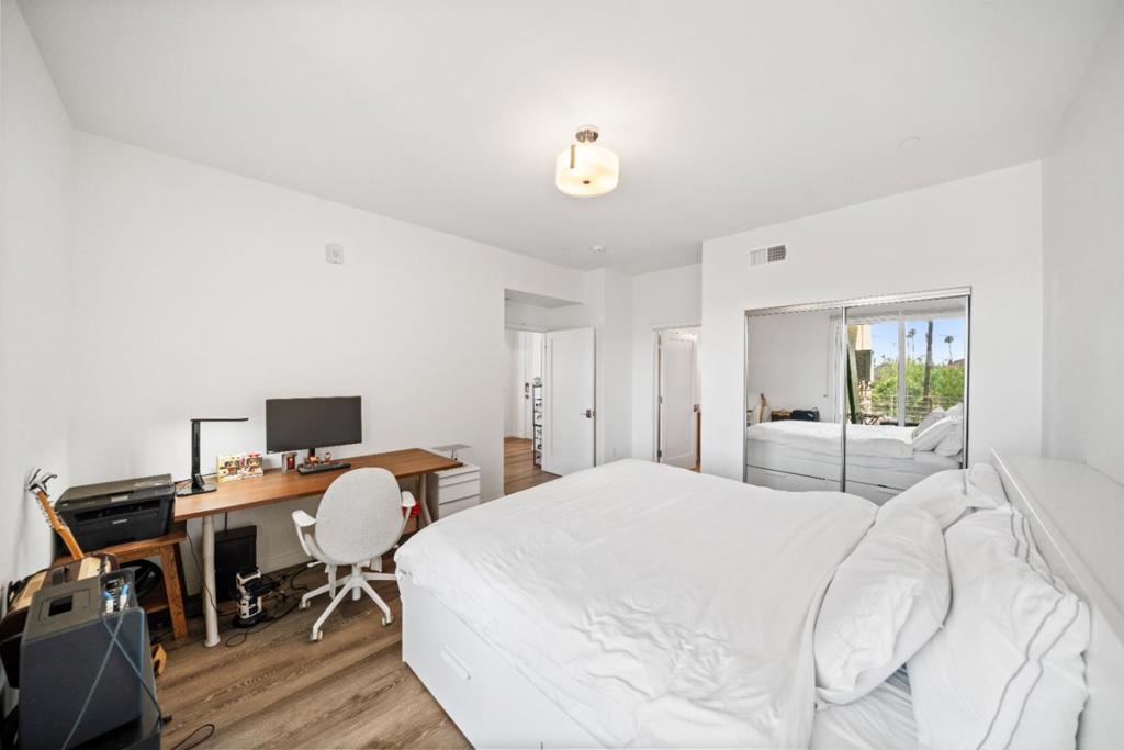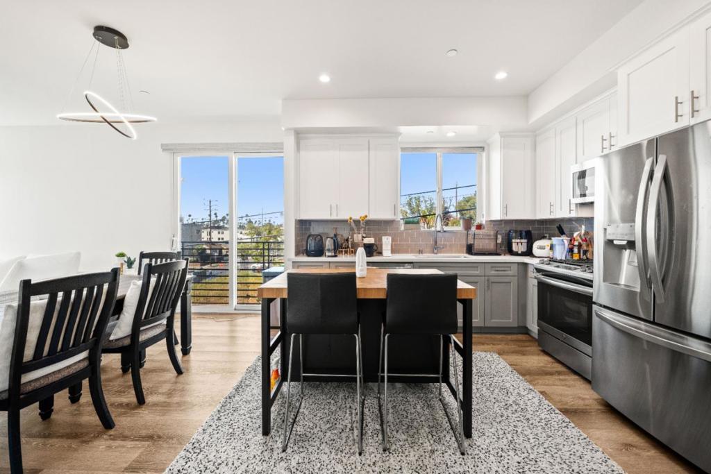 Built in 2018, this like-new contemporary condo is part of an exclusive 20-unit community ideally located in the heart of Korea Town. This bright corner unit is filled with abundant natural light and offers a spacious 2-bedroom, 2-bathroom layout with a private balcony, perfectly positioned on the 3rd floor. The home features soaring ceilings, LED lighting, smart home technology, own laundry room. Designed for modern living, the open-concept floor plan showcases a sleek kitchen with stainless steel appliances, quartz countertops, contemporary cabinetry, and stylish waterproof wood-look flooring throughout. A rare bonus, the unit comes with a 2-car carport, and it is the only carport in the entire complex equipped with its own EV charger port, making it an exceptional convenience for todays lifestyle-focused buyer.
