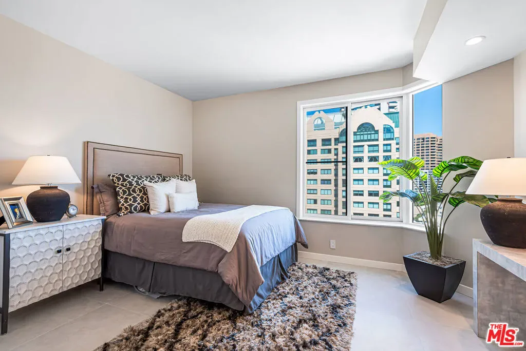 Experience luxury living at its finest in this remodeled, rear-facing southeast residence at The Wilshire Thayer. Perched on the 12th floor just below the penthouse, this stunning home offers sweeping, unobstructed views that stretch from Downtown Century City to the San Gabriel Mountains and beyond. The expansive open-concept living, dining, and kitchen area is bathed in natural light through floor-to-ceiling windows and sliding glass doors out to the balcony, creating a seamless indoor-outdoor flow. Every detail of this two-bedroom, two-bath home has been thoughtfully reimagined with modern design and sophisticated finishes. Highlights include a gourmet kitchen with walnut cabinetry, porcelain tile floors, built-in breakfast table, stainless steel appliances, wine fridge, farm sink, and a built-in espresso machine. Luxurious primary suite featuring two walk-in closets, a spa-like bath with freestanding soaking tub, smart toilet, and beautiful finishes. Upgraded details throughout including custom storage solutions, and a side-by-side washer/dryer. This residence is the perfect blend of beauty, innovation, and comfort. A must-see to truly appreciate. Please note – tenant will be required to sign receipt for Rules & Regulations and other documents required by the HOA. Photos show the unit staged and all staging furniture has been removed.