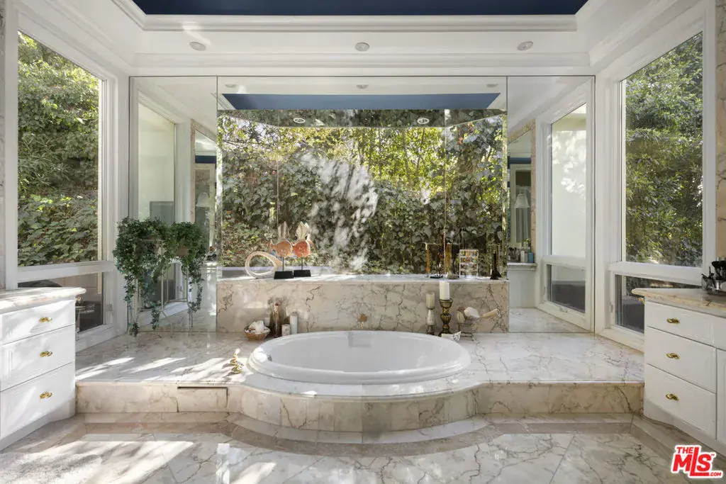 Tucked away on a secluded driveway, this stunning home offers a perfect blend of elegance, privacy, and convenience. Situated just minutes from Westwood Village, Beverly Hills, and major freeway access, this property is a serene oasis that offers it all. The residence boasts an open floor plan with soaring high ceilings and expansive floor-to-ceiling windows that frame breathtaking views of the mountains, city, and a beautifully landscaped backyard with a pool and spa. The formal living room, complete with a cozy fireplace, seamlessly flows into a casual family room off the kitchen, creating ideal spaces for both entertaining and everyday living.The modern kitchen features a central island, top-of-the-line appliances, and a bright eating area, making it a chef’s delight. A grand formal entry and a stylish powder room enhance the luxurious ambiance. Each bedroom is equipped with its own ensuite bathroom, including the master suite, which offers a fireplace, a spa-inspired master bath with a Roman-style sunken tub, and a peaceful retreat feel. Additionally, this property includes two separate ADUs (Accessory Dwelling Units) that can be incorporated into the lease, offering versatility for guests, office space, or extended family. With a two-car garage and ample guest parking, the home ensures both convenience and comfort. This Bel Air property offers unparalleled privacy and sophisticated living.