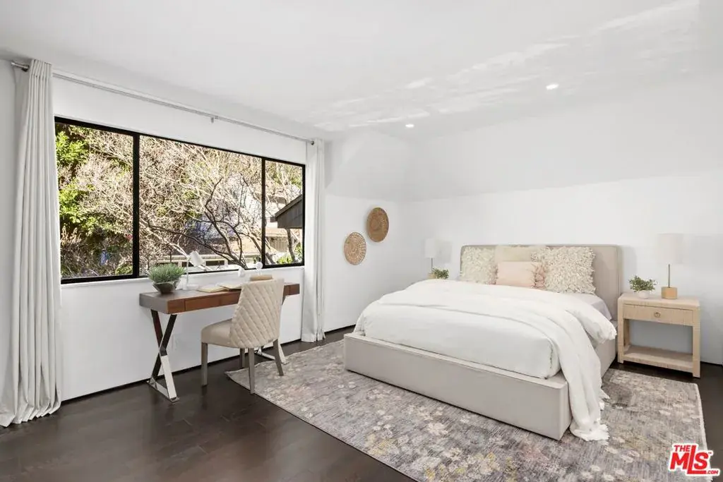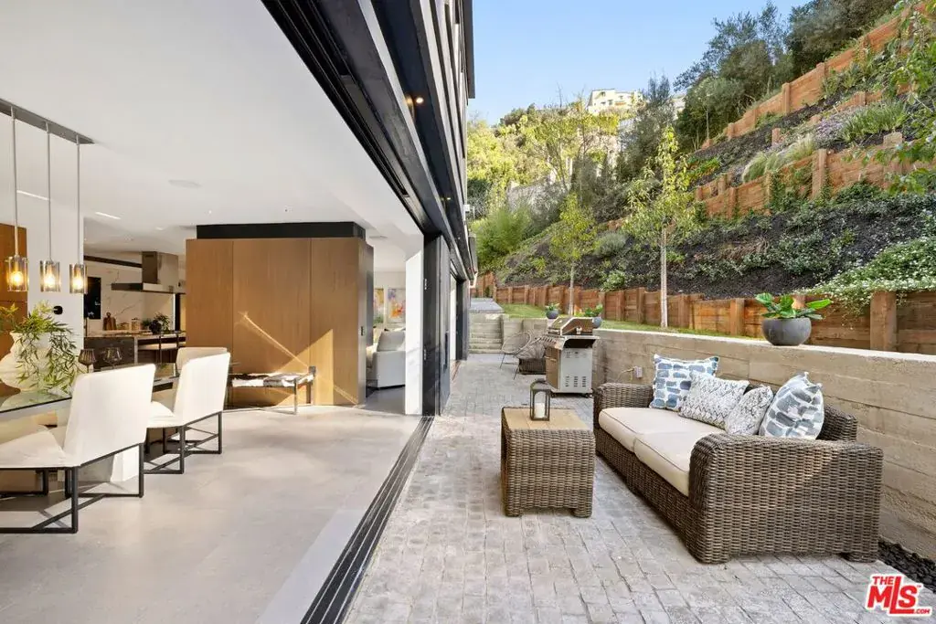 YOU HAVEN’T SEEN IT BEFORE. The 2nd floor was completely renovated to match the first floor when it was taken off the market last time. Stunning. Set on a 16,270 sq ft upslope lot, this renovated two-story, four-bedroom home sits about a mile from Sunset Boulevard on a quiet Bel Air cul-de-sac. More than 190 feet of street frontage, two driveways, a 2-car garage, and plenty of off-street parking as well. The existing home is approximately 3,550 sq ft, with the potential to expand to around 5,500 sq ft or more, depending on configuration. Inside, the home was recently renovated in a warm, modern style, with new aluminum windows and doors that bring in natural light and hillside views from nearly every room. Perimeter hedging provides privacy throughout. The living room has floor-to-ceiling glass, 10+ foot ceilings, and a limestone floor and an Italian marble fireplace.The first floor features an entertainer’s kitchen with walnut cabinetry, Brazilian quartzite counters, a 12-foot island, and appliances from Thermador, Miele, and Gaggenau, including gas, electric, and teppanyaki cooking modules. A family room with built-in audio, a 5-foot gas fireplace, and a 16-foot pocketing glass door opens to the backyard. The dining room seats 12 comfortably and includes walnut wall panels, a 155-bottle wine display, and another full-length pocket door to the outside.Upstairs, all bedrooms have hardwood floors and modern walnut doors. The main suite includes two walk-in closets, a built-in Bose system, and a large bath with a soaking tub, dual showers, and mountain views. Three additional bedrooms are spacious and bright; one is en-suite. A fourth bedroom with wood-clad walls also works well as an office or gym.The backyard offers over 2,000 sq ft of flat space with room for an infinity pool, plus more than 3,000 sq ft of additional flat side and front yard. Plans for expansion are available. The home also includes upgraded plumbing, electrical, heated floors, and full app-controlled systems throughout.