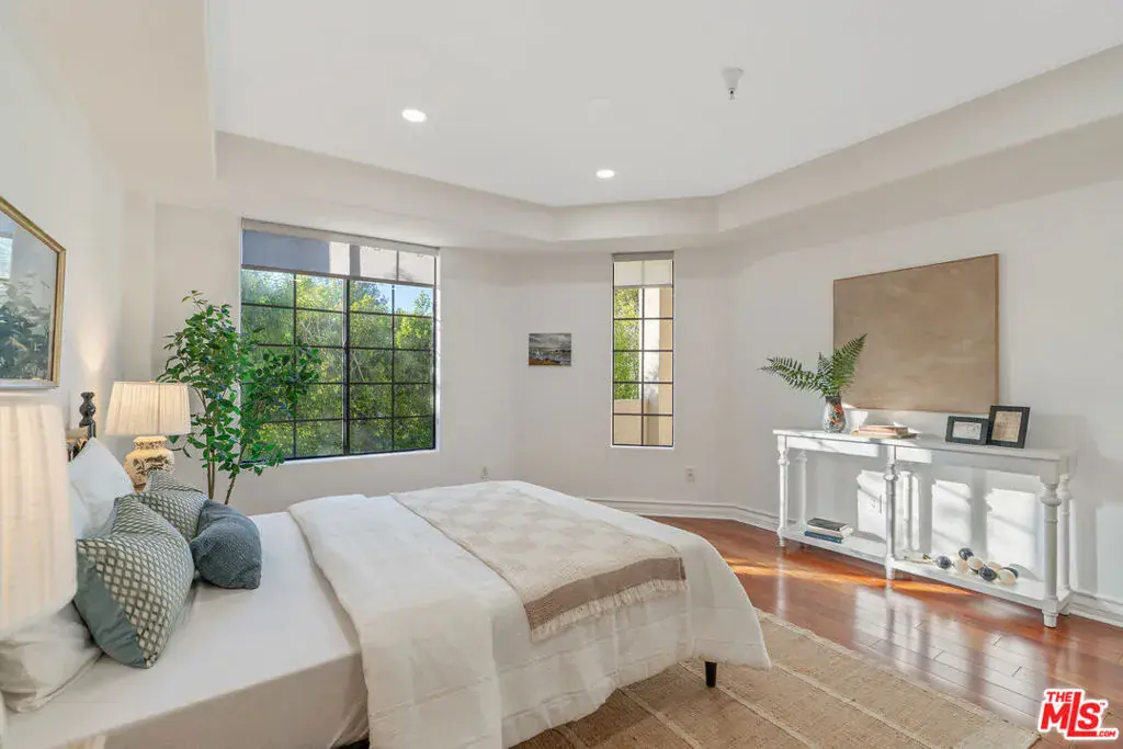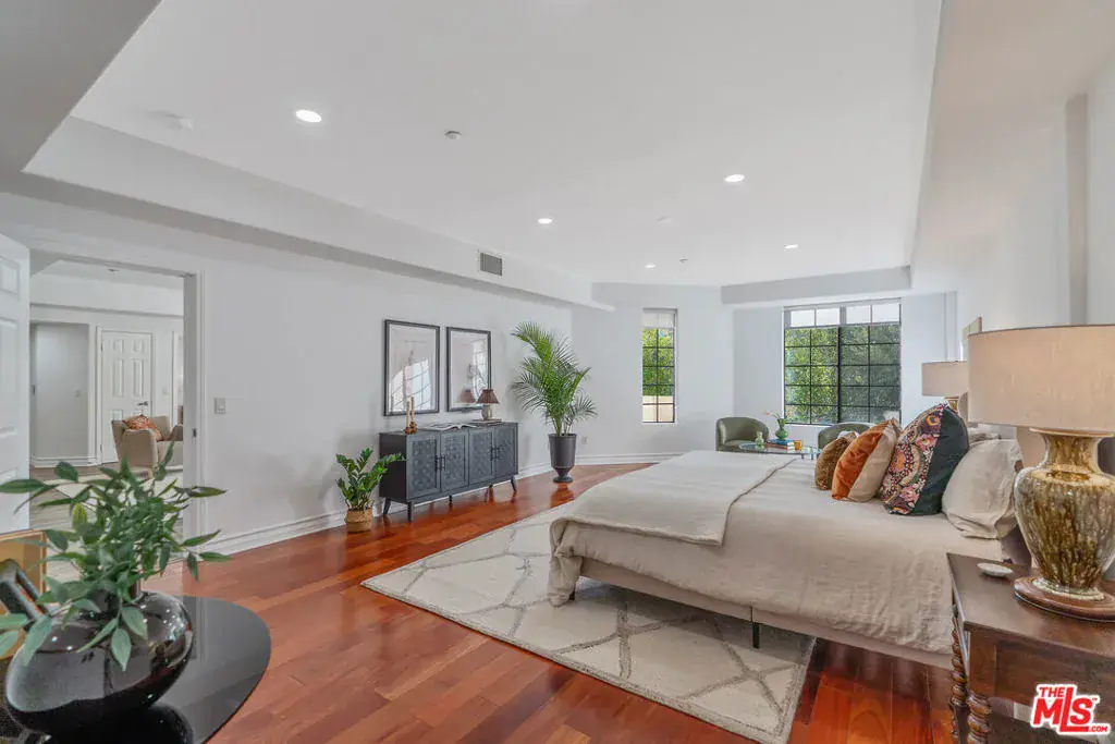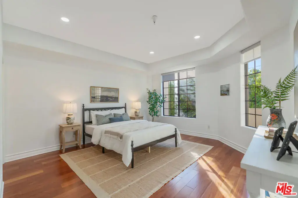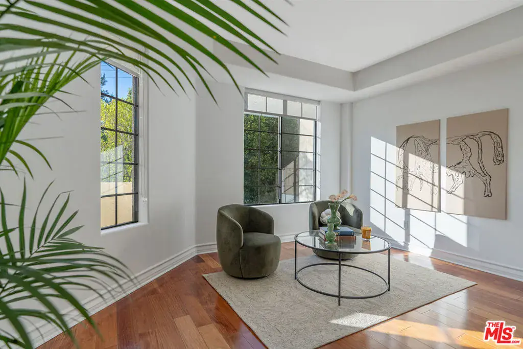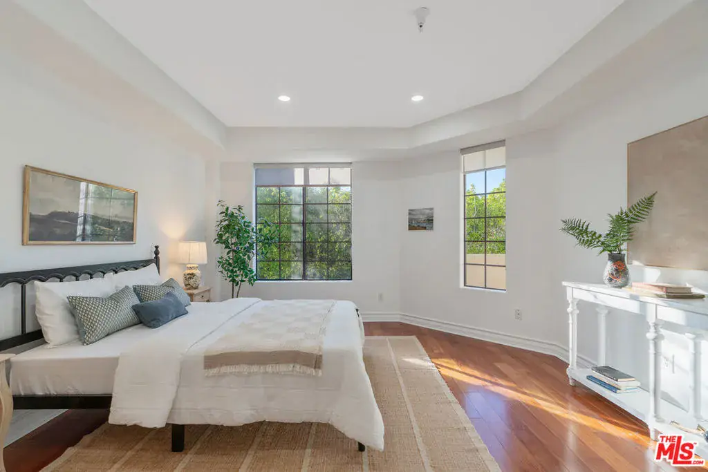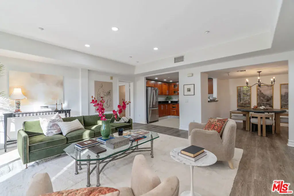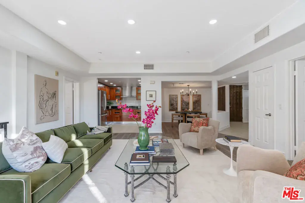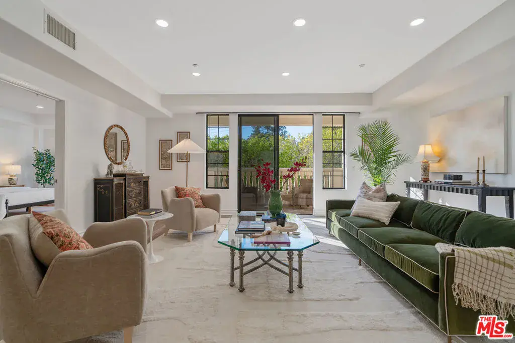 Beverly Hills/West Hollywood adjacent residence just off of 3rd St and Robertson Blvd, combining a prime central location with elevated living, close to Cedars-Sinai Medical Center. A secured entry opens to a grand lobby with elevator access, leading to a thoughtfully designed home offering approximately 1,660 square feet of elegant living space. High ceilings and an open layout create a bright, airy atmosphere ideal for both everyday living and entertaining. A welcoming entry flows into a dedicated dining area and expansive living room, which opens to a private balcony framed by leafy trees that provide privacy while allowing natural light to filter through. The chef’s kitchen is equipped with stone countertops, Miele, BOSCH, and Samsung appliances, and ample workspace, perfectly suited for cooking and hosting. The home features two spacious en-suite bedrooms, positioned on opposite sides of the residence for optimal privacy. Enjoy the convenience of a powder room and in-unit laundry. Additional highlights include wood flooring, recessed lighting, and a well-balanced floor plan designed for modern living. Parking includes two-car tandem parking in a gated community garage, along with ample guest parking. Residents also enjoy access to HOA amenities, including a clubhouse, outdoor patio, and sauna, enhancing the overall living experience. Landscaped grounds and controlled building access create a calm, refined urban environment. Enjoy the vibrant energy of Los Angeles with acclaimed shops and dining destinations nearby along 3rd Street, Robertson Blvd, Beverly Blvd, and Melrose Blvd, including Catch LA, The Henry, Great White, Gracias Madre, A.O.C., The Ivy, Joan’s on Third, Alfred Coffee, Coffee Commissary, and Urth Caffe all contributing to an exceptional lifestyle in one of Los Angeles’ most sought-after neighborhoods.