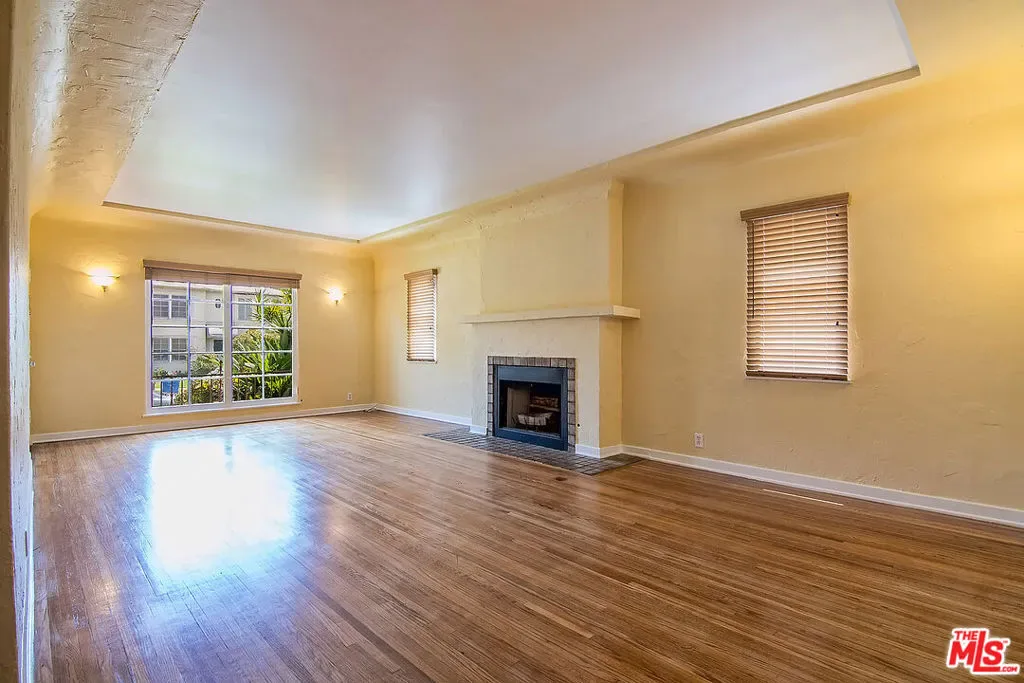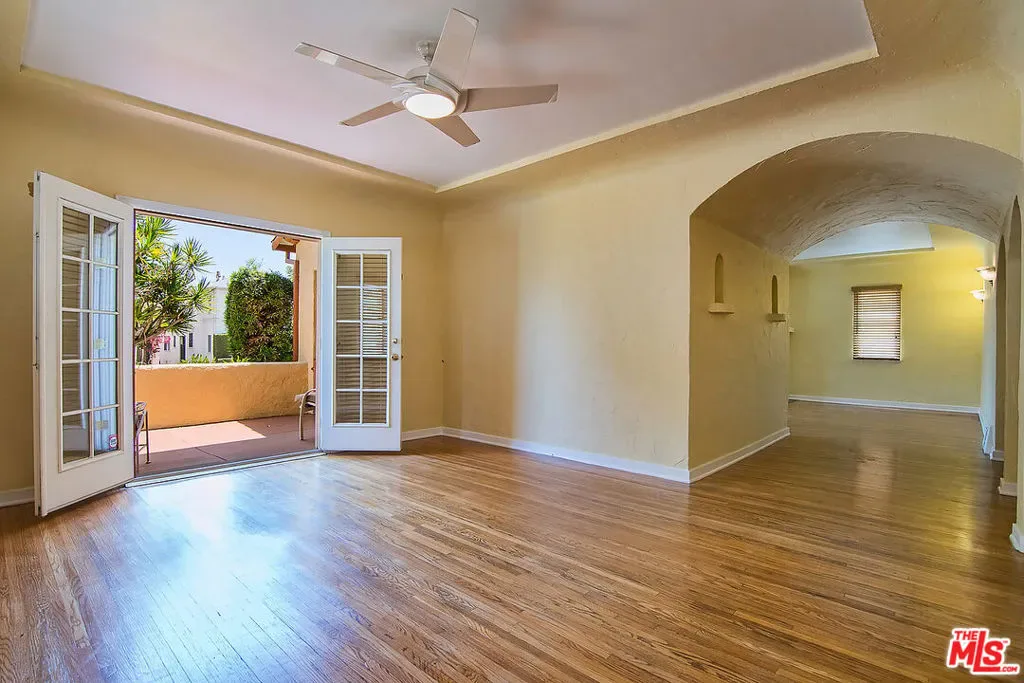 Charming, spacious 3-bedroom, 2-bathroom lower duplex unit on a beautiful tree-lined street in prime Miracle Mile. Character details include gleaming original hardwood floors, tray ceilings, and arched doorways. The kitchen features granite counters, a double stainless steel sink, and newer appliances, including a dishwasher, washer, and dryer. A separate laundry room, breakfast room, and dining room or den feature French doors that lead to a large private patio. Central heat and A/C, gas fireplace, walk-in closets. A rare find!
