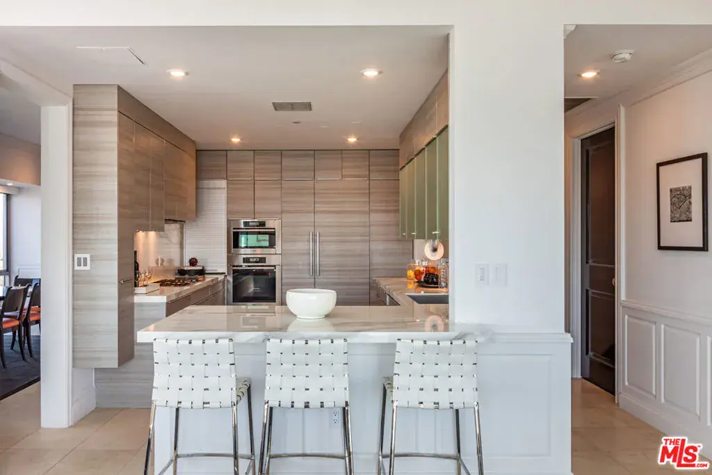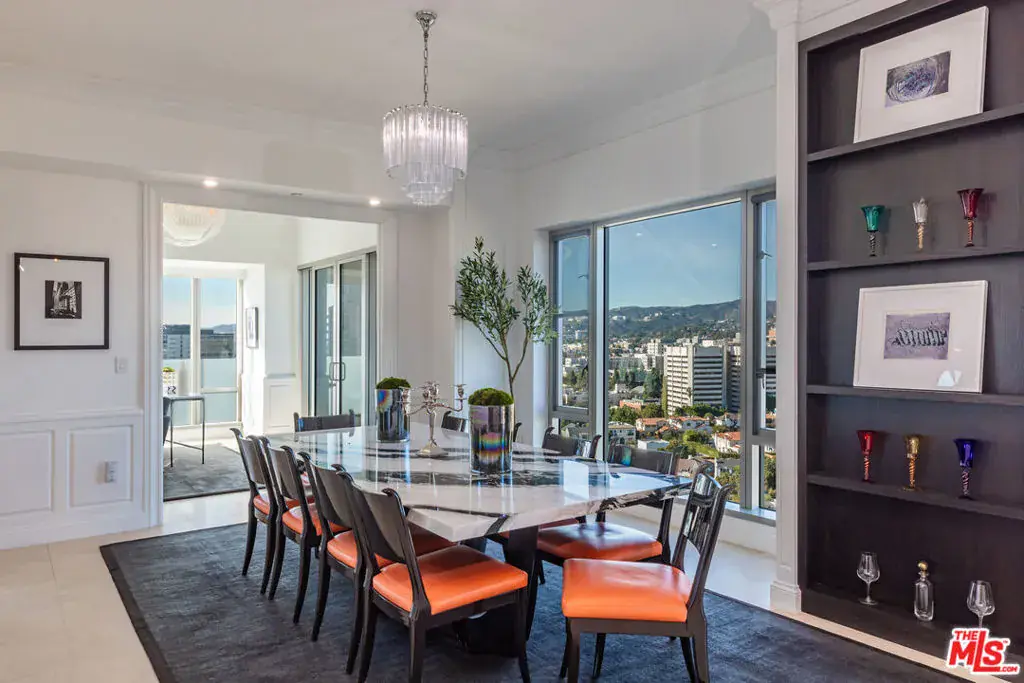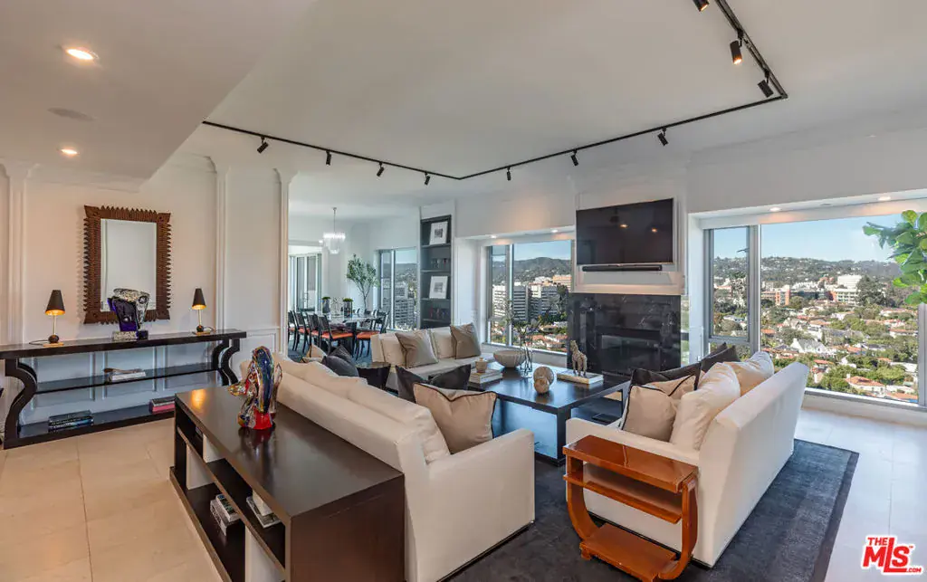 Crowning the skyline above the Wilshire Corridor, Residence 1702 at The Remington reflects the height of refined living. Set within one of Los Angeles’ most distinguished full-service towers, this reimagined North facing three-bedroom, three-and-a-half-bath residence merges contemporary design with timeless sophistication. A private elevator opens directly into a gracious foyer leading to a grand living room framed by floor-to-ceiling glass and panoramic views of Holmby Hills, Bel Air, and UCLA. A sculptural stone fireplace anchors the space, while the adjoining dining room and terrace create an effortless flow for entertaining. The west-facing chef’s kitchen features custom Poggenpohl cabinetry, professional-grade appliances, and a sunlit family room that captures the beauty of the western sky. The serene primary suite offers two expansive walk-in closets, a spa-inspired bath, and Venetian plaster walls that convey understated luxury. Two additional bedroom suites complete the thoughtfully designed floor plan. Spanning 3,531 square feet with two balconies, this residence showcases impeccable detailing and a seamless integration of form and function. Life at The Remington combines privacy, discretion, and five-star service. Residents enjoy 24-hour valet and concierge, a heated lap pool with sundeck and a state-of-the-art fitness center. Elegant gathering spaces include a library, fireside lounge, card room, and private salon with catering kitchen. A temperature-controlled wine locker, dedicated storage room, and three parking spaces enhance the offering. One of the few buildings in Los Angeles with direct elevator access to each residence, The Remington stands as a benchmark of architectural grace and urban serenity. Residence 1702 is a testament to elevated living, where craftsmanship, comfort, and panoramic beauty converge in perfect harmony.