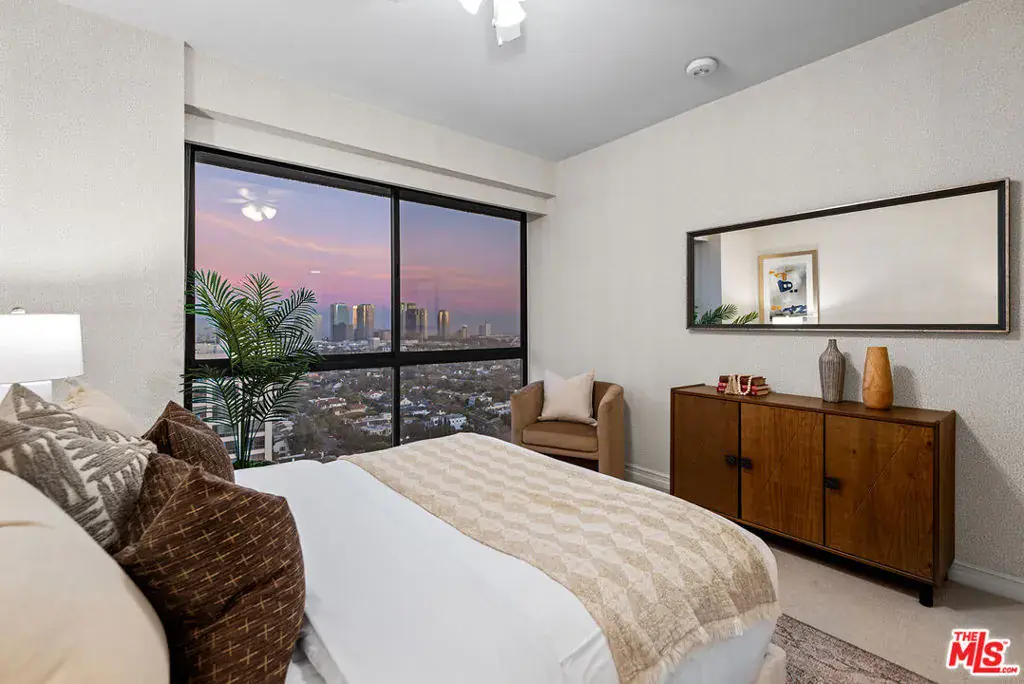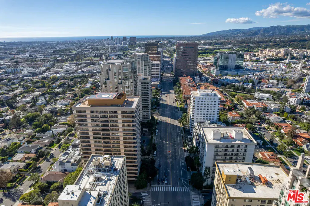 Rising high above the Wilshire Corridor at the coveted Westford on the 15th floor, this expansive 3 bedroom, 4 bathroom corner residence offers nearly 2,700 SQFT of refined living space paired with sweeping unobstructed panoramic views stretching from the Downtown LA skyline to the Pacific Ocean. Dramatic floor-to-ceiling windows frame the ever changing cityscape, while multiple balconies invite the outdoors in, effortlessly extending the living experience. The layout is both generous and thoughtfully designed, delivering a unique sense of privacy rarely found in high-rise living. The main living space flows effortlessly for both everyday living and elegant entertaining, offering an open floor plan anchored by a cozy fireplace that adds warmth and dimension as the city lights come alive at dusk. Spacious dining area and separate family room further enhance the home’s excellent functionality. A cook’s kitchen boasts granite countertops, an abundance of cabinetry, and a convenient breakfast area. At the end of the day, retreat to the primary suite, featuring a large walk-in closet with custom built-ins, a private balcony, and a well-appointed en-suite bathroom. Secondary bedrooms are generously sized and each enjoys its own en-suite bath. The Westford delivers a truly elevated full-service lifestyle with seamless lock-and-leave experience, featuring 24/7 concierge and security, valet parking with two designated side-by-side spaces, a fitness center, pool and spa, saunas, and an elegant resident social room. HOA dues include earthquake insurance, storage space, water, sewer, and WiFi with basic cable. Ideally situated just moments from UCLA, Westwood Village, Century City, and Beverly Hills, the location offers effortless proximity to world-class dining, shopping, cultural destinations, key city routes, and freeways. A rare Wilshire Corridor offering defined by scale, discretion, service, and commanding views.