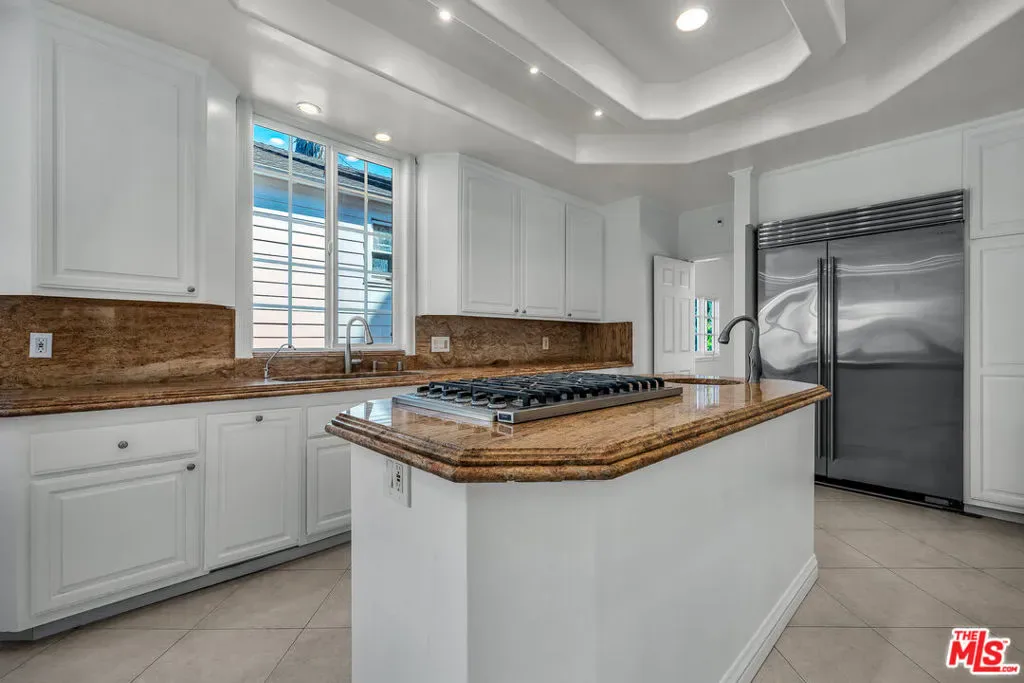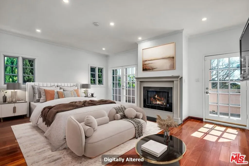 Nestled in the prestigious neighborhood of Westwood, this elegant Contemporary Mediterranean estate offers over 4,500 square feet of refined living space designed with a perfect balance of grand scale and soulful warmth. The journey begins in a breathtaking entry foyer where dramatic soaring ceilings, etched-glass double doors, and a grand chandelier set a sophisticated tone that carries throughout the home. Designed for both seamless entertaining and comfortable daily life, the formal living and dining areas flow effortlessly into an airy family room anchored by a timeless fireplace and custom built-ins, with French doors opening to patio and backyard. The expansive chef’s kitchen serves as the heart of the home, featuring granite countertops, a center island, and generous storage to accommodate any culinary endeavor. Upstairs, a sweeping staircase leads to t bedrooms, including spacious guest suites with walk-in closets and a luxurious primary suite that serves as a true sanctuary, complete with its own private balconies, an inviting fireplace, dual walk-in closets, and a spa-like bathroom featuring a soaking tub and a private sauna for ultimate relaxation. This residence is complemented by a dedicated laundry room and abundant storage, all situated in a prime central location just minutes from the world-class dining and shopping.