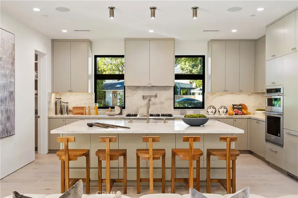 Welcome to 10840 Queensland Street, where refined modern design meets effortless California living. Situated on a coveted corner lot in the heart of Westside Village, this brand-new 4-bedroom, 5-bathroom residence has been thoughtfully crafted for both comfort and sophistication. A striking custom 10-foot entry door opens to 11-foot ceilings and an expansive open-concept floor plan that flows seamlessly from the interior to the outdoors. Oversized sliding doors lead to a private backyard featuring a trellis-covered patio, outdoor kitchen island, and a fire pit lounge, creating an entertainer’s dream and a true indoor-outdoor lifestyle. The primary suite is privately positioned on the second level and features a large balcony, a spa-inspired en-suite bathroom with soaking tub, and a custom walk-in closet. Each additional bedroom is generously sized with its own designer finishes. Additional highlights include solar panels, a security camera system, built-in speaker system, quartzite stone countertops throughout, and premium plumbing fixtures. Ideally located near top-rated schools, acclaimed dining, shopping, grocery stores, and neighborhood parks, this exceptional home offers the perfect balance of luxury, modern design, and everyday convenience.