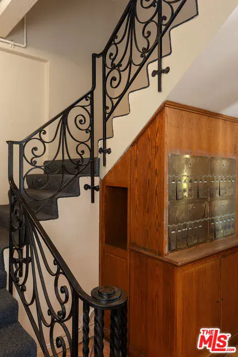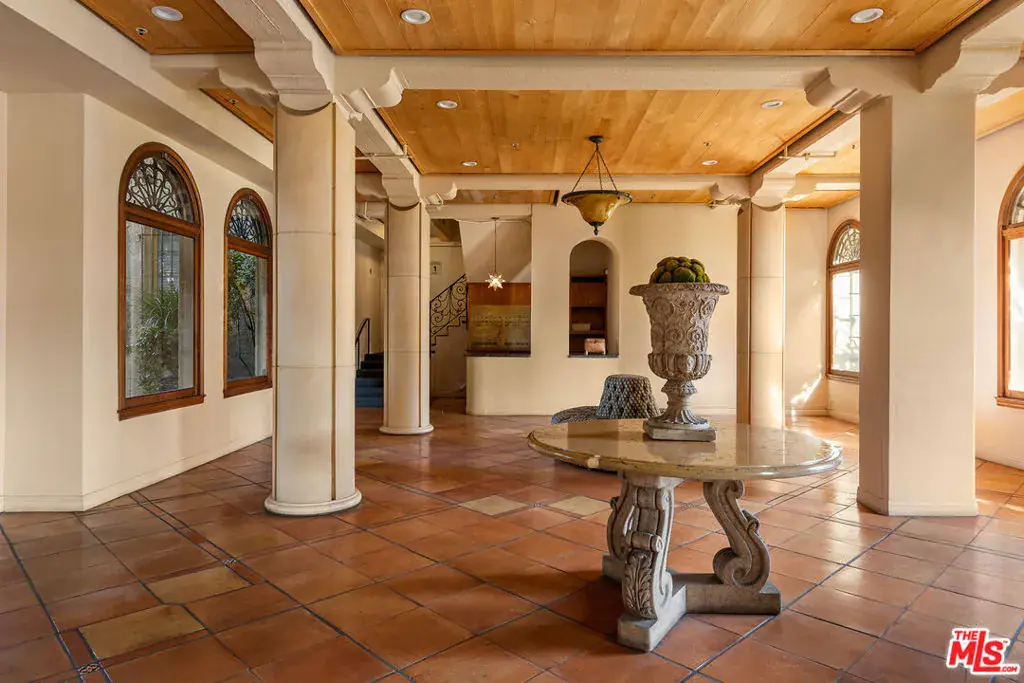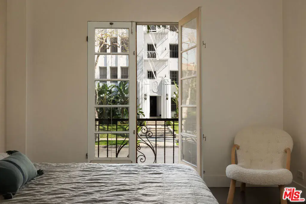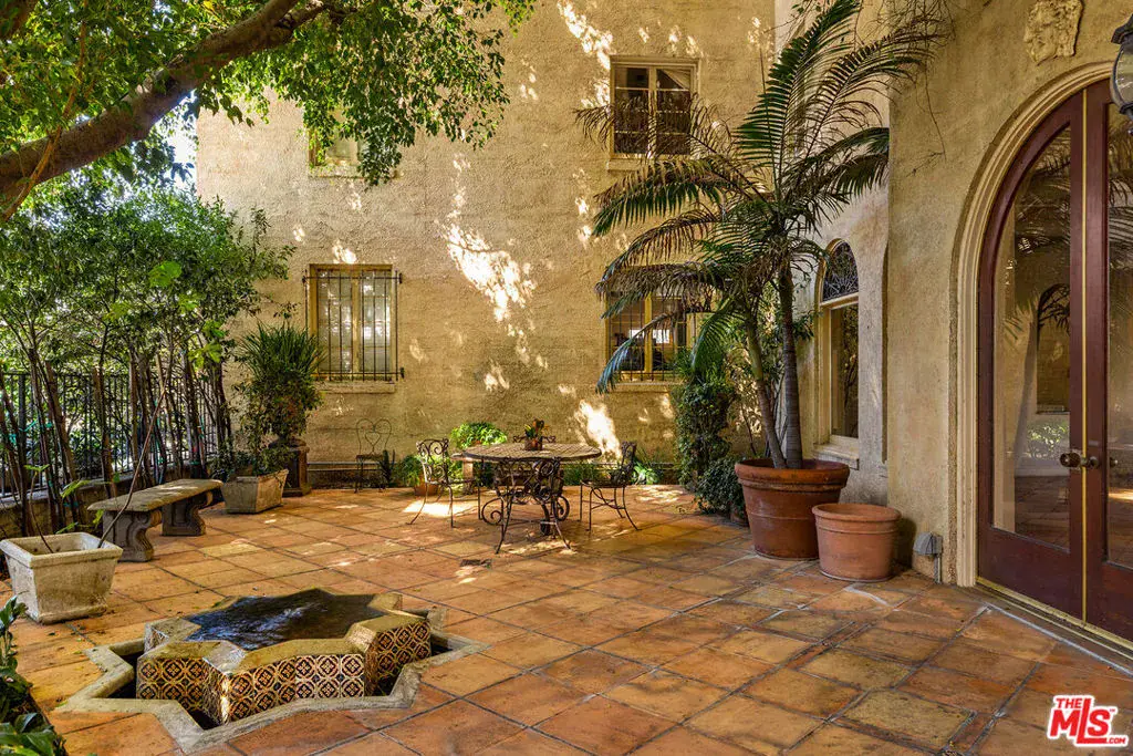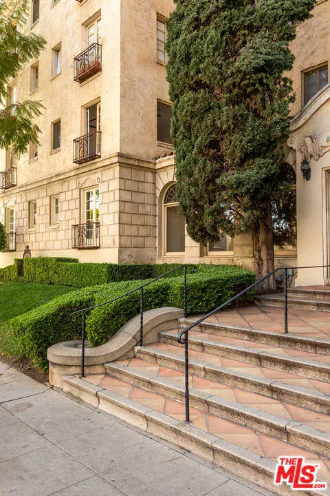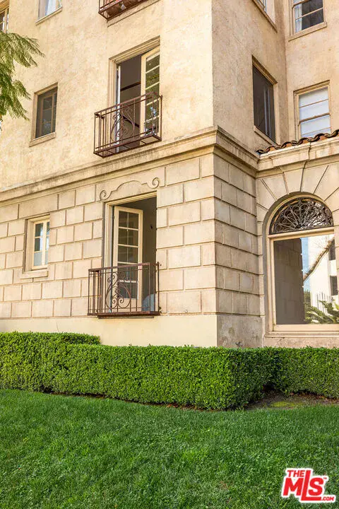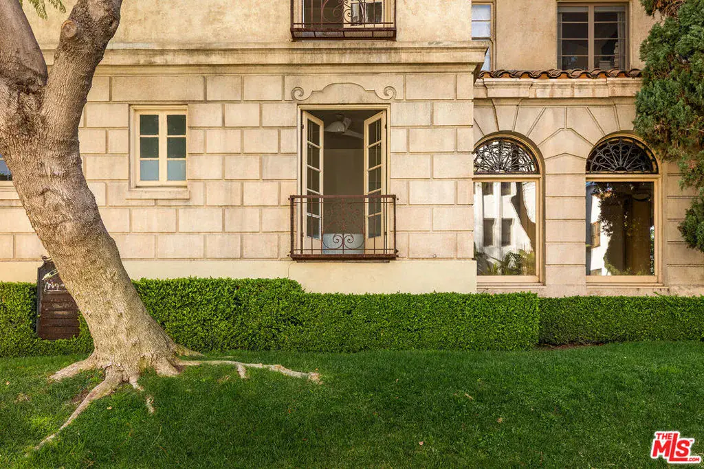 The Warwick Condominiums, 1928 with renovations in 1992. Designed in the Italian Beaux Arts style, this mid-rise complex of only 25 units is a contributing structure to Historic Places LA. Anchoring the tree-lined corridor of Sycamore Avenue at 1st street in Hancock Park, the Warwick is one of several historic apartment buildings in the neighborhood renown for their elegance and “old world” period details. The building’s dramatic features include a formal gated entry and large lobby, mailbox area, rear fountain courtyard with seating, wrought iron handrails and bronze elevator clock. Unit #102 underwent a renovation to include Poggenpohl kitchen cabinets with recessed lighting and Meile appliances. The French windows throughout the unit have custom shades and Juliet balconies, and there is a walk-in closet with a shelving system in the bedroom. Only 1 block east of La Brea, many of Los Angeles’ legacy shops and restaurants are just around the corner: American Rag, Maison Midi, M Cafe, Sugarfish, Sycamore Kitchen, and many other shops and restaurants are only a few blocks away. The building also includes laundry on every level, a fitness center, underground and guest parking.