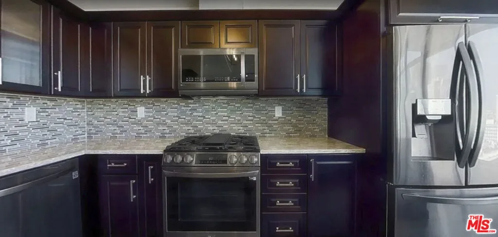 This heavily upgraded unit has Custom Italian kitchen cabinets, porcelain counter tops & custom island, new Bosch Appliances: oven, gas cook top, hood, microwave & dishwasher. Electro Lux Refrigerator, marble counter tops and tiled back splash. Brand new LG Washer & Dryer. This is a full service building, building features full service front desk that accepts food, packages and medicine deliveries 24 HOURS a day 7 Days a week. Walk score is 95 minutes from 7th Fig, Target, Whole Foods and LA Live.