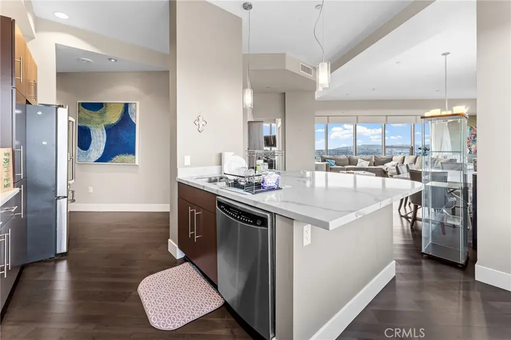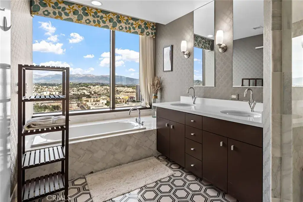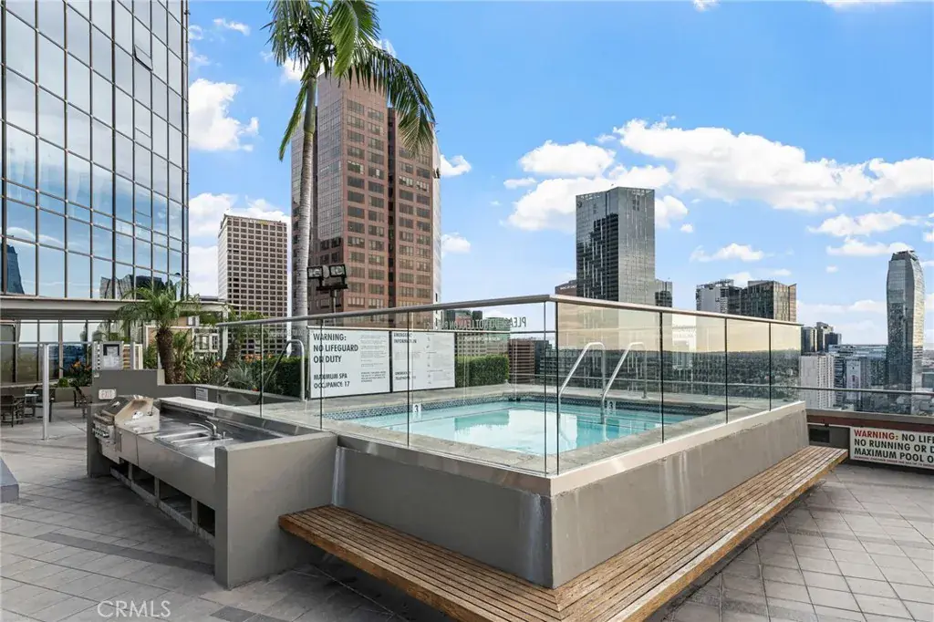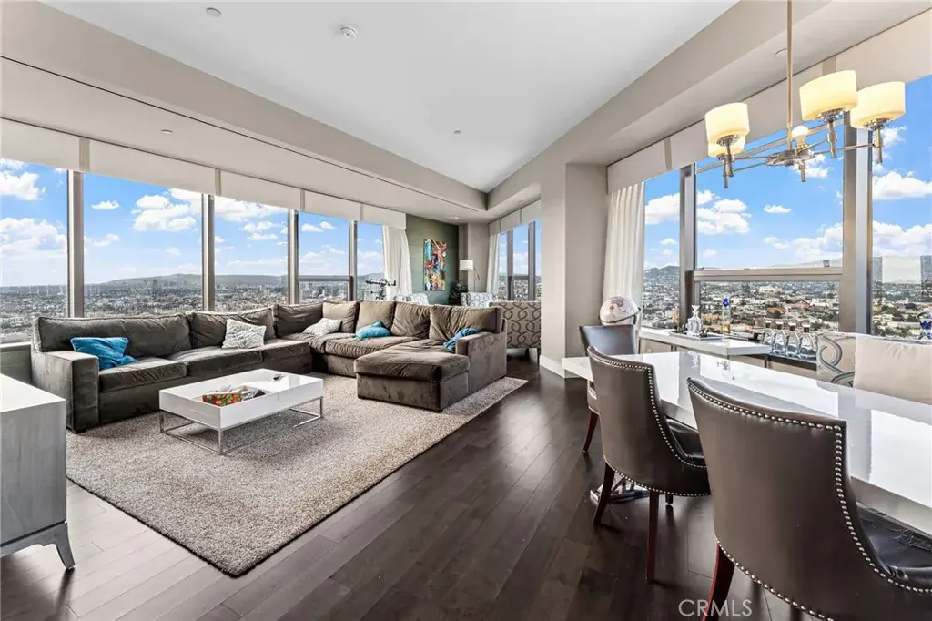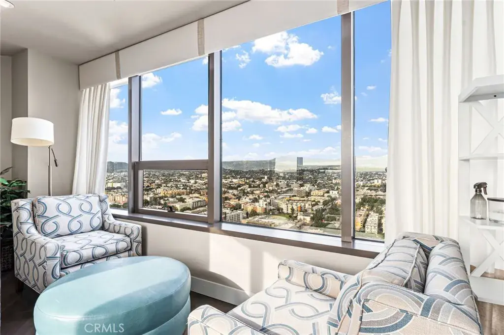 Reimagined by acclaimed interior designer Darci Goodman, this stunning corner residence defines elevated city living. Thoughtfully renovated with curated finishes and designer details throughout, the home showcases sweeping 270-degree views capturing the glittering Downtown LA skyline, the iconic Hollywood Sign, and stretching west to Santa Monica. Designed for both refined living and effortless entertaining, the open-concept layout features custom window treatments, bespoke wall finishes, and a state-of-the-art sound and audiovisual system that transforms the space into a private retreat above the city. An in-unit laundry adds everyday convenience to the home’s polished appeal. Residents enjoy access to an exceptional collection of resort-inspired amenities, including a show-stopping 17th-floor SkyDeck with a heated infinity pool, spa, cabanas, lounge beds, wet bar, BBQ grill, and fire pit cove, perfect for sunset gatherings. Additional amenities include a fully equipped fitness center, conference room, private theater/media room, 24-hour attended lobby, generous guest parking, and two assigned parking spaces. Located moments from premier dining, the Financial District, Crypto .com Arena, LA Live, 7th & Fig, The BLOC, and more, this residence places the best of Downtown LA right at your doorstep. All square footage, room dimensions, and lot size figures are approximate and have not been verified by the Seller or Broker. Brokers and agents do not guarantee the accuracy of property details, permits, or conditions. Buyers are advised to independently verify all information and conduct their own due diligence regarding the property’s condition and suitability.