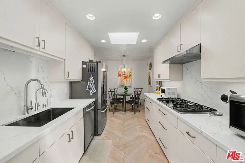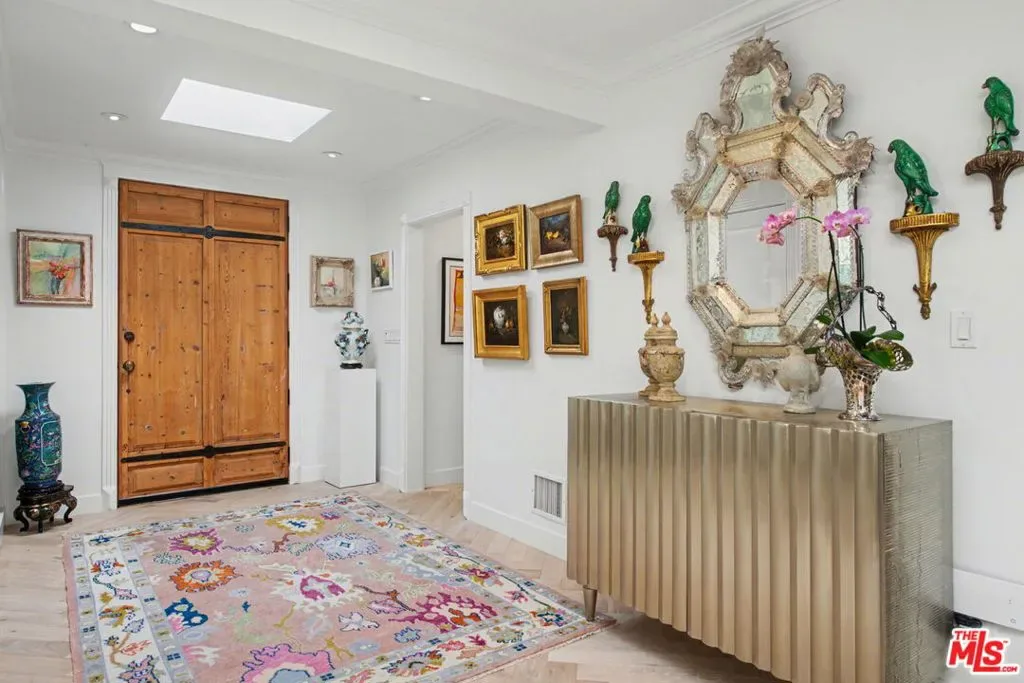 New look! New photos! New price! Please take note! Extensively and quite recently remodeled with exquisite taste and superior quality, this very special, light and bright one-story home harmoniously blends comfort and style and has been meticulously and painstakingly maintained. Its open and sensible floor plan begins at the formal foyer, leading to the sky-lit living room and dining area designed with the elegant entertainer in mind. This very expansive area, with its light-hued herringbone-patterned wood floors and two stone-clad fireplaces, opens easily to the backyard for seamless indoor-outdoor flow. The family room is warm and cozy with its wet bar and fireplace and opens to the fabulous outdoor living and dining room, complete with a barbecue area, outdoor fireplace and comfort heaters. The chef’s kitchen has a breakfast area, quartz countertops, stainless steel appliances and double ovens. There are four bedrooms in total. The primary suite, also opening to the backyard, is truly wonderful with its generous closet space, many built-ins, beautiful spa-like bath and sitting area. Adjacent are two spacious bedrooms sharing a tasteful hall bath. The fourth bedroom is located by the kitchen, perfect as a gym, nanny’s or housekeeper’s room. The backyard is nothing short of glorious, every inch professionally landscaped. A true paradise, there is natural beauty to behold everywhere, all amidst the soothing sounds of an artfully-crafted cascading waterfall. There’s also a separate multi-purpose art studio in the backyard, as well. Extensive updates, many of them quite recent, include central air and heat, metal doors and windows, many exquisitely-crafted built-ins, multiple skylights, recessed lighting, art-focused lighting, a separate generator connected also to the gas line, a Tesla car charging port, a new roof, a security system and so much more. The garage has extra storage and offers direct access into the house. Please ask the agents for a comprehensive list of updates. Inclusion in the very desirable public school districts which include Kenter Elementary School, Paul Revere Middle School and Palisades High School. All this, moments from the town center with all the shopping, dining and services that Brentwood offers.