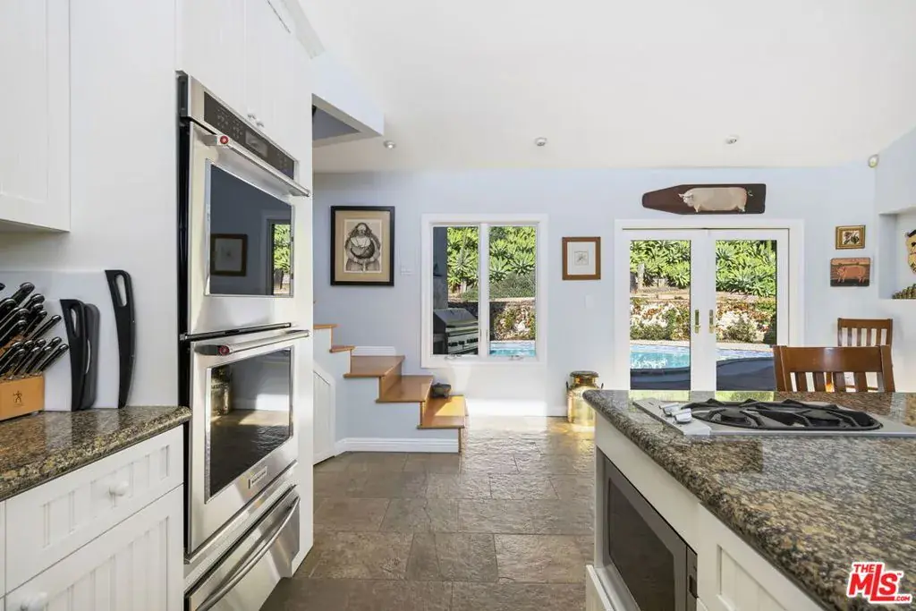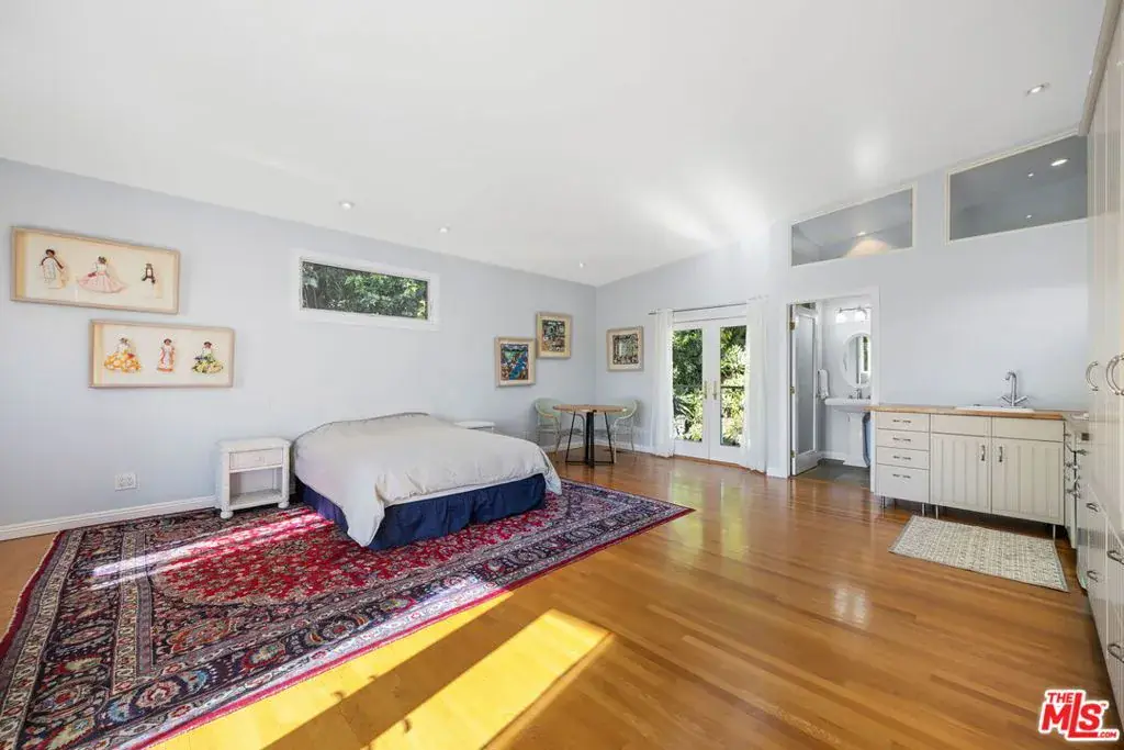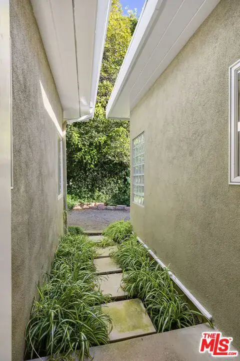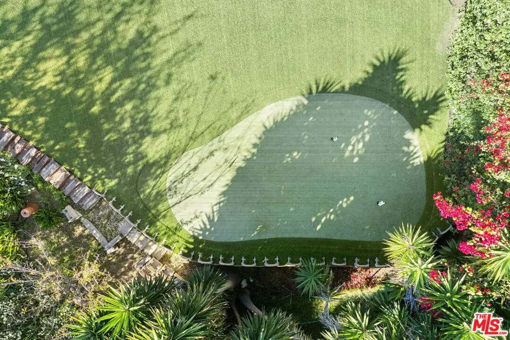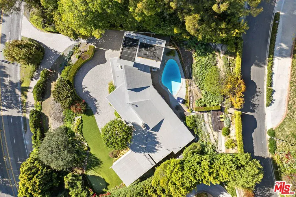 Lower Bel Air fully furnished 4 bed, 5 bath, 3,496 sq ft updated Mid-Century Modern home set privately above Sunset Boulevard. Surrounded by gardens, a solar-heated pool, putting green and multiple outdoor seating areas, the property offers layered views, including ocean outlooks from the second floor. Vaulted ceilings and high windows fill the main living spaces with natural light. The chef’s kitchen anchors the home with a grand granite island, gas range with griddle, double ovens, dual dishwashers and separate refrigerator and freezer, opening to the patio and pool terrace with built-in BBQ, covered dining and open-air spaces for entertaining. Living areas include a living room with fireplace, library/den with bar, TV/office area and formal dining room. The primary suite features custom built-ins, double sinks, walk-in shower, jetted tub and direct veranda access. Two additional bedrooms each include their own bathrooms, while a separate second-story suite offers a kitchenette, full bath, two balconies and a flexible room ideal for guests, gym or office. Additional features include a laundry room, guest bath with steam shower and direct-entry garage with storage and golf practice bay. Terraced gardens, pathways and elevated decks provide tranquil vantage points, creating a retreat-like environment moments from Brentwood Village, the Country Mart, dining and canyon access. This residence combines ease of living with the privacy and presence of a secluded compound in one of Lower Bel Air’s most desirable neighborhoods.