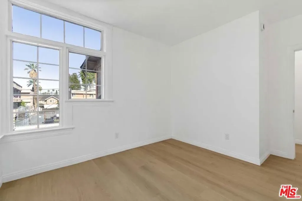 Completely Remodeled 2BD/1BA Bright Upper Unit with 2 Parking Spaces & Security! Ideally situated between 11th St and 12th St in a quiet, low-traffic neighborhood (15 mph residential zone). This second-floor unit features an abundance of natural light with an east-facing orientation and pleasant views. The unit has been fully renovated with brand-new upgrades throughout, including brand new modern kitchen appliances with new cabinets including pantry, granite countertop, refrigerator, microwave, and gas stove, waterproof flooring throughout, new dual-pane windows, and fresh interior paint. The property sits on a large 8,570 sq ft lot and offers excellent amenities: 2 parking spaces included, gated entry with automatic gate, CCTV security system, and additional guest parking available. Just minutes from DTLA, Hancock Park, and Larchmont Village, this property offers easy access to dining, shopping, and public transportation. The convenient location puts you close to Downtown Los Angeles, USC, LA Live, many restaurants and shops, and within easy reach of public transit and freeways. Available for immediate move-in. Don’t miss your chance to live in one of L.A.’s most vibrant and central neighborhoods! Virtual staging photos showcase the kitchen, living room, and primary bedroom.