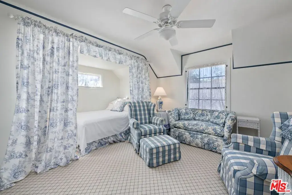 AS FOUND IN THE SHOWINGS INSTRUCTIONS SECTION BELOW, PLEASE MAKE ALL SHOWING REQUESTS BY EMAILING SHOWINGS@LARRYYOUNGASSOCIATES.COM. Sunset Boulevard’s much admired Sycamore Bend is now available for purchase for the first time in over sixty-three years. Shingle-clad and built originally in 1941, its infinitely charming traditional architectural elements have been lovingly cared for and carefully preserved over the years. Impressively set back from the street up a gentle, grassy knoll and framed by a majestic Sycamore, this wonderful home is surrounded by full mature landscaping and accessed easily by a convenient circular driveway. A welcoming formal foyer leads to the sunny living room with its crown, dentil moldings, stately fireplace, bay window and French doors leading out to the backyard. Peg-and-groove hardwood floors grace much of the first floor. The charming den, with its beamed ceilings, brick fireplace and built-in cabinets also has a wet-bar with a soda fountain. It also leads out to the backyard. The formal dining room, with its wainscoting, crown moldings and bay window has room for two tables. The country kitchen has wood paneled cabinetry, some with glass-faced doors, original period hinges, wood beamed ceiling, stainless steel appliances and a very sweet breakfast nook. A very cozy, yet spacious, downstairs ensuite bedroom has beamed ceilings, paneled walls and its own bath. A service area/laundry room and a powder bath complete the first floor. A lovely staircase leads to the upstairs landing and to three terrific bedrooms. The primary, with its tall pitched and beamed ceilings, has a romantic fireplace, a large bath with a separate tub and shower and an unusual amount of closet space for its vintage. It also has a very nice sitting room, perfect as an office, small gym or even as a nursery. The upper terrace, taking in peaceful views of the backyard, can be accessed from here. Two additional, cheerful, amply-sized family bedrooms share a full bath. The peaceful backyard is maturely wooded and has a large, covered porch for easy al fresco entertaining. There’s also a wide expanse of grass for kids to play upon. Added much later but in careful keeping with the style of the main house, a guest house also graces this special property. It features a full kitchen with a breakfast bar, laundry facilities and a very comfortable living area with tall, pitched and beamed ceilings, a bay window with a window seat, plenty of built-ins, an open bedroom nook and a loft, perfect for use as an office or as a second sleeping area. In the main house, an elevator effortlessly accesses all the way up from the driveway level to the first and second floors. There’s a two-car garage and plenty of off-street parking in the circular driveway including a covered carport for the Guest Unit. There is extensive storage space in both the attic and in the cellar. Inclusion in the Warner Avenue Elementary School district. All this, moments from UCLA and from Westwood, Brentwood, Century City and Beverly Hills and all the fine shopping and dining each area affords. Please ask listing agent about quoted square footage. Although neither Broker nor any of its Agents nor Seller guarantee the accuracy here, according to an appraiser’s measurement (please see attached floor plan in photos section of the listing), the Main House measures 3,257 square feet and the Guest Apartment measures 679 square feet for a total of 3,936 square feet. See agent about exclusions, please.