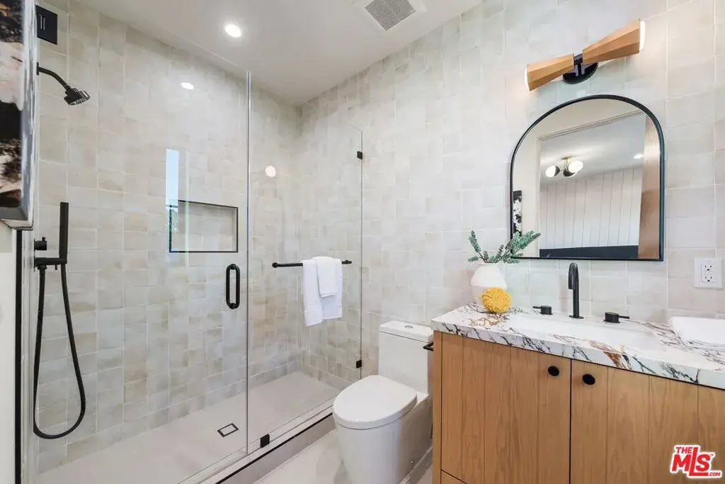 Welcome to this stunning, organic, contemporary modern, new construction in the heart of Westdale Trousdale/ Mar Vista. Thoughtfully crafted with the highest quality materials and sophisticated styling, this highly sought after flowing open floor plan features exemplary finishes, custom cabinetry, and seamless attention to detail, setting it in a class of unparalleled luxury and design. Downstairs, you’ll find a private office, mud room, powder room with travertine accents, and an expansive living and dining area anchored by a sleek fireplace and custom wood elements. The chef’s kitchen is a culinary dream, featuring top of the line appliances and walk-in pantry. Distinctive to the home’s cutting edge design elements, Casement windows flood the space with natural light, with a full wall of retractable glass seamlessly creating a blend of indoor and outdoor living. The large private backyard has it all, including mature trees, grass area, patio, pool, and spa with waterfall, perfect for outdoor entertaining. The ADU offers incredible flexibility, complete with its own kitchen, bath, and a studio-style layout for sleeping and office use. A loft lounge meets you at the top of the stairs followed by three en-suite bedrooms, plus the primary suite. The primary suite, generous in size is nothing short of impressive, with vaulted ceilings, custom oak finishes, a spa-like bathroom with freestanding tub and triple-head shower, and a totally “custom organized” walk-in closet. Additional highlights include wide plank floors, 10-foot ceilings, rich wood accents, wall and ceiling treatments, CAT-6 prewiring, and abundant storage throughout. With modern riffed white oak exterior accents and a custom stone driveway, this home caters to today’s uncompromising lifestyle without exception.
