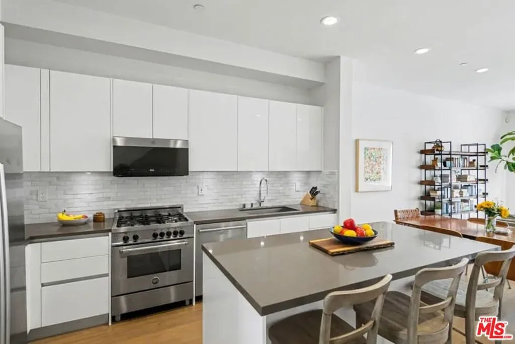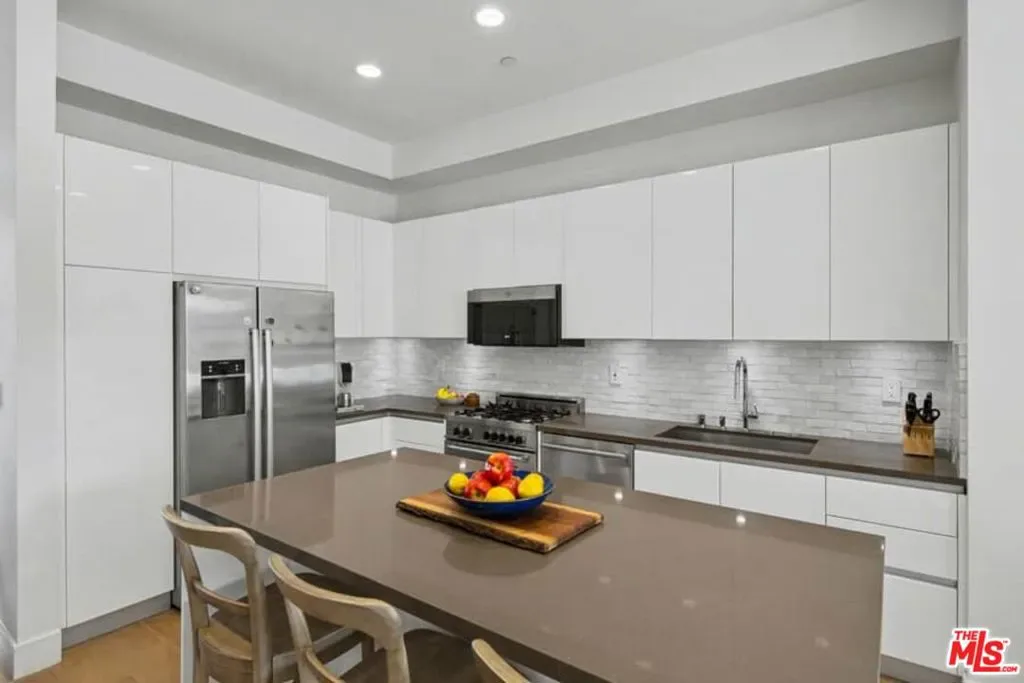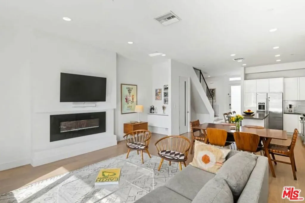 Rare Find in Mar Vista | National Modern Living Discover this exceptional opportunity in the highly sought-after National Modern Living community – a private collection of just 18 light-filled and forward-thinking townhomes. Located in the heart of Mar Vista, the home offers outstanding walkability to groceries, shopping, top-rated restaurants, and coffee shops. Positioned in the rear of the building, the residence provides added privacy, tranquility and peaceful living. Inside, enjoy two spacious bedrooms, each with its own en-suite bath, plus a generous family room featuring a fireplace and dramatic high ceilings. The gourmet, high-end kitchen opens seamlessly to the living and dining areas, creating an effortless flow perfect for entertaining and everyday living. Step outside onto your private patio, ideal for enjoying Southern California year-round. Smart home features include multi-zoned Nest thermostats, a Yale smart lock for keyless entry, and Google doorbell for enhanced security and convenience. Residents enjoy premium building amenities, including secure underground gated parking with two assigned spaces complete with personal EV charging, a clean and well-lit lobby entrance from the garage, a fully equipped fitness center, and large secure personal storage for each unit. Proudly located in the acclaimed Mar Vista Elementary School District, this modern gem delivers the perfect blend of luxury, convenience, and community.