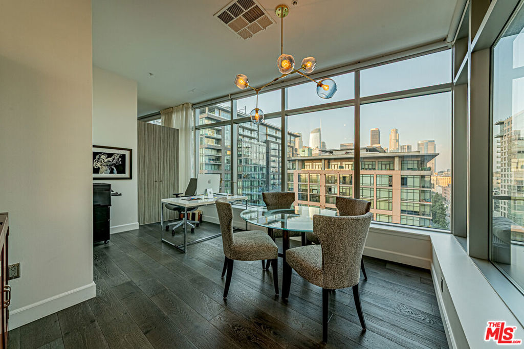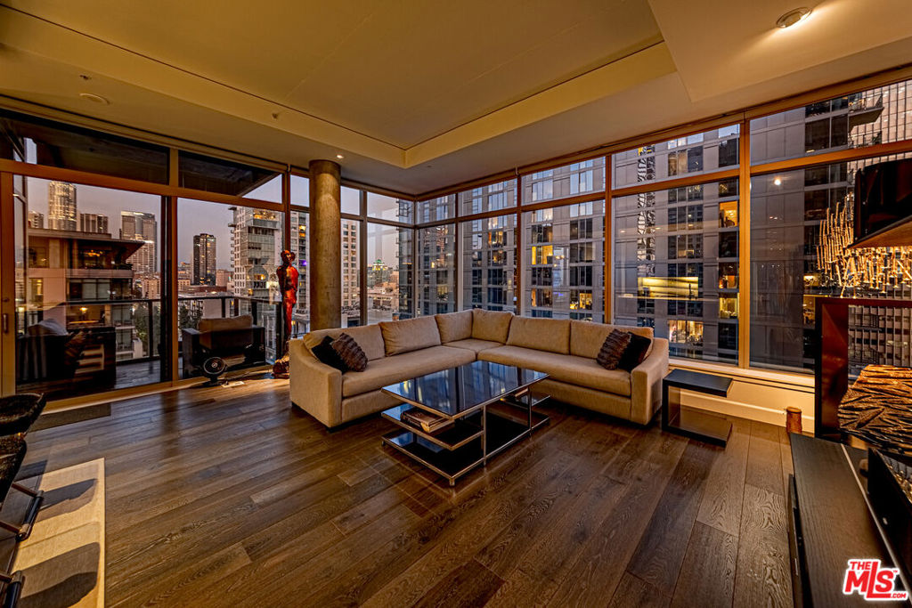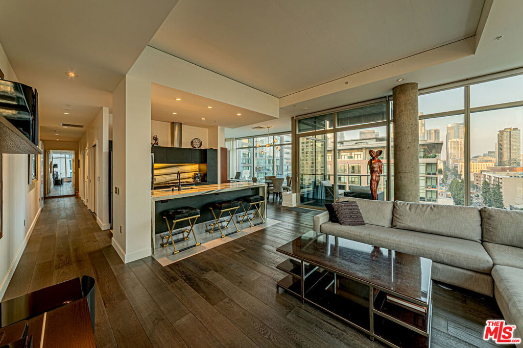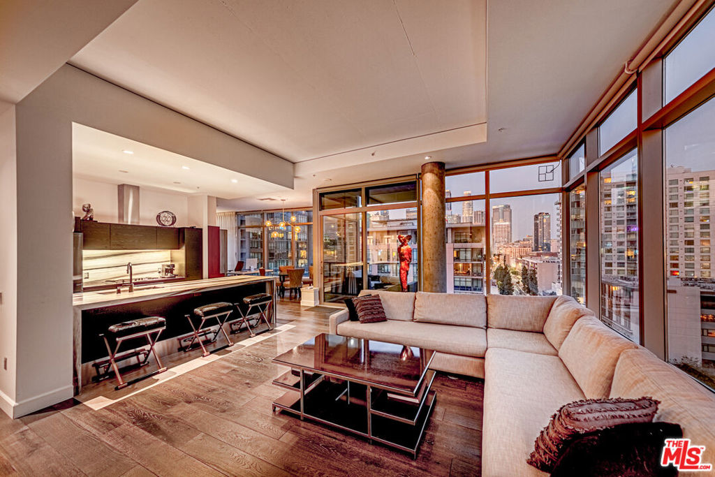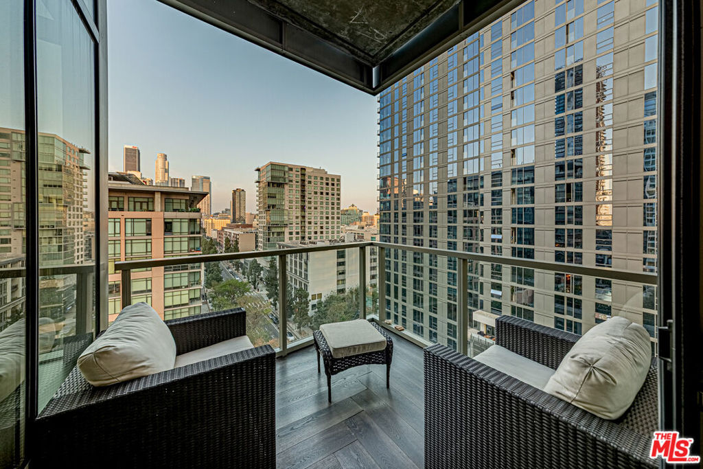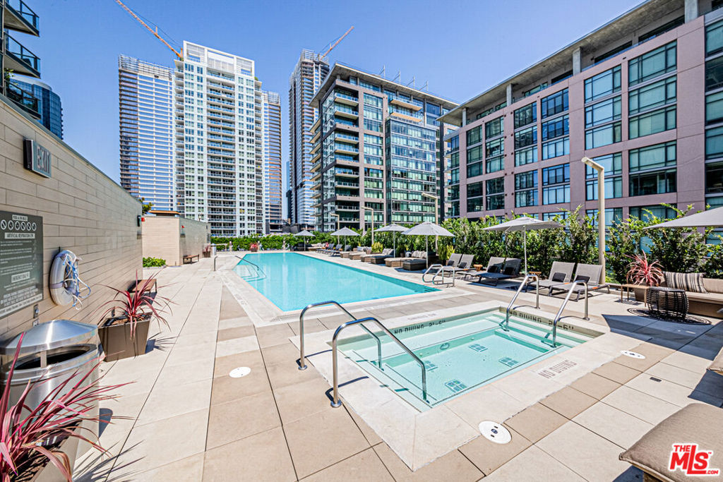 Experience elevated urban living in this beautifully remodeled, contemporary NE corner residence at EVO, featuring 24/7 security and full-service concierge. This premium unit is the largest one-bedroom home in the building, offering an expansive layout with floor-to-ceiling windows that frame breathtaking DTLA skyline views. Located on a highly desirable level, the home boasts soaring ceilings, a feature exclusive to the 13th floor and penthouse residences enhancing light and space throughout. The residence includes a spacious one-bedroom layout with an additional half bath for comfort and functionality, wide-plank engineered oak hardwood flooring, a private patio overlooking the resort-style pool and lush landscaping, an EV charger in the parking space, and a dedicated storage unit included with the sale. EVO offers residents an exceptional array of amenities, including a state-of-the-art fitness center, a 24th-floor clubhouse with full kitchen, a 6th-floor pool and spa with BBQ areas, and an outdoor lounge with kitchen and TVs. Ideally located, EVO is steps from major banks, the 7th & Figueroa Metro Station, South Park Commons, Grand Hope Park, South Park Pharmacy & Grocery, Whole Foods, Starbucks, Prank Bar, Mastro’s, the stylish Proper and Hoxton Hotels, and premier entertainment destinations including Crypto.com Arena, L.A. Live, Regal 4D Theaters, and more offering the perfect combination of luxury, convenience, and vibrant city living.