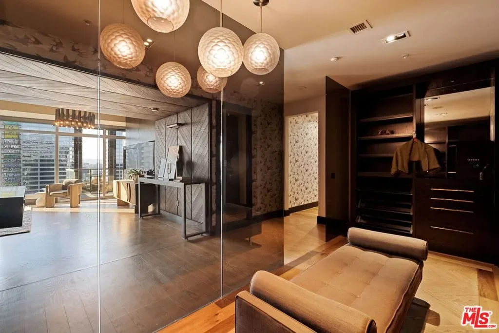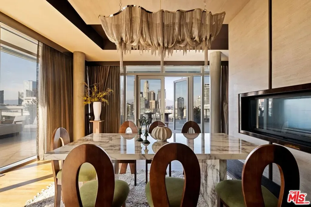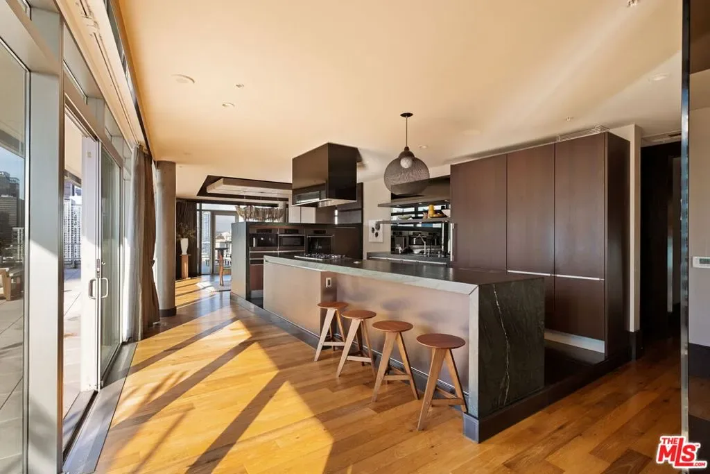 The Penthouse Residence at the Evo – the most refined offering in downtown Los Angeles. Designed and curated by Hawk and Co. for the discerning palate; suspended ceilings and foyer of hand-troweled, Venetian plaster, chevron inlaid flooring, dual sided Fireplace, automated linen drapery, Poggenpohl cabinetry and Miele appliances. Each room is framed in floor to ceiling sliders that open to the downtown skyline. The home’s lighting, shades, music and security are navigated with Control 4 smart home technology. 3 bedrooms, 4 bathrooms and +3,600 sq. ft. of indoor living space, perched on the 21st floor. One of the largest rooftop balconies in downtown, measuring over 2,500 sq. ft, puts the total living space at over 6,000 sq. ft. The home is scaled to be intimate enough for 2 – or expansive enough to entertain 200. Located in the heart of South Park, with easy access to the Crypto.com Arena, LA Live, the Orpheum, Bottega Louie, Whole Foods, and the finest eateries in the city. One block away, catch the Metro to Santa Monica, Hollywood or to Union Station with access to the entire coastline. The building has 24 hour security and concierge service, a rooftop pool, fitness center, some of the lowest HOA dues downtown and 3 side-by-side parking spaces on the ground floor (a rarity), which can be rented out to other residents for a monthly income, if desired. One of the most unique residences in all of downtown, with an attention to finish and sophistication that is unrivaled. Proximity and privacy – the city is yours.