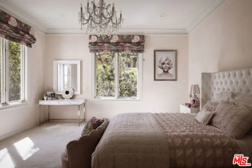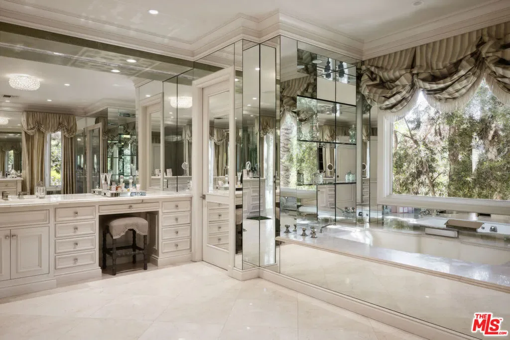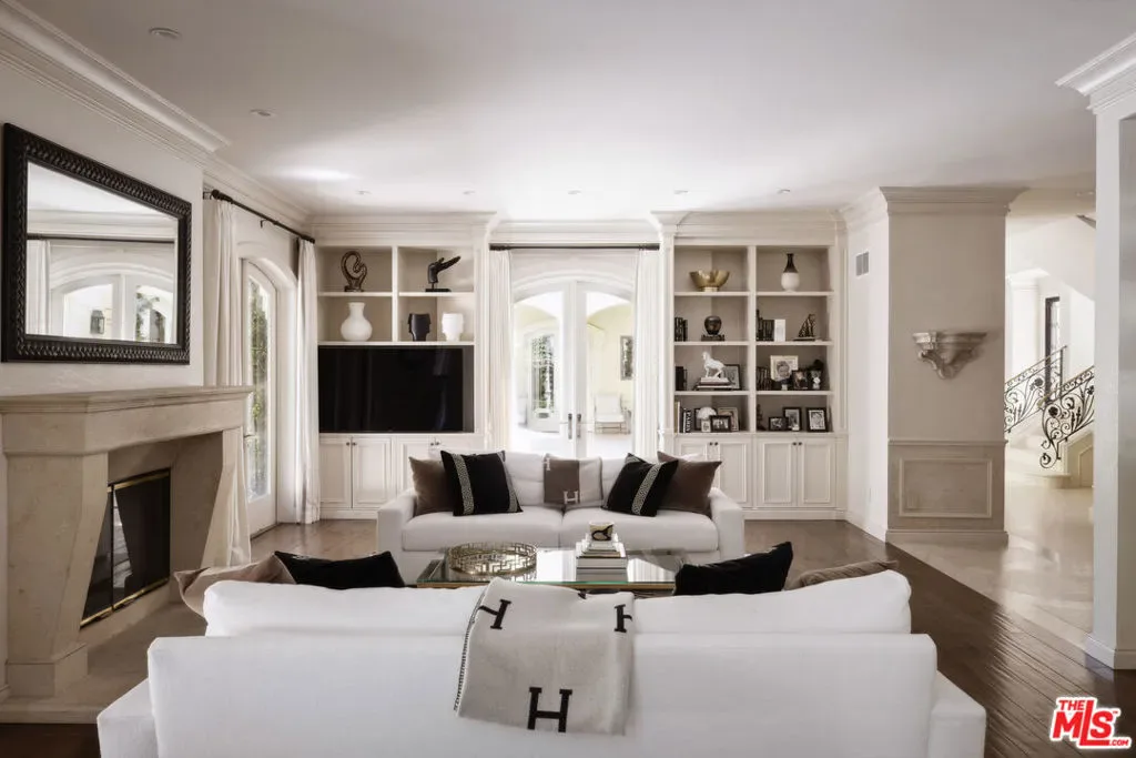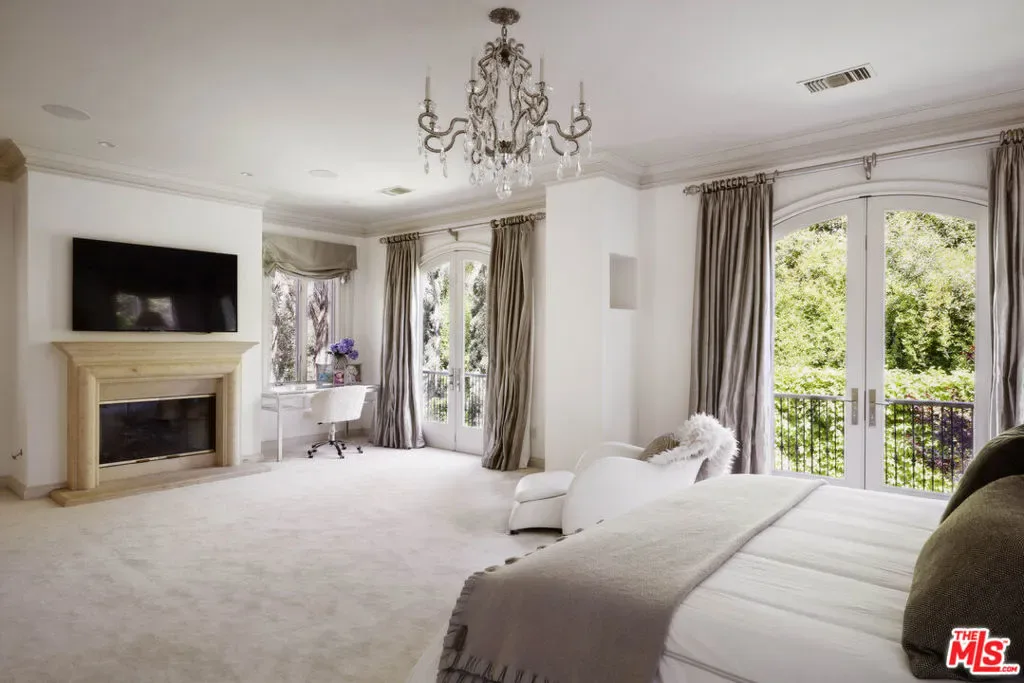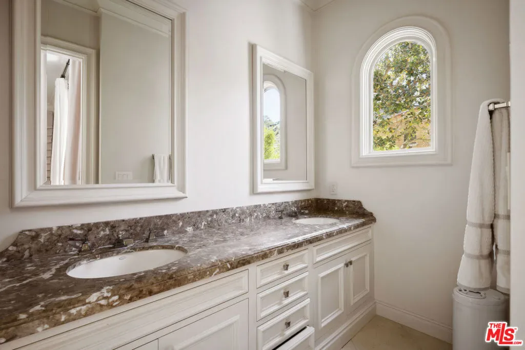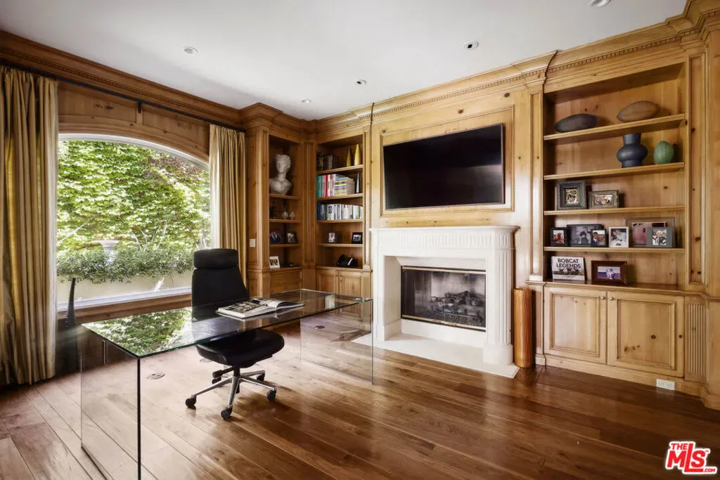 Set behind gates in prime Bel Air, this stunning custom Mediterranean estate blends timeless elegance with modern comfort. Grand in scale yet warm in design, the home offers formal and informal living spaces lined with French doors that open to lush, private grounds ideal for entertaining and everyday living. The main level features an elegant living room with fireplace, great room with wet bar, paneled library, maid’s quarters, formal dining room, and a gourmet chef’s kitchen with top-tier appliances. Upstairs includes a media room and four ensuite bedrooms, including a luxurious primary suite with sitting area, fireplace, showroom closets, and marble bath. The resort-like setting is surrounded by mature trees and includes manicured lawns, a large pool and spa, dining pergola with outdoor fireplace and dog run. Complete with Sonos sound and timeless detailing throughout, this estate offers privacy, scale, and enduring elegance in one of L.A.’s most coveted neighborhoods.