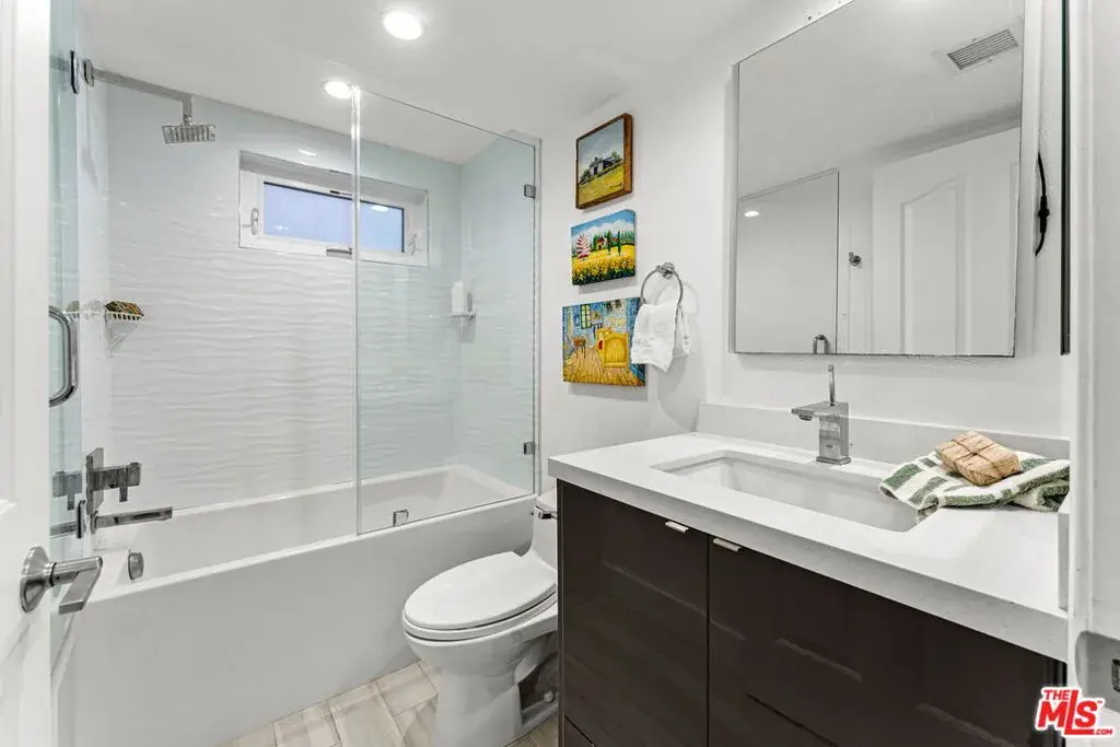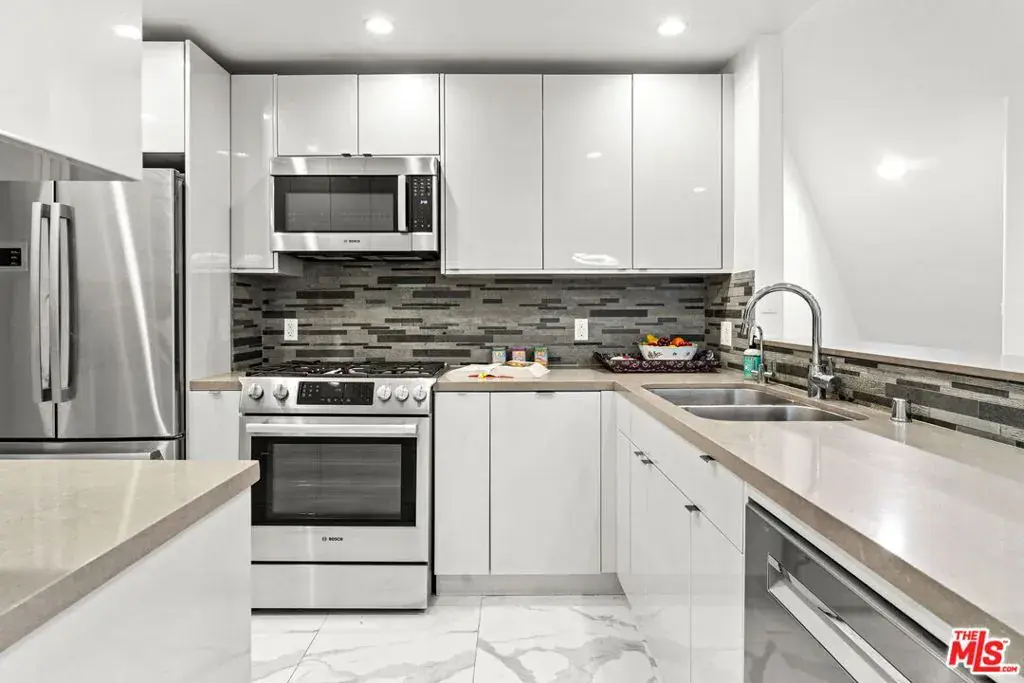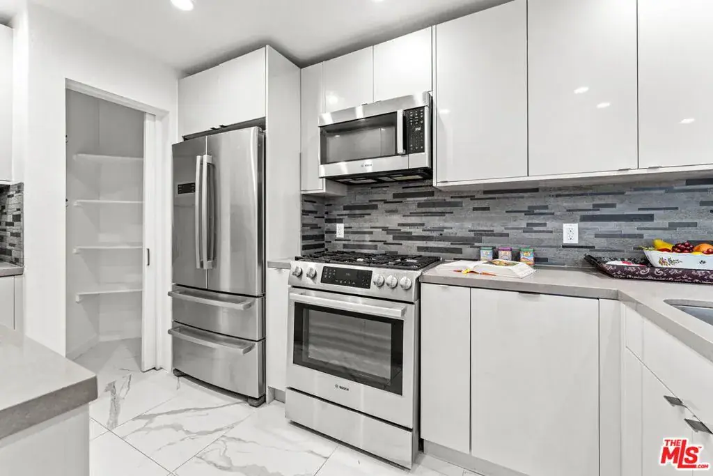 Experience the best of Brentwood living in this beautifully updated tri-level corner townhome. With approx. 1,600 sq.ft. plus a bonus room ideal for a home office or gym.Enjoy direct entry to a private 1-car garage plus 2 additional secured parking spaces, an open-concept floorplan with great natural light, and stylish finishes throughout, including tile and engineered hardwood flooring, recessed lighting, and built-in speakers. Brand new water heater. The remodeled kitchen features Bosch stainless steel appliances, Caesarstone countertops, a breakfast bar, and ample pantry/storage space. Both bedrooms are generously sized with en-suite bathrooms, and the living room and primary suite each offer a granite fireplace for added warmth and charm.All just moments from UCLA, top Brentwood shops, markets, restaurants, cafes, and convenient freeway access.