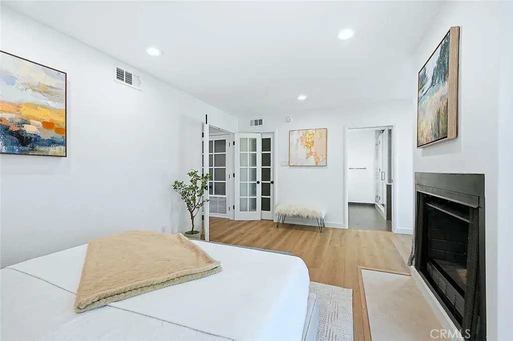 Welcome to your serene retreat in the heart of Brentwood—where modern comfort meets tranquil, tree-filled views. This exceptional condo is bathed in natural light, with soaring high ceilings and expansive windows that frame lush greenery from nearly every angle. Designed for both everyday living and effortless entertaining, the open-concept floor plan flows seamlessly from the spacious living room to the dining area and beautifully remodeled kitchen. The living room is a true showpiece, featuring a cozy fireplace and direct access to one of five private balconies—perfect for morning coffee or evening relaxation surrounded by peaceful treetop vistas. The fully remodeled kitchen boasts new stainless steel appliances, sleek finishes, and abundant storage, making it as functional as it is stylish. Throughout the home, new water-resistant vinyl flooring adds warmth, durability, and contemporary appeal. Offering two luxurious primary suites, this residence provides ideal flexibility for guests, multigenerational living, or a dedicated home office. Both suites are generously sized, and the main primary retreat includes its own fireplace and balcony access—creating a private sanctuary with spa-like ambiance. With five total balconies, indoor-outdoor living is truly elevated. Enjoy fresh air and greenery from multiple vantage points, all while benefiting from the privacy of being attached to only one neighboring unit. Additional highlights include side-by-side parking, in-unit laundry, and ample storage—delivering everyday convenience in a prime location. Tucked away on a quiet, tree-lined street yet moments from Brentwood’s premier dining, shopping, and cafes, this light-filled residence offers the perfect blend of sophistication, comfort, and natural beauty.