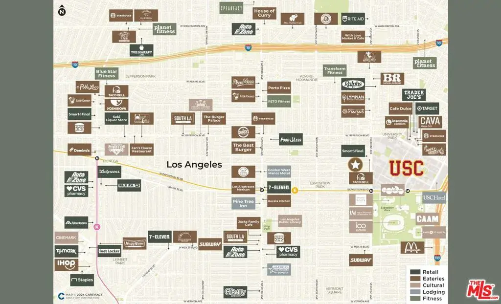 1168-1180 W. 36thPl., a prime student housing opportunity one-half block west of the University of Southern California (USC) in Los Angeles. Built in 2015 and designed specifically for student housing, the asset is comprised of 6 freestanding duplexes (12 units in total), each with 3 bedrooms and three bathrooms for a total of 36 bedrooms. Each unit features its own secure garage, kitchen/living area on the second floor and in-unit washer and dryer. The buildings are separately metered for all utilities including water and offer a gated perimeter for tenant security. The USC student housing market is comprised of mid-sized apartments located in adjacent low density residential neighborhoods along with institutional-sized housing along commercial corridors like Figueroa and Vermont Ave. 1168-1180 W.36th Pl. boasts clean, safe, modern living just one-half block west of campus and walkable to the Lucas Museum, Exposition Park and the LA Memorial Coliseum. The asset is also just blocks from the Expo/Vermont Metro Line offering express transit from Downtown LA to Santa Monica Beach and everything in between. The immediate area is a lively mix of student housing, residential streets, and campus-related amenities. It is a very walkable neighborhood with a high Walk Score, making it easy to get around on foot to nearby amenities and attractions. General area amenities include a variety of restaurants, cafes, and markets that serve the student population. The location offers easy access to the numerous cultural and recreational highlights within Exposition Park, including the Natural History Museum of Los Angeles County, the California Science Center, and the Exposition Park Rose Garden. The area also benefits from excellent public transit with nearby Metro stations, further connecting the neighborhood to the rest of Los Angeles.