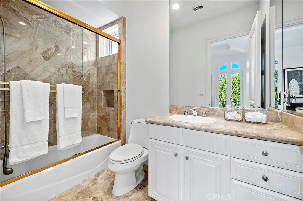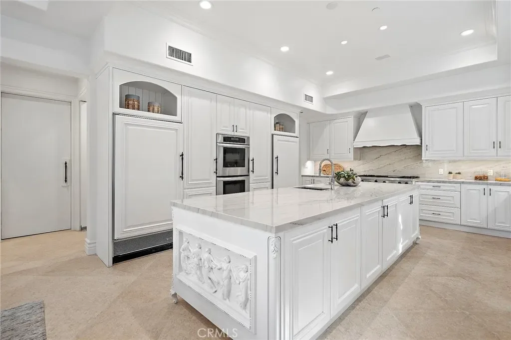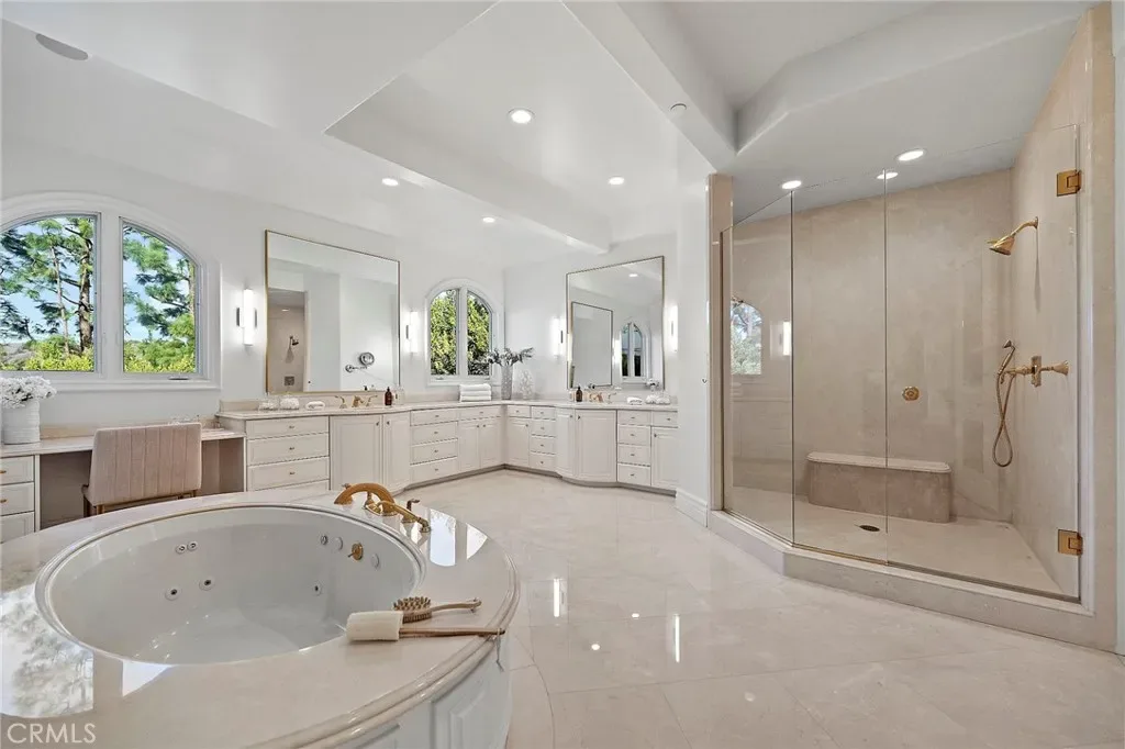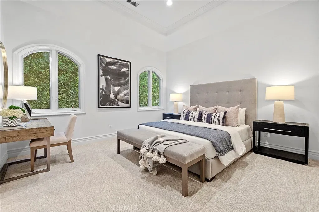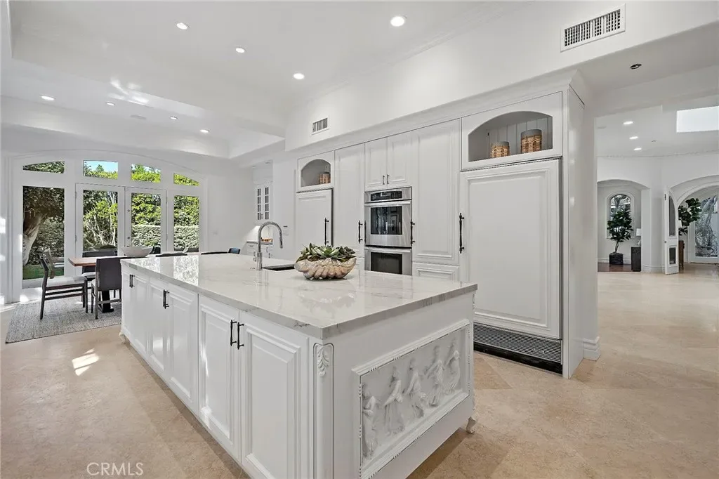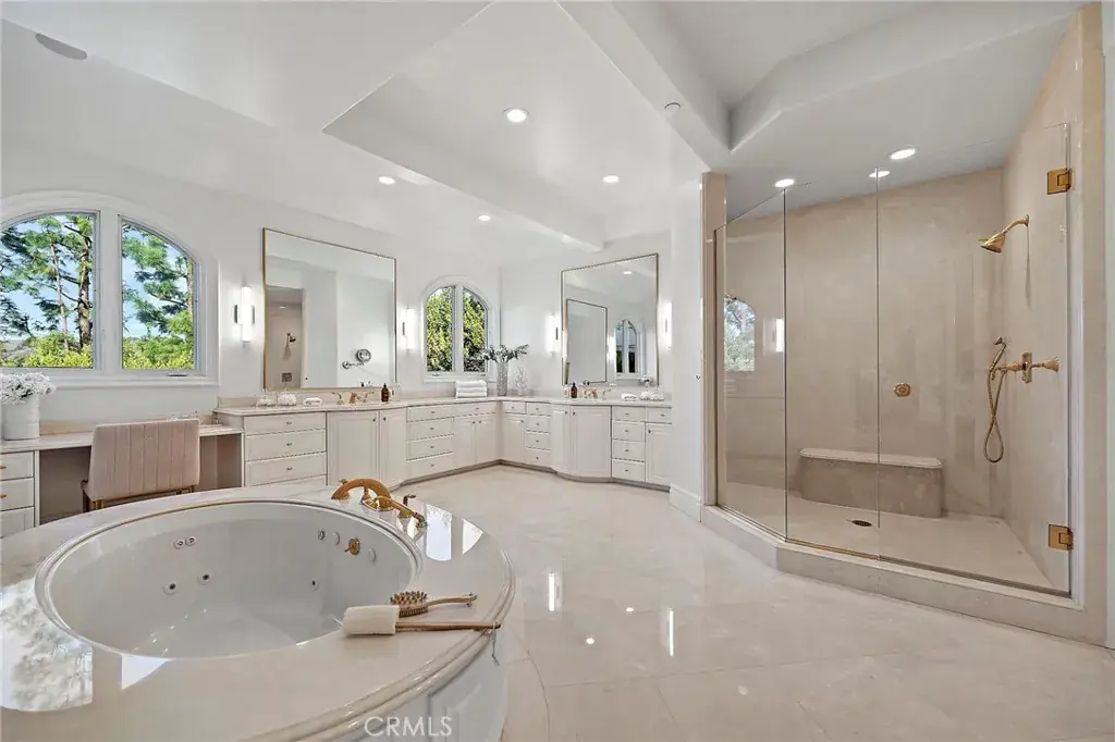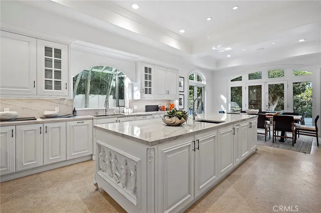 This superbly modernized approximately 7,070 square foot guard-gated Bel Air Crest residence showcases refined materials, exquisite finishes, and impeccable decor throughout. Breathtaking grand entry with a chandelier suspended from the cathedral coffered ceiling welcomes guests to five en-suite bedrooms and six-and-one-half baths offering the epitome of luxury and elegance. Enjoy the lavish chef-caliber kitchen with designer-selected appointments, high-end appliances, custom cabinetry, oversized center island, spacious pantry, and ample space to entertain. The formal living room and dining room are ideal for hosting both large crowds and intimate gatherings. An impressive master wing offers a fireplace, dual custom Clive Christian closets, and relaxing spa-inspired bath complete with sauna/steam and beverage station. Three en-suite bedrooms are located on the second floor as well, and one en-suite bedroom and office are conveniently located on the main floor. Discover tranquil grounds that are beautifully landscaped and highlighted by an outdoor patio, pool, and spa. Don’t miss the exceptional quality and rare beauty that is being offered in the coveted guard-gated community of Bel Air Crest.